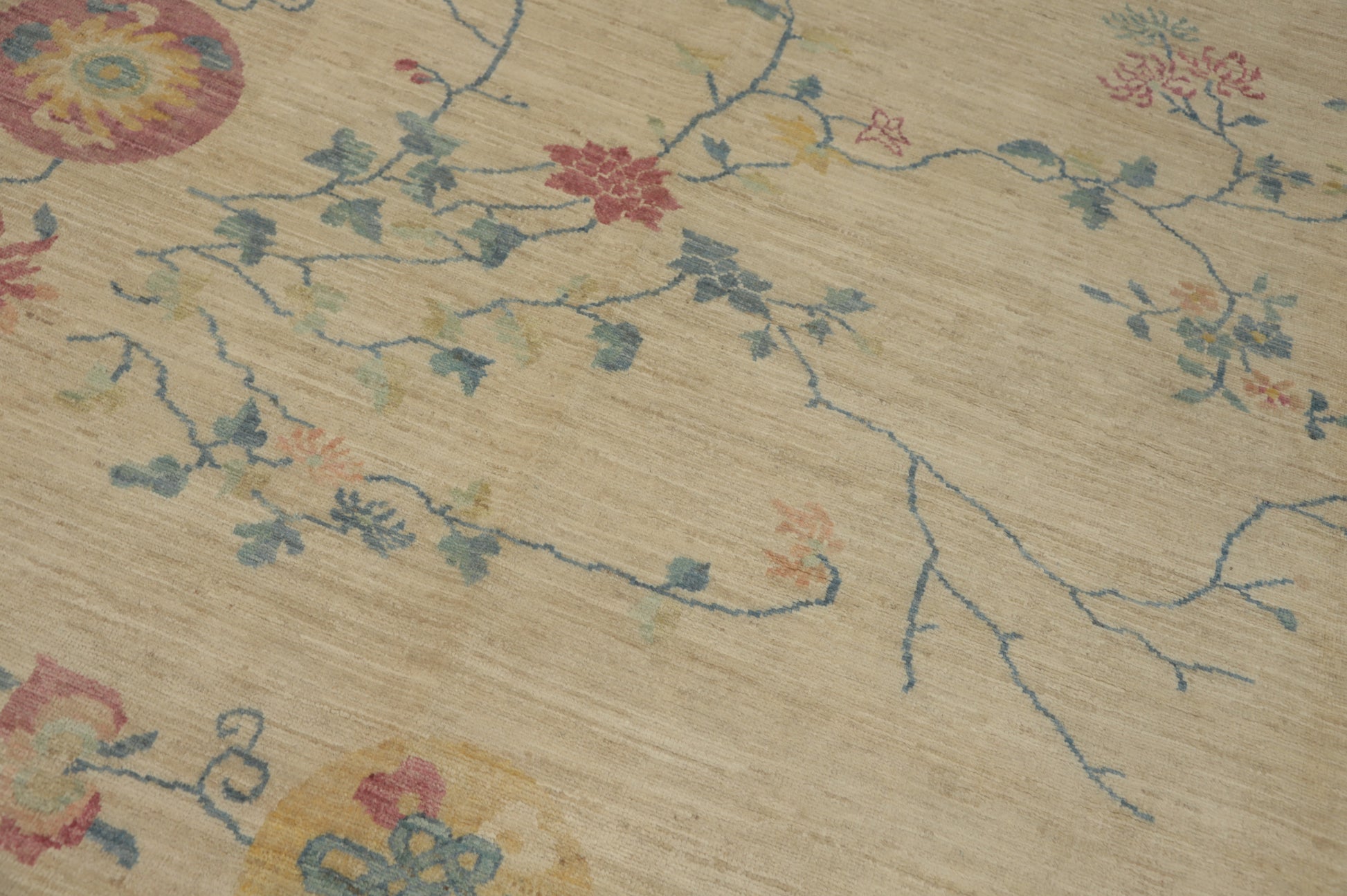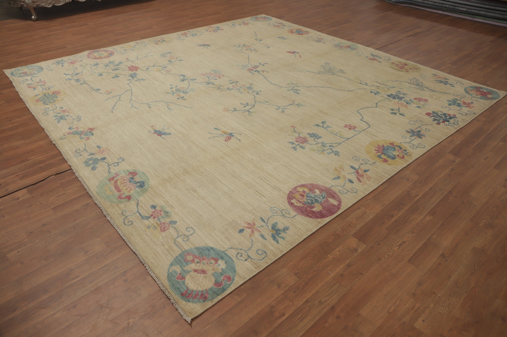 A Beautiful Genuine Pakistan Art Deco rug is Hand Knotted by skillful weavers in Pakistan with 100% Wool Material. This rug is in New, First Quality condition. dimensions are 9' 9'' X 9' 10'' in foot and 297 X 300 in centimeter. the primary color is Beige & Ivories.