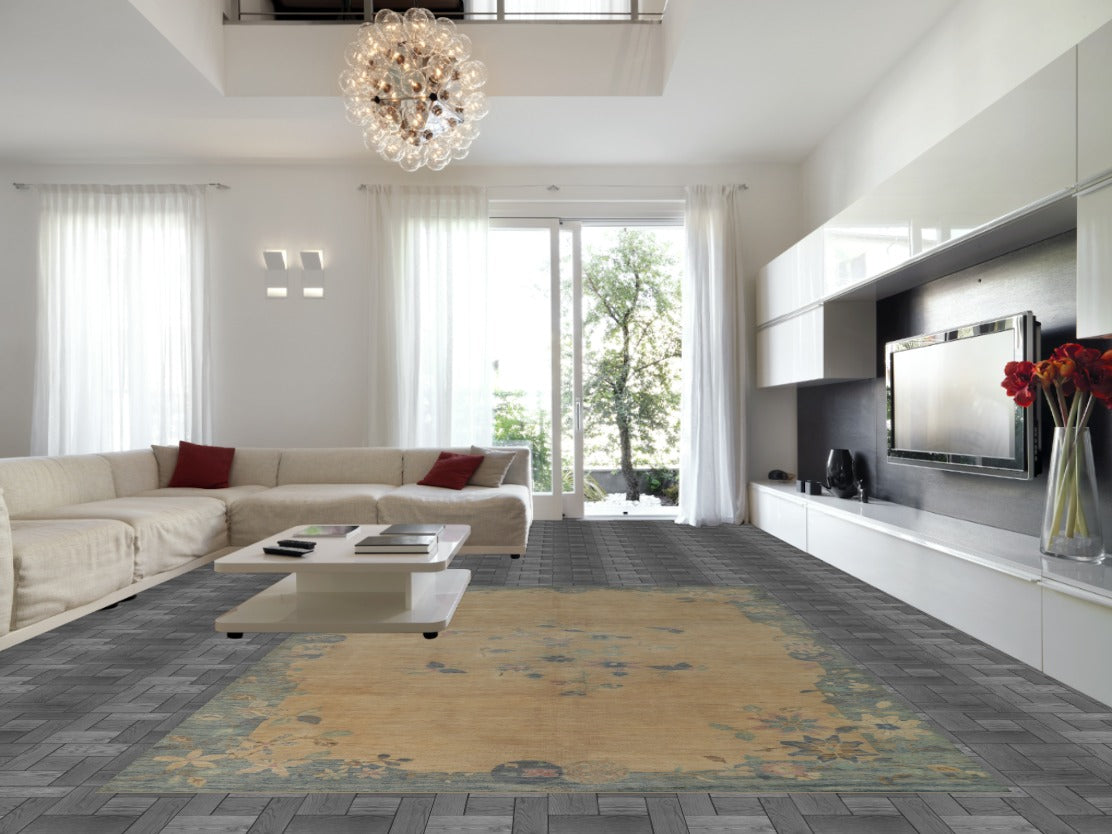 Vegetable Dye Art Deco Turkish Area Rug 10x13