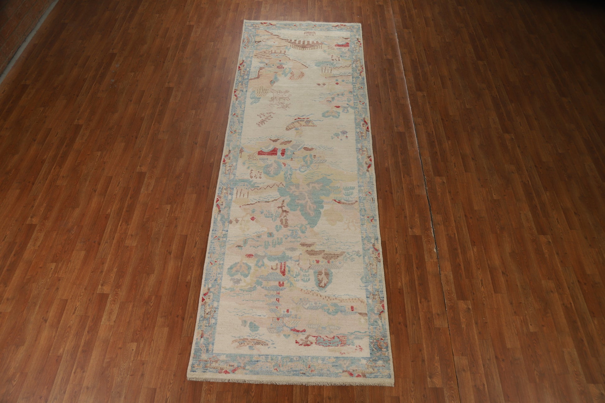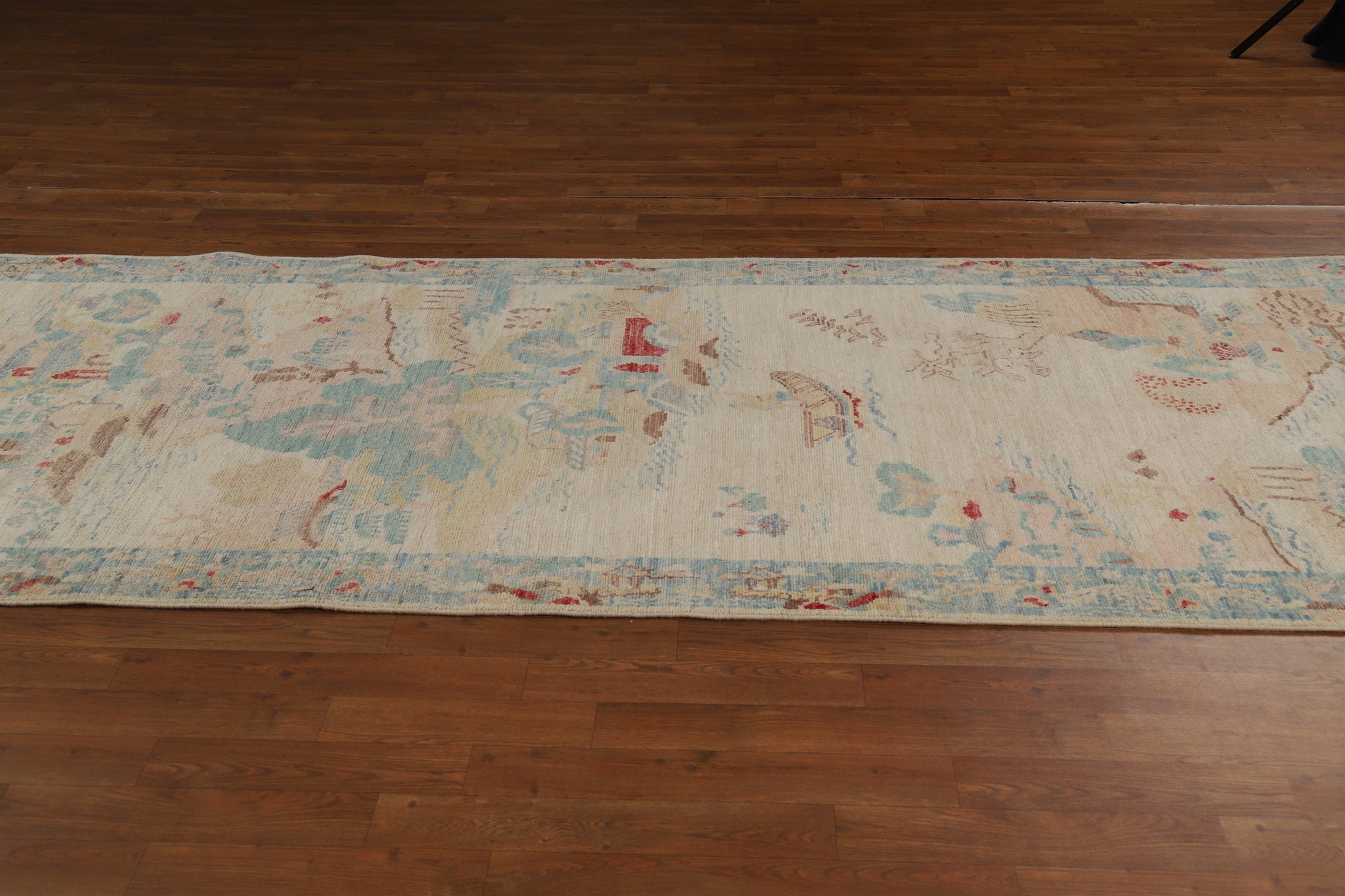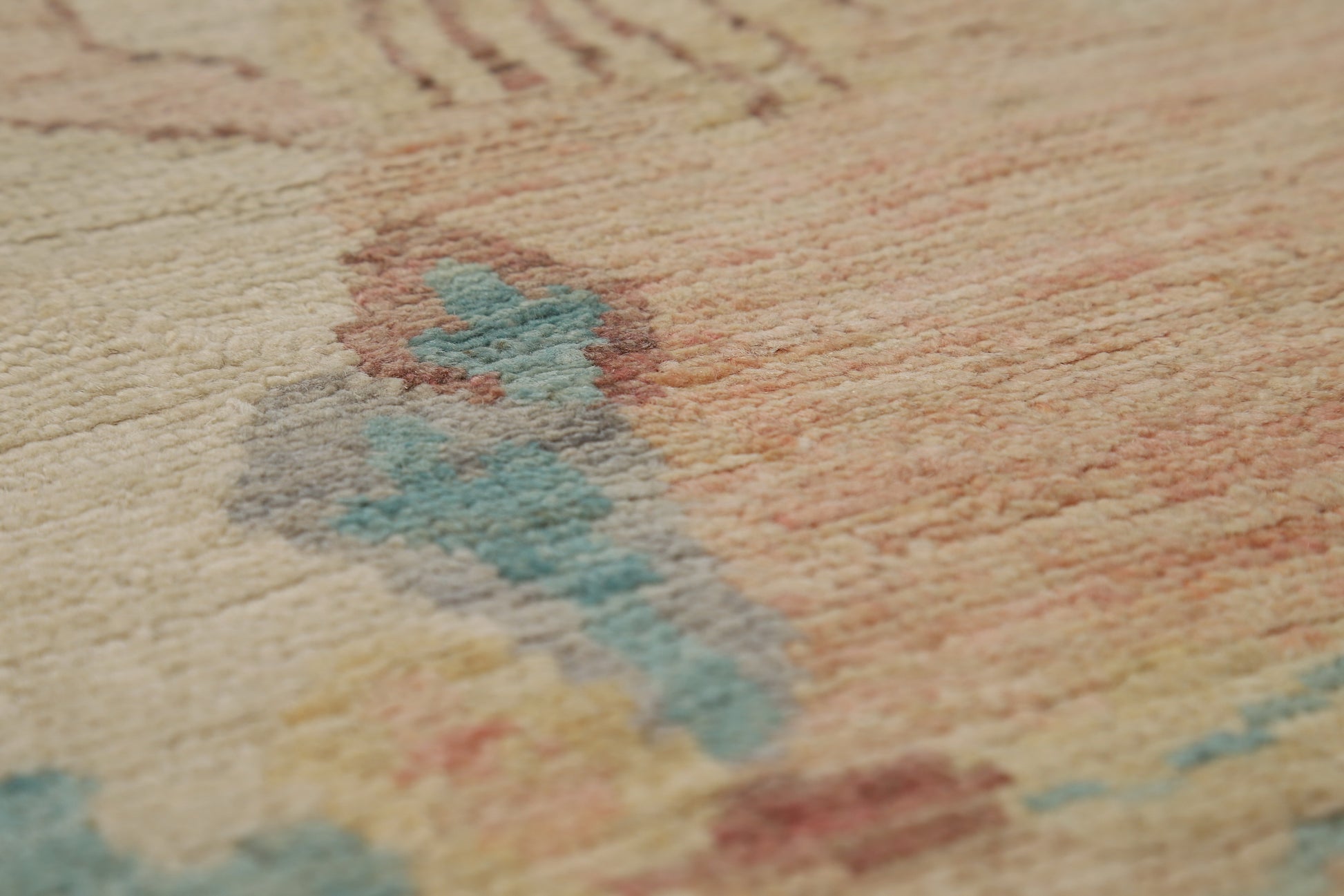 A Beautiful Genuine Turkey Art Deco rug is Hand Knotted by skillful weavers in Turkey with 100% Wool Material. This rug is in New, First Quality condition. dimensions are 12' 9'' X 3' 10'' in foot and 389 X 117 in centimeter. the primary color is Beige & Ivories.