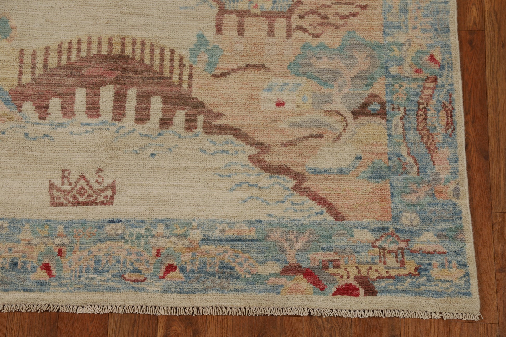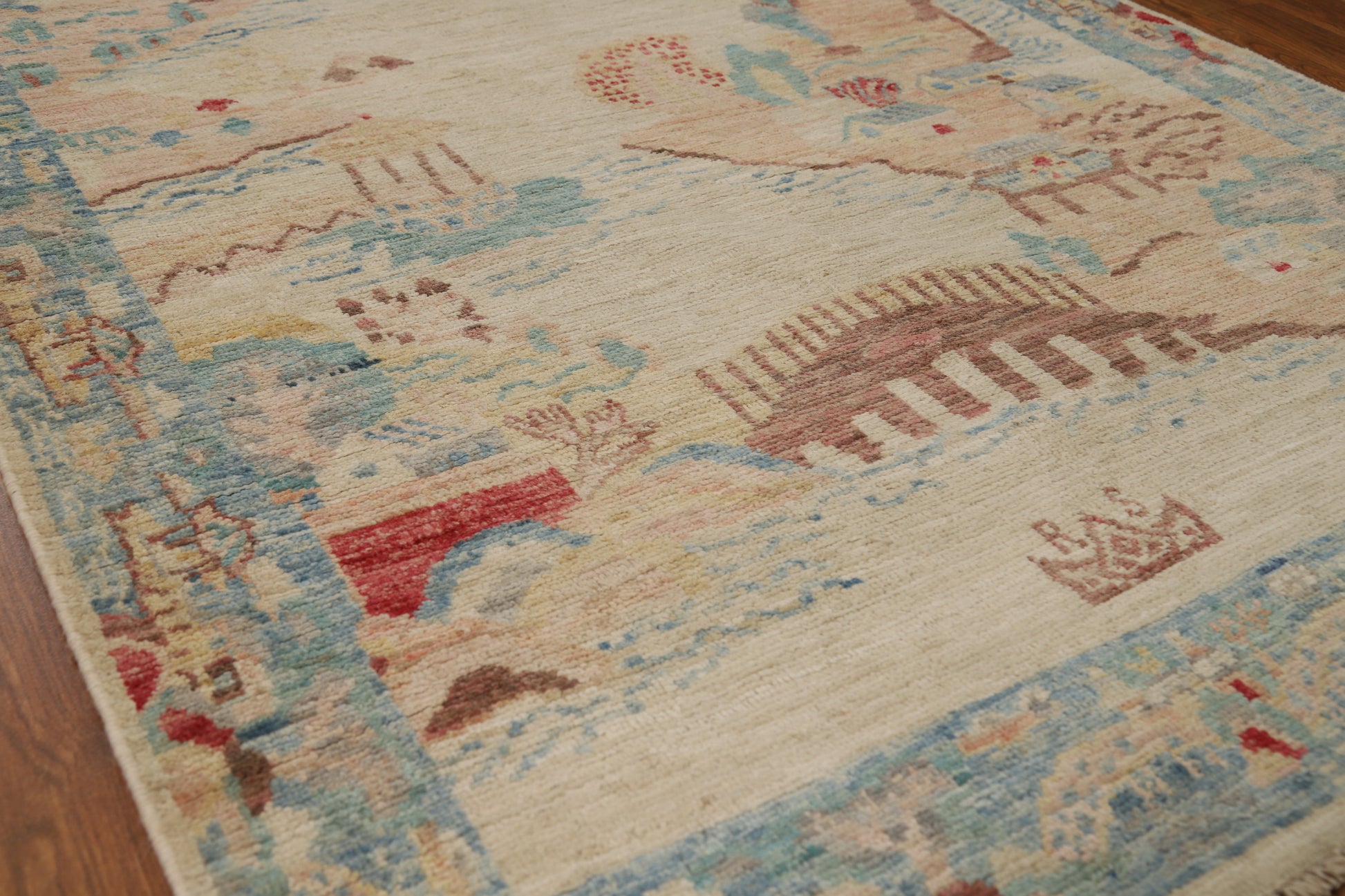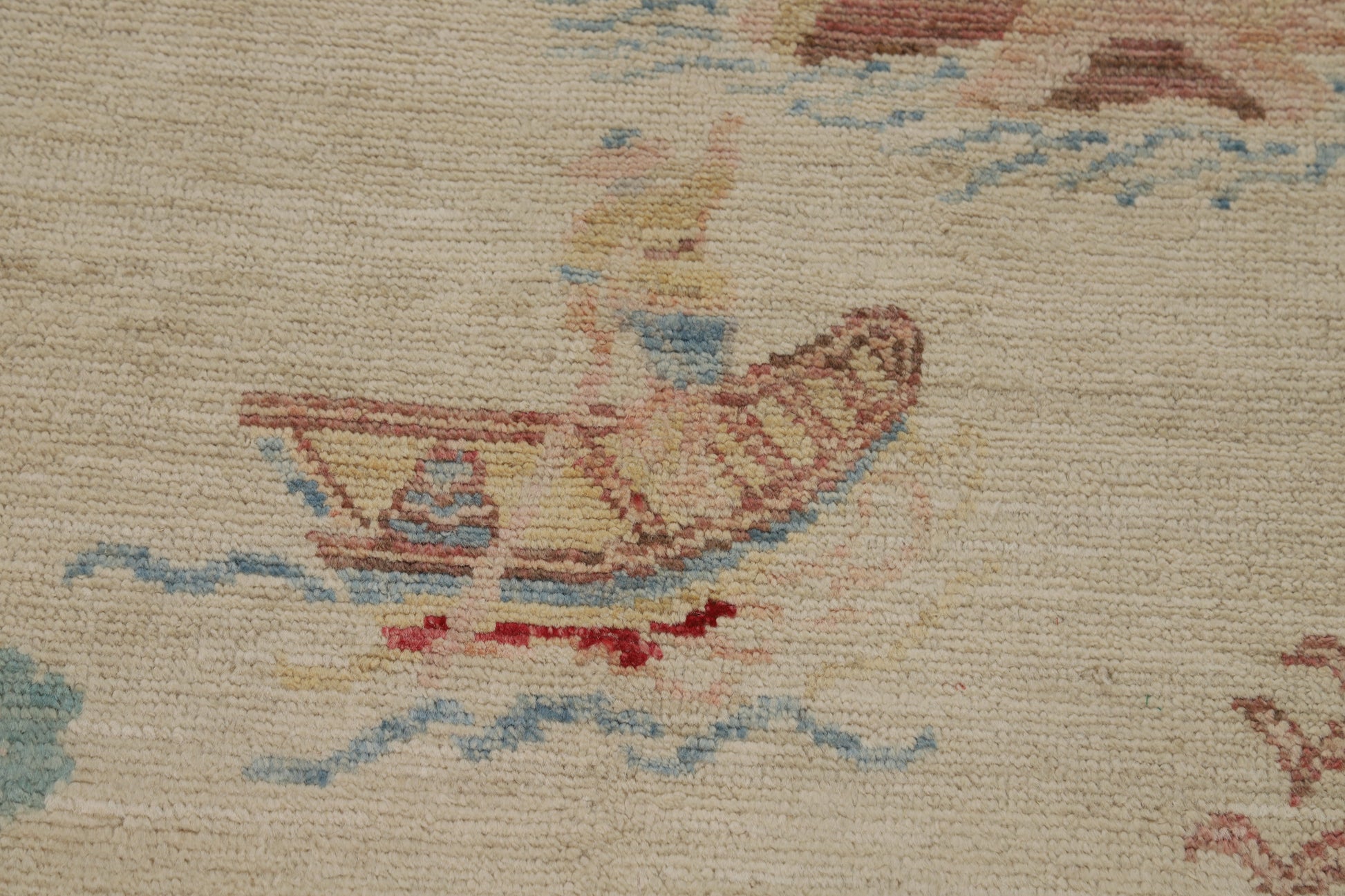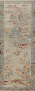 A Beautiful Genuine Turkey Art Deco rug is Hand Knotted by skillful weavers in Turkey with 100% Wool Material. This rug is in New, First Quality condition. dimensions are 12' 9'' X 3' 10'' in foot and 389 X 117 in centimeter. the primary color is Beige & Ivories.
