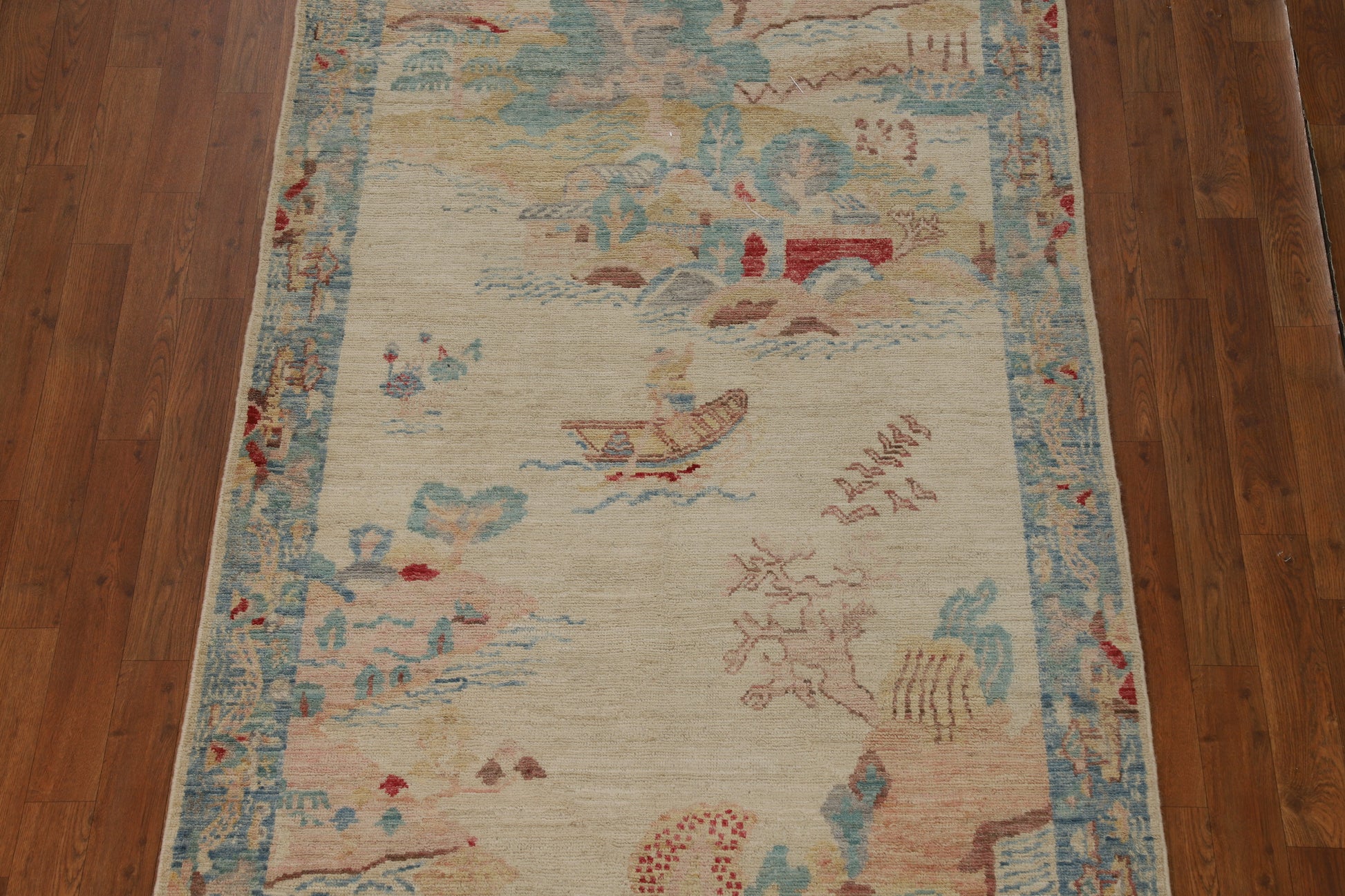 Vegetable Dye Art Deco Turkish Runner Rug 4x13