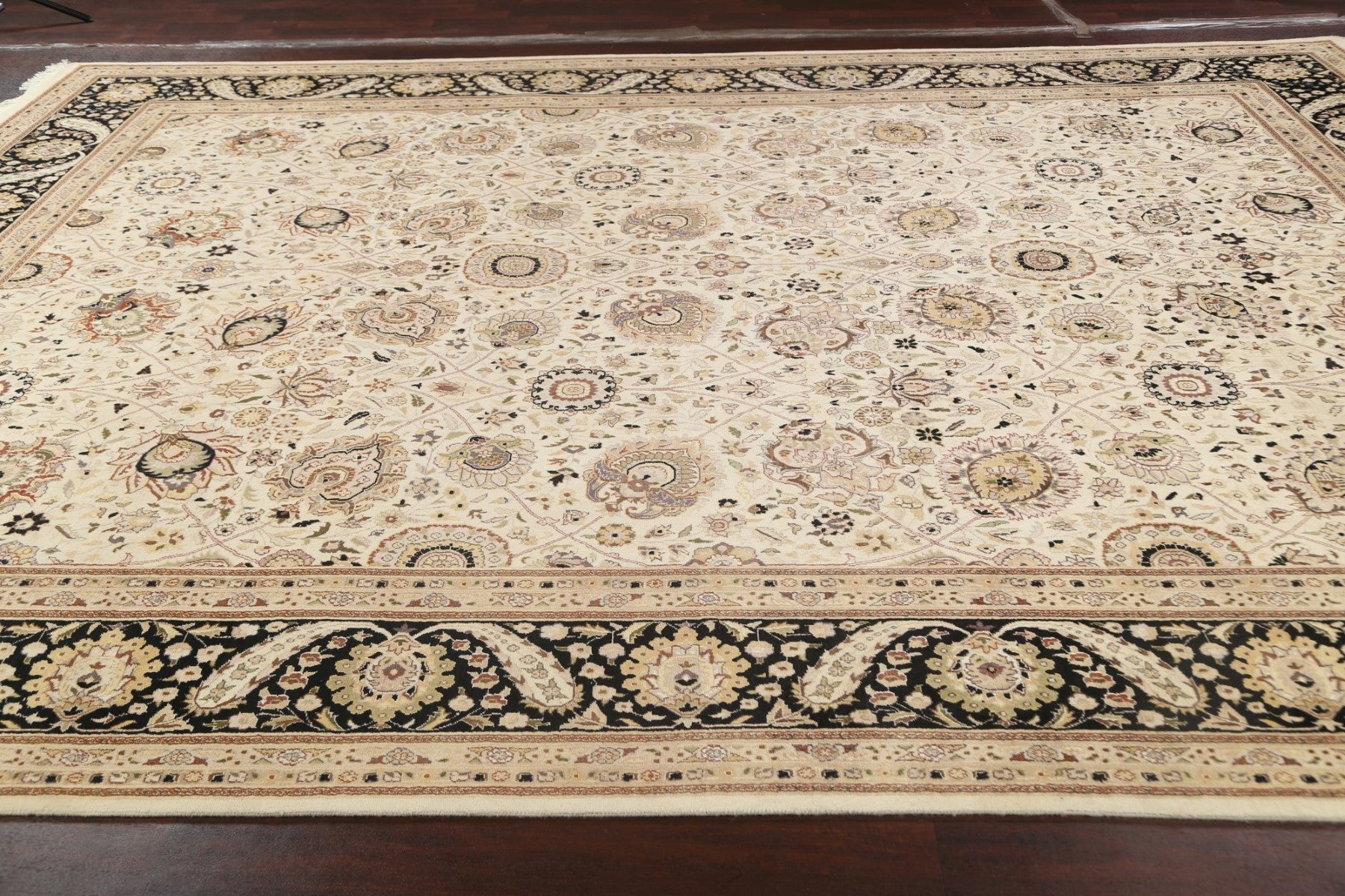 A Beautiful Genuine Pakistan Aubusson rug is Hand Knotted by skillful weavers in Pakistan with 100% Wool Material. This rug is in New, First Quality condition. dimensions are 13' 11'' X 9' 10'' in foot and 424 X 300 in centimeter. the primary color is Beige & Ivories.