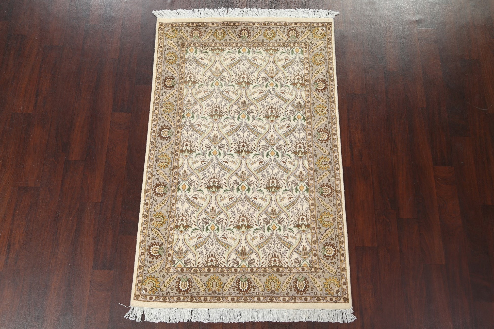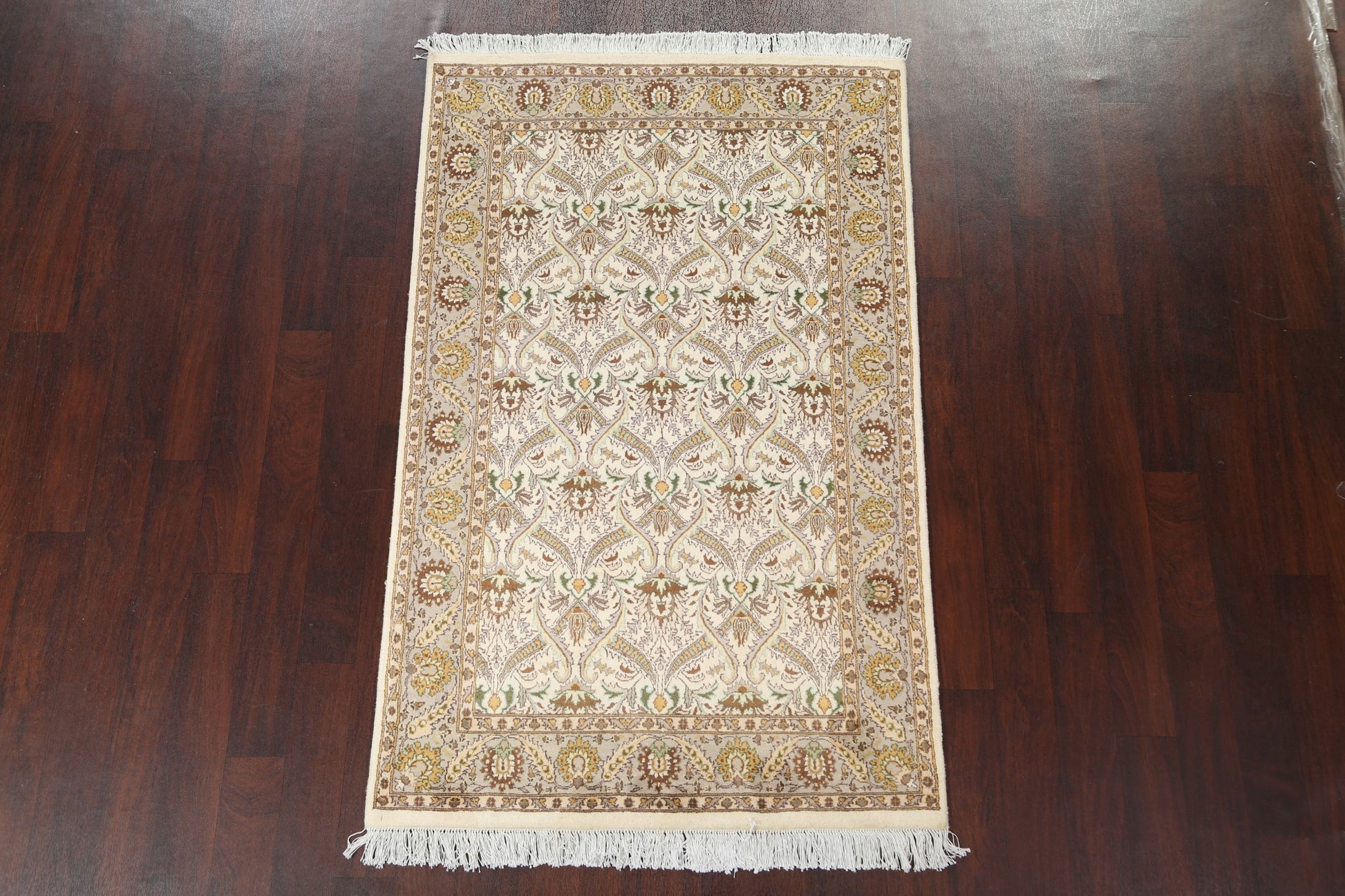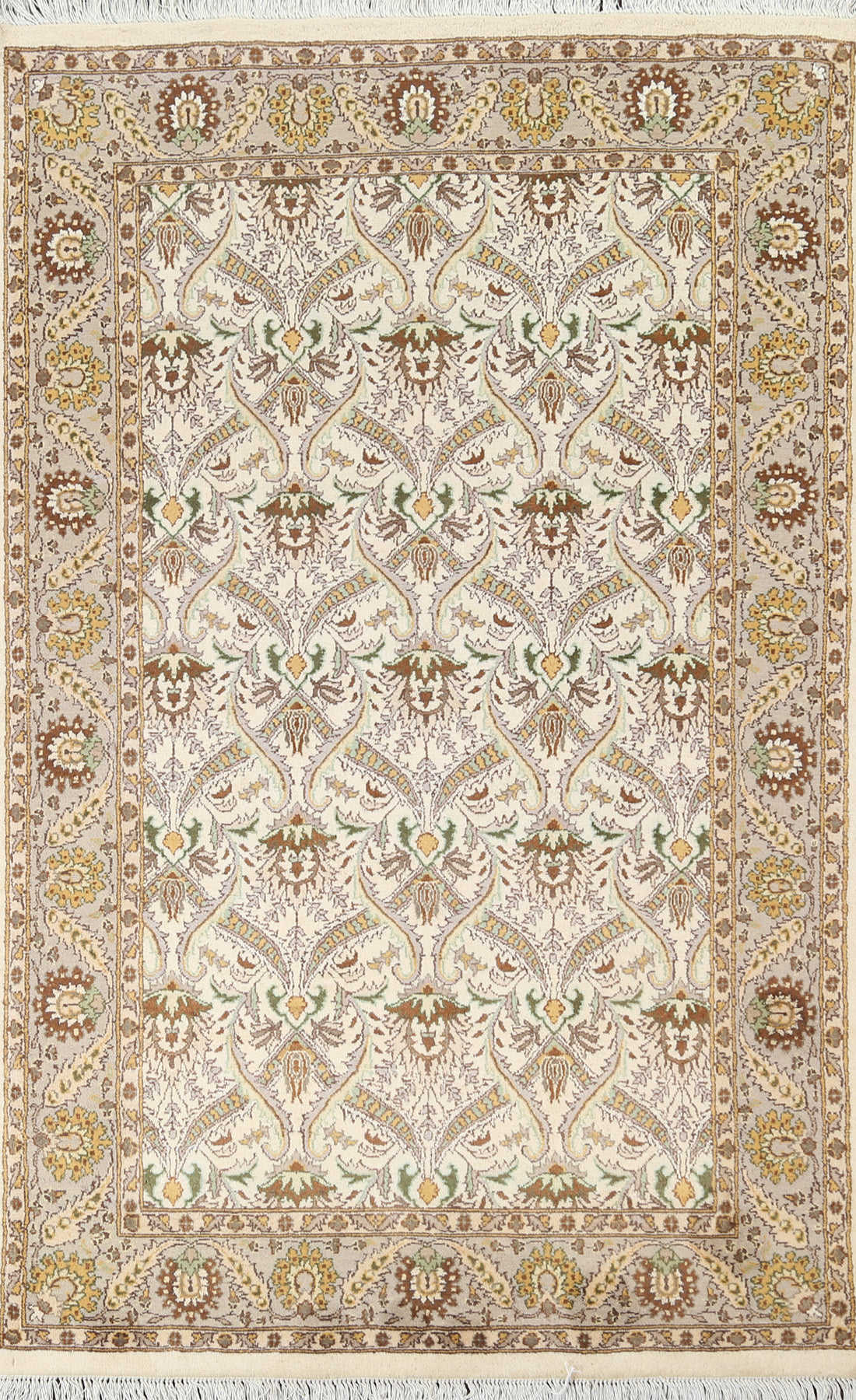 A Beautiful Genuine Pakistan Aubusson rug is Hand Knotted by skillful weavers in Pakistan with Wool & Silk Material. This rug is in New, First Quality condition. dimensions are 6' 4'' X 4' 0'' in foot and 193 X 122 in centimeter. the primary color is Beige & Ivories.