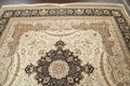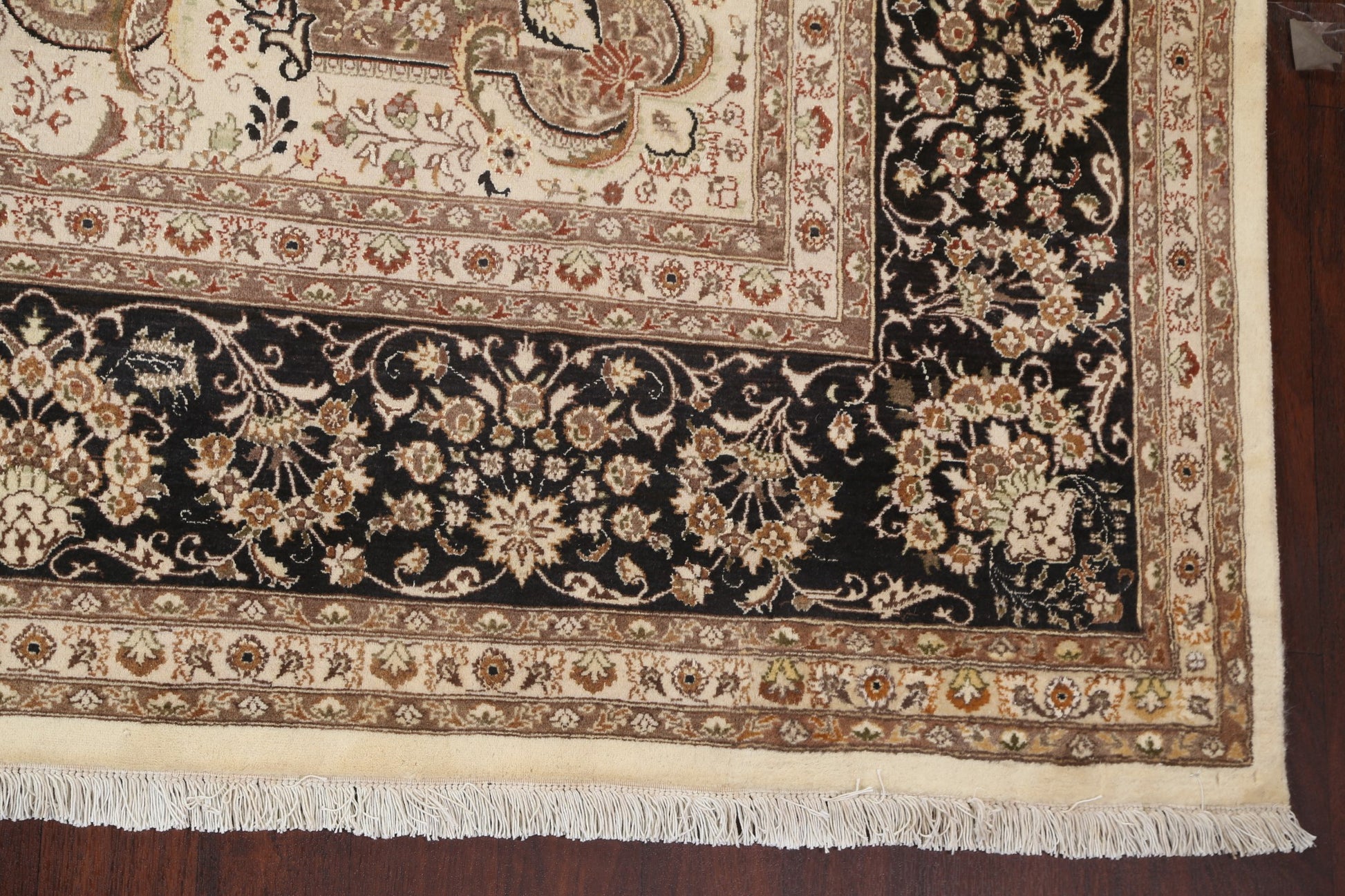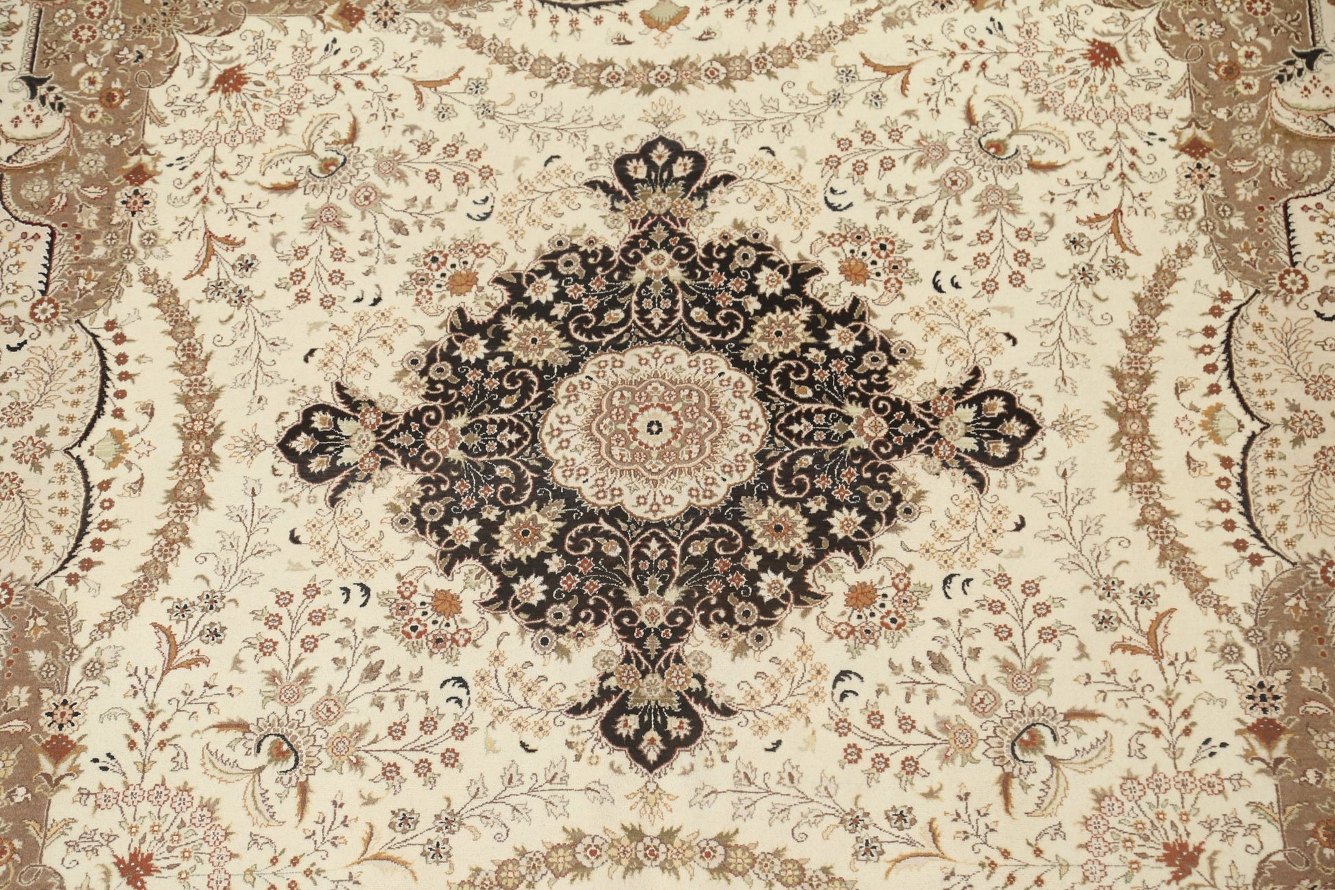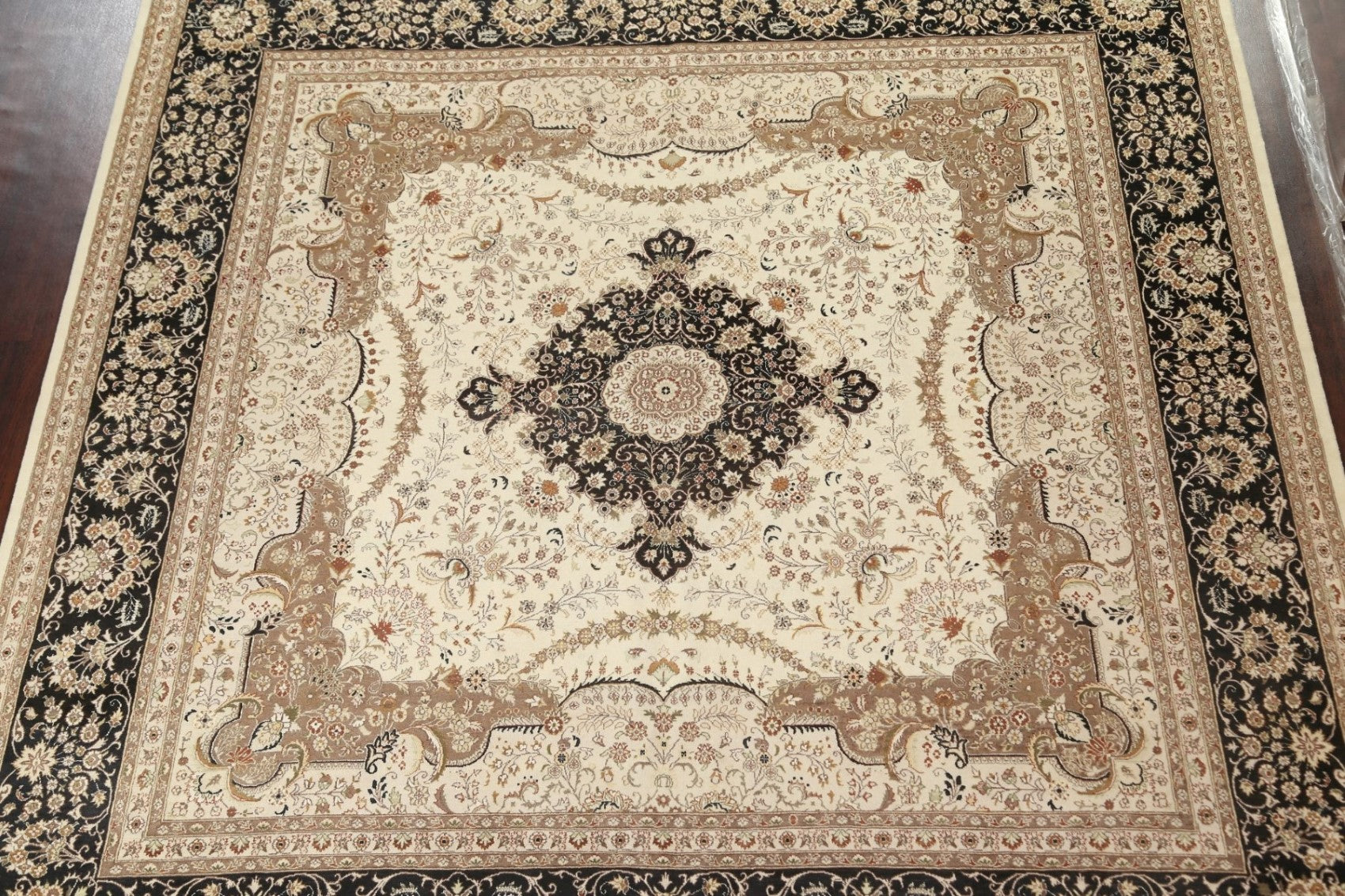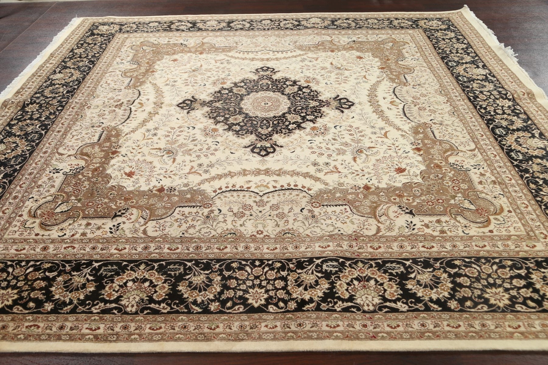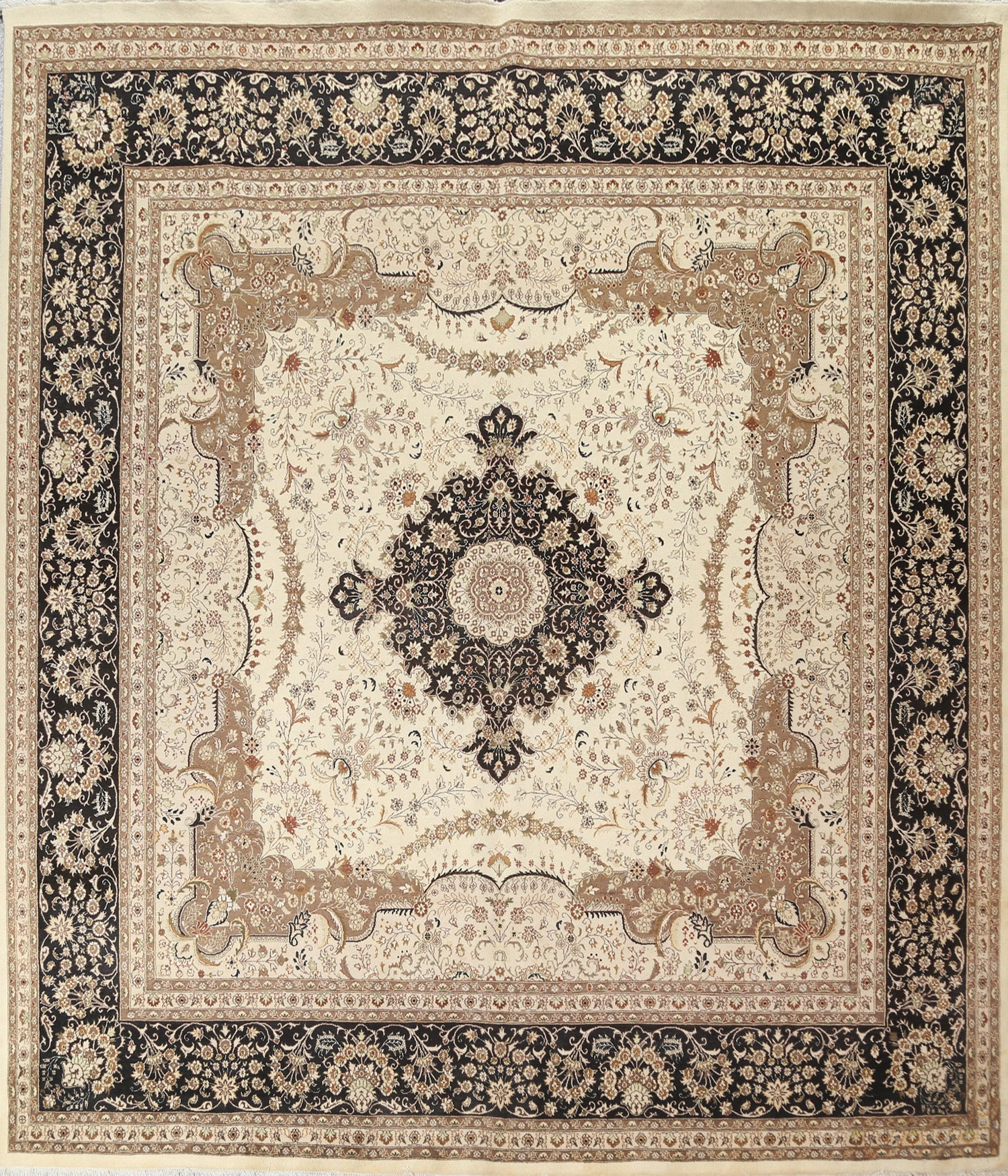 A Beautiful Genuine Pakistan Aubusson rug is Hand Knotted by skillful weavers in Pakistan with 100% Wool Material. This rug is in New, First Quality condition. dimensions are 10' 3'' X 9' 11'' in foot and 312 X 302 in centimeter. the primary color is Beige & Ivories.