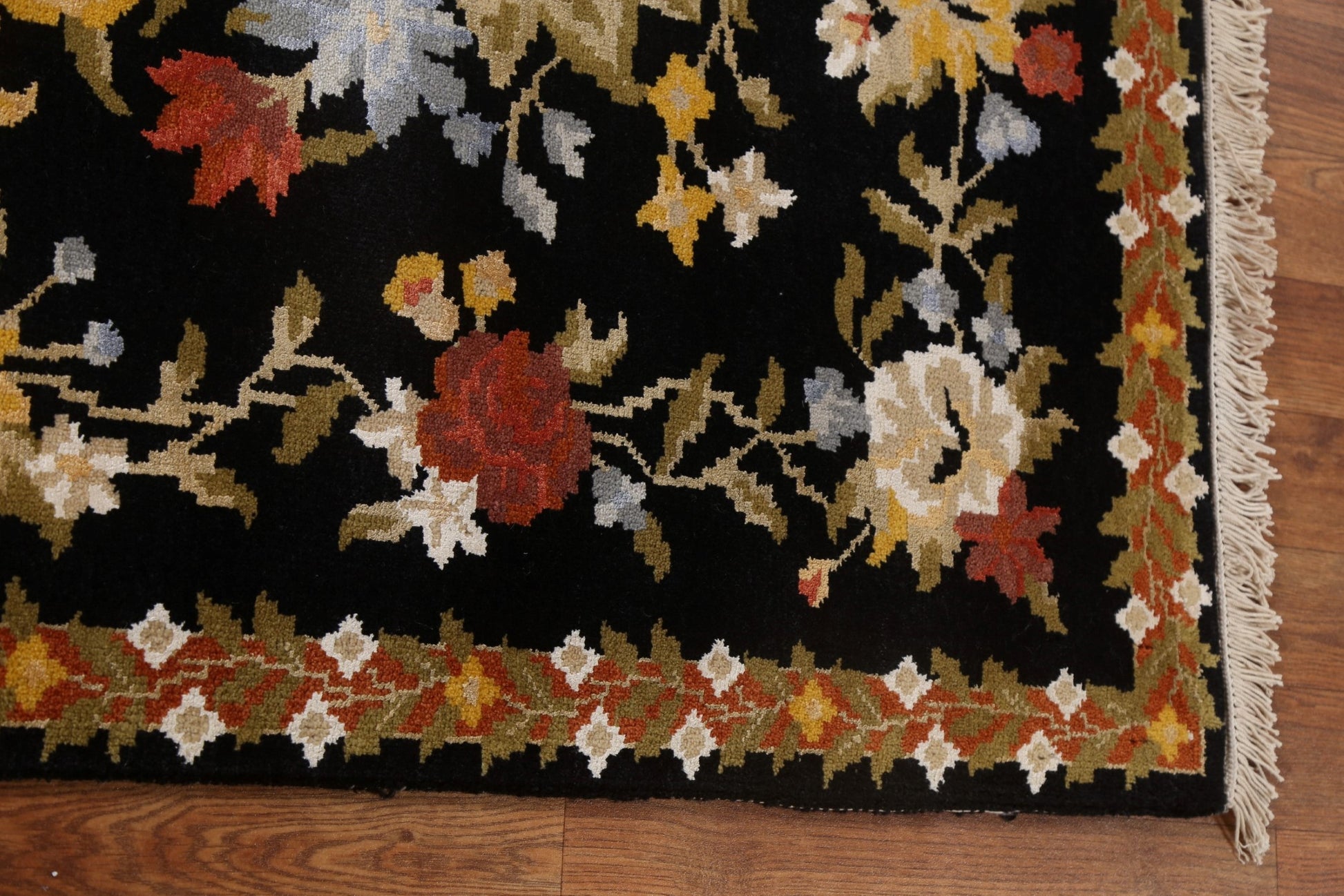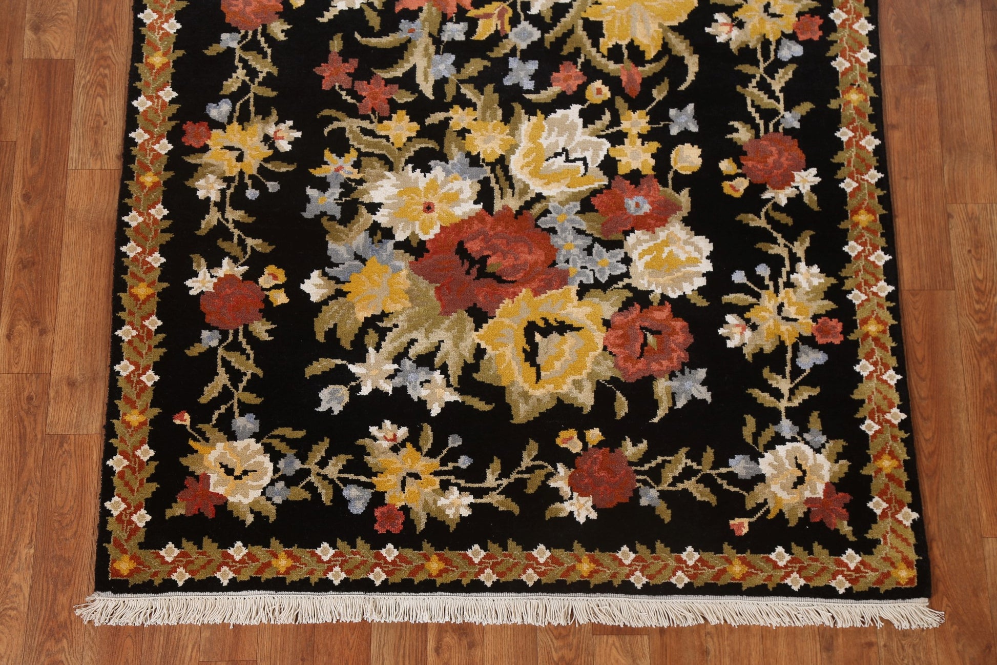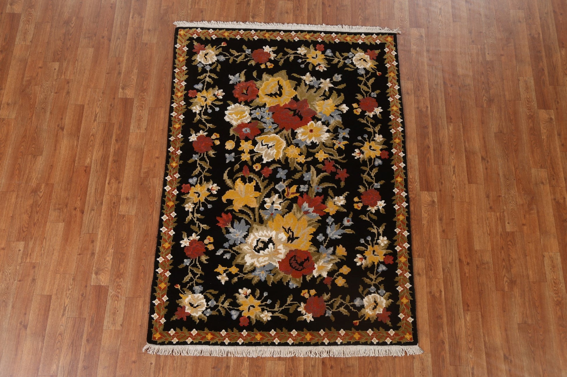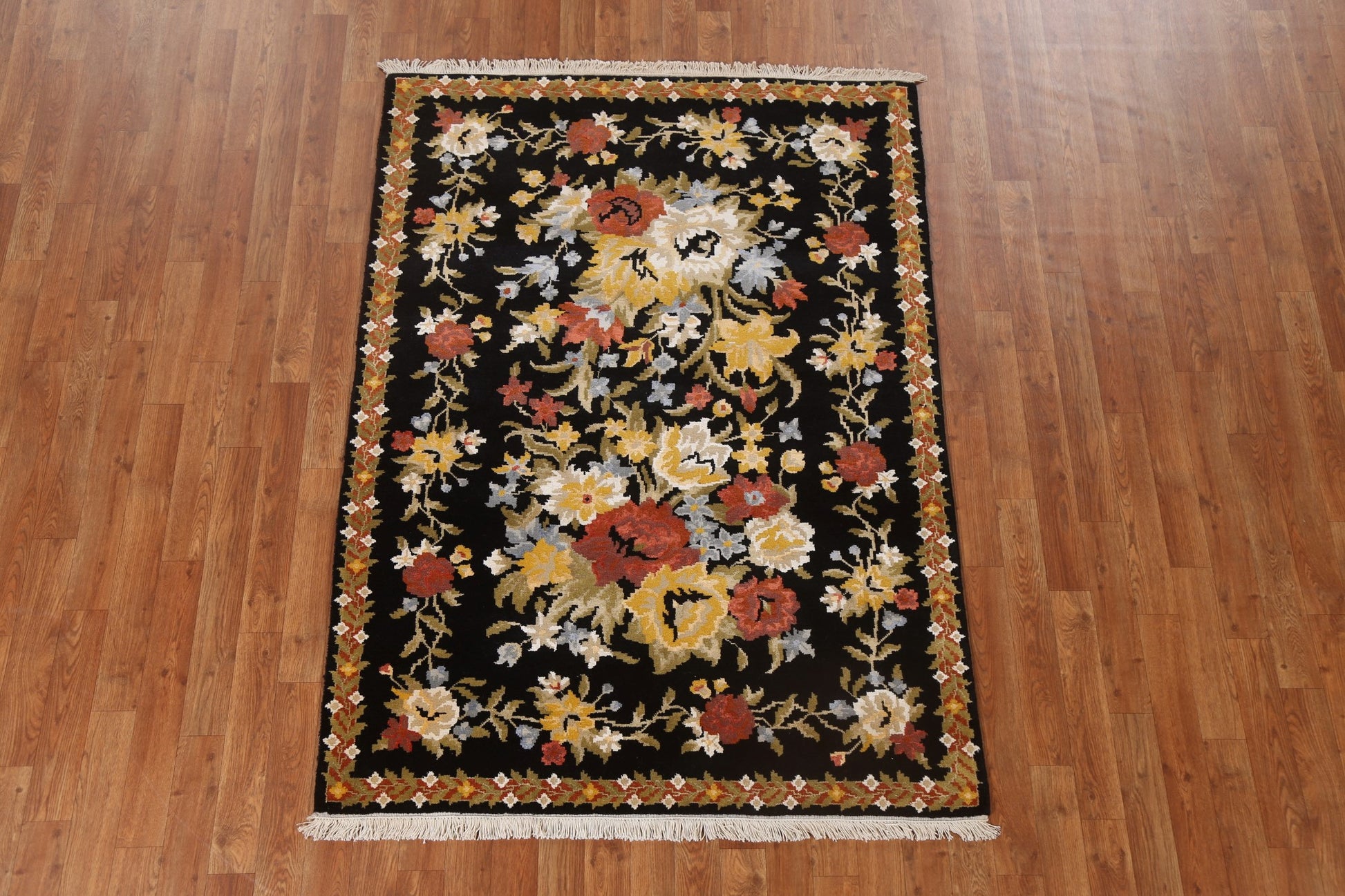 A Beautiful Genuine India Aubusson rug is Hand Knotted by skillful weavers in India with 100% Wool Material. This rug is in New, First Quality condition. dimensions are 5' 8'' X 4' 1'' in foot and 173 X 124 in centimeter. the primary color is Black.