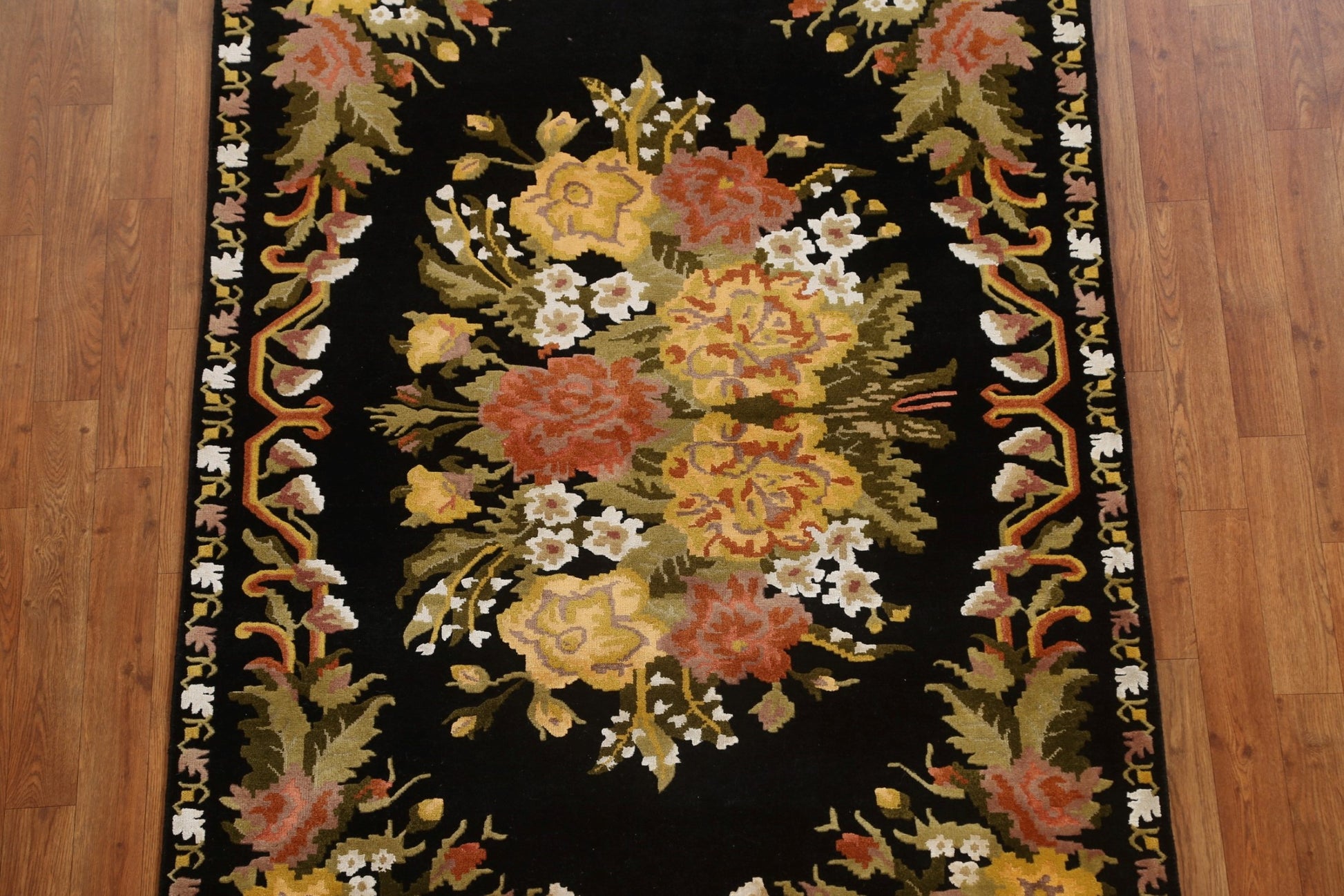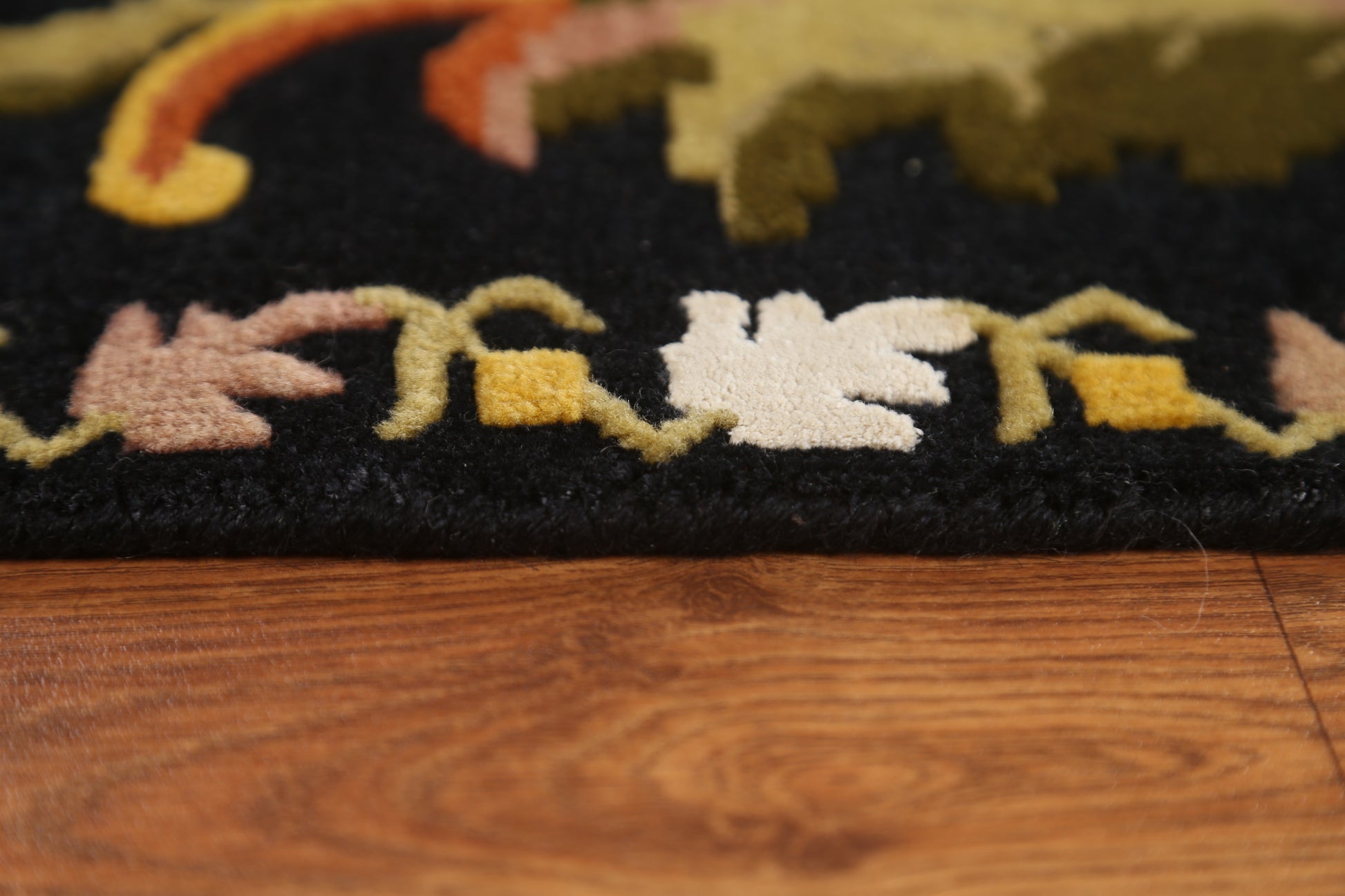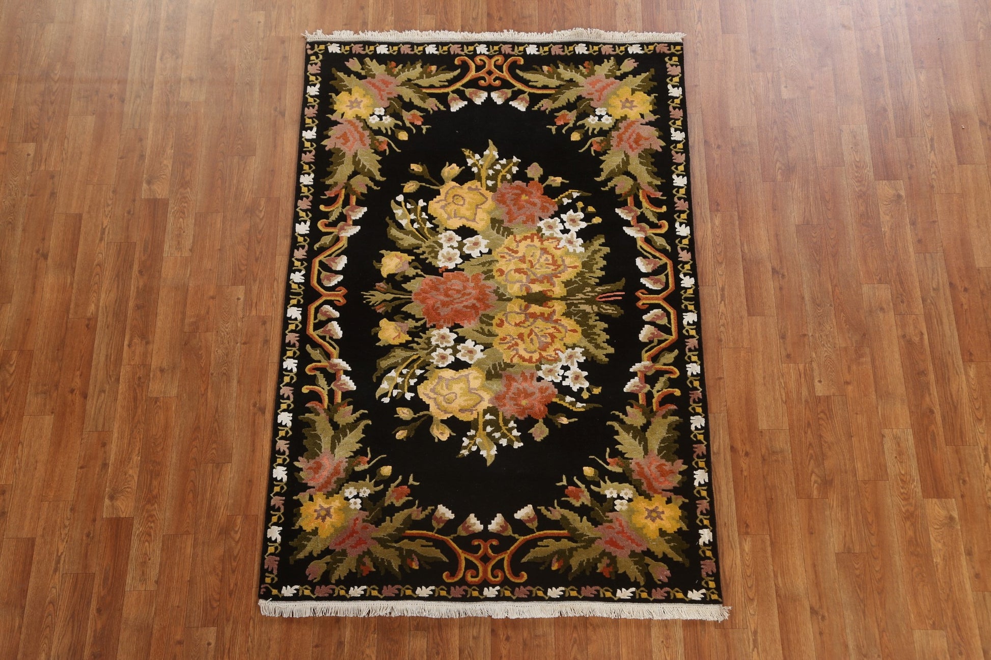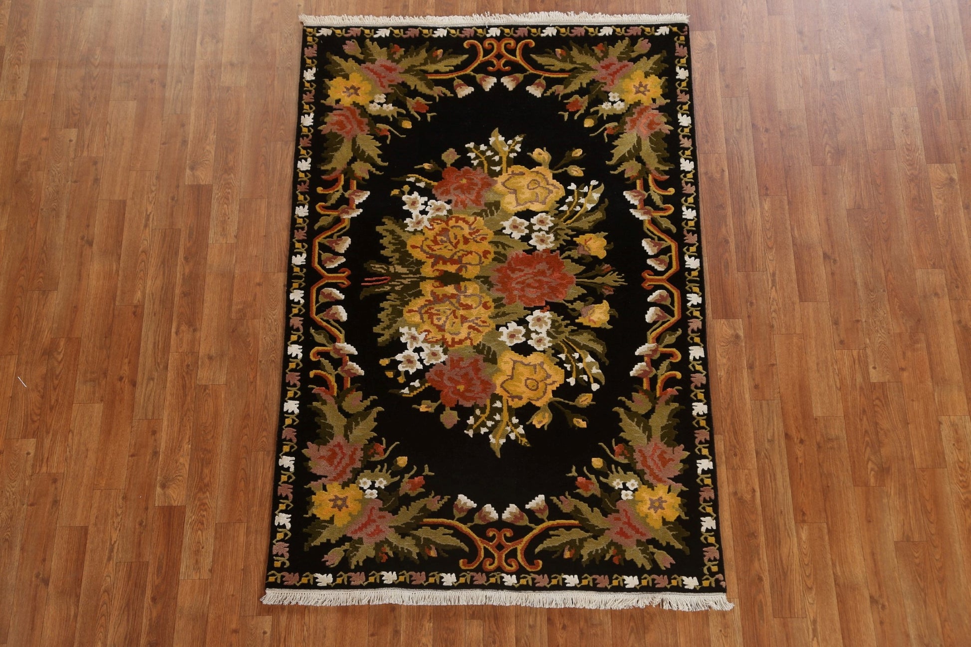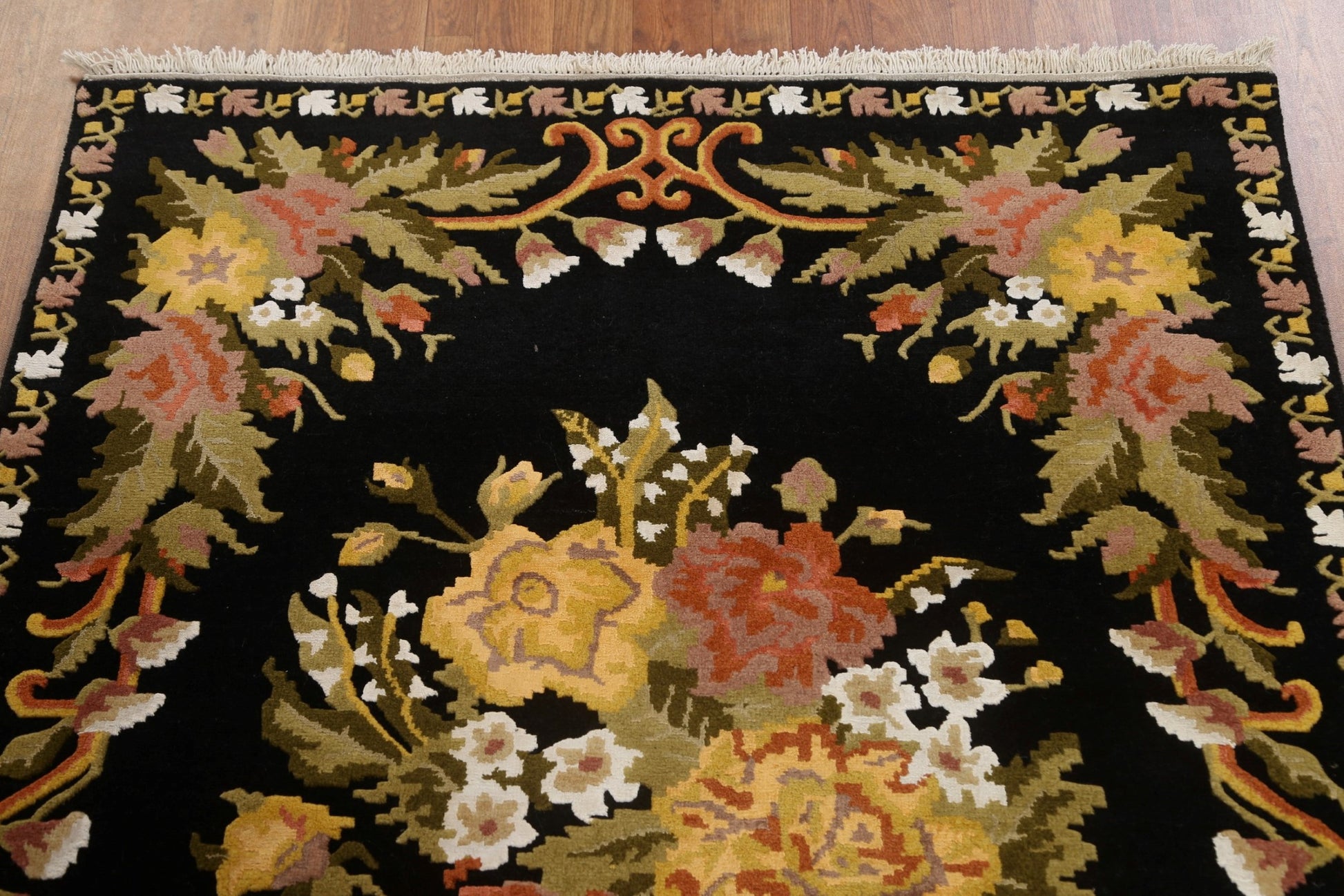 A Beautiful Genuine India Aubusson rug is Hand Knotted by skillful weavers in India with 100% Wool Material. This rug is in New, First Quality condition. dimensions are 5' 11'' X 4' 0'' in foot and 180 X 122 in centimeter. the primary color is Black.