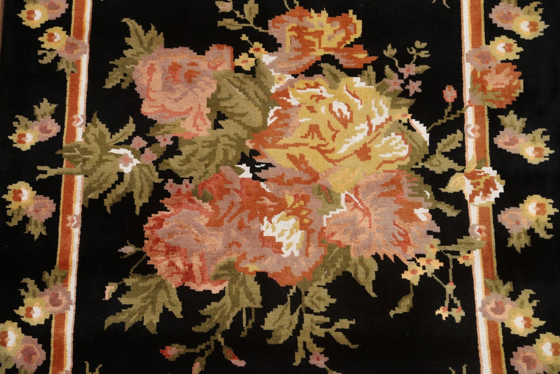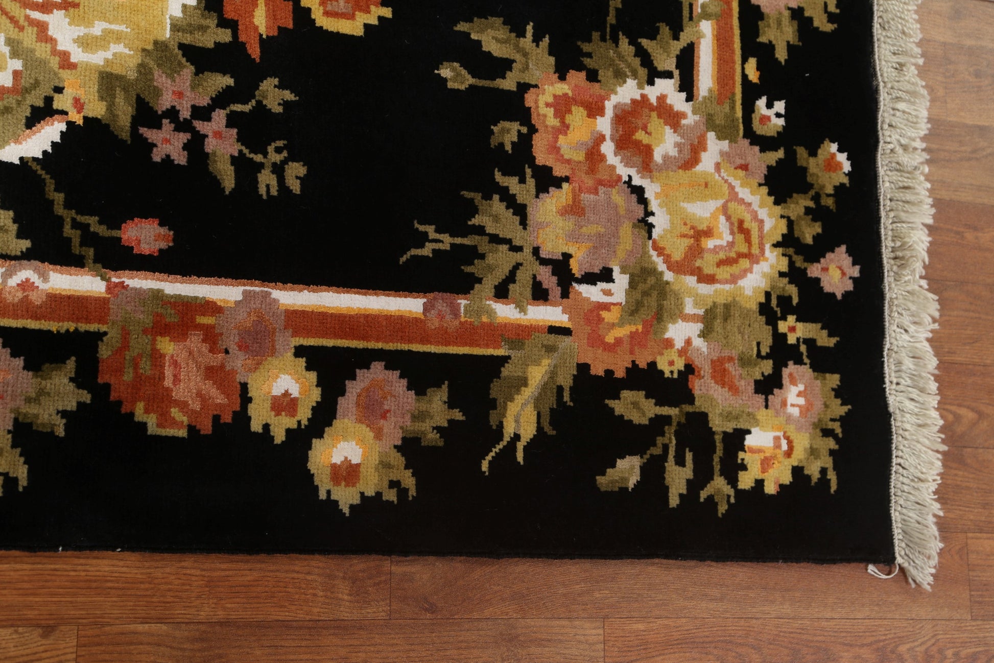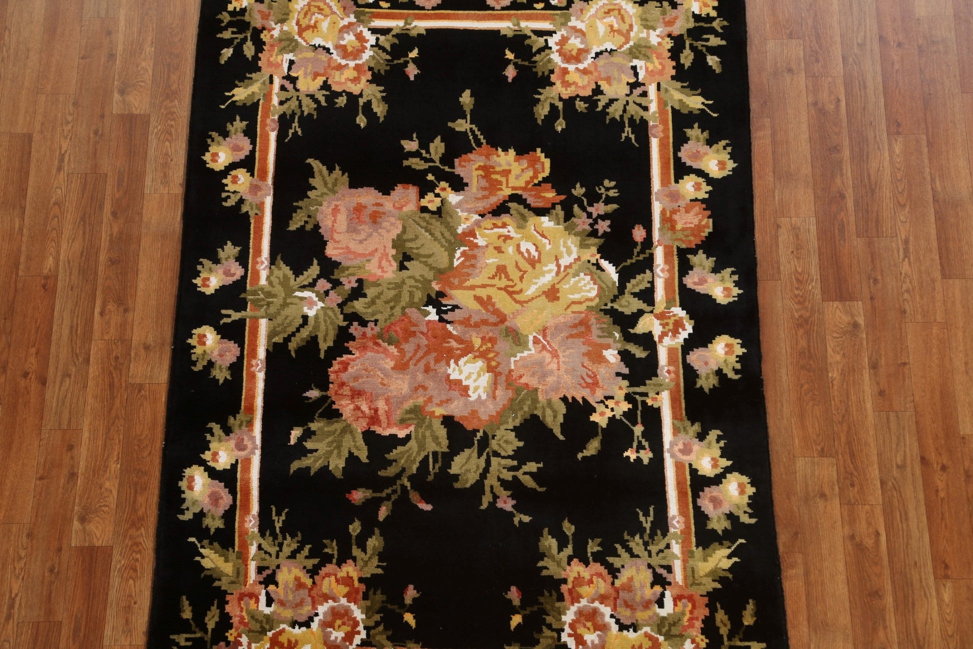 A Beautiful Genuine India Aubusson rug is Hand Knotted by skillful weavers in India with 100% Wool Material. This rug is in New, First Quality condition. dimensions are 6' 1'' X 4' 1'' in foot and 185 X 124 in centimeter. the primary color is Black.
