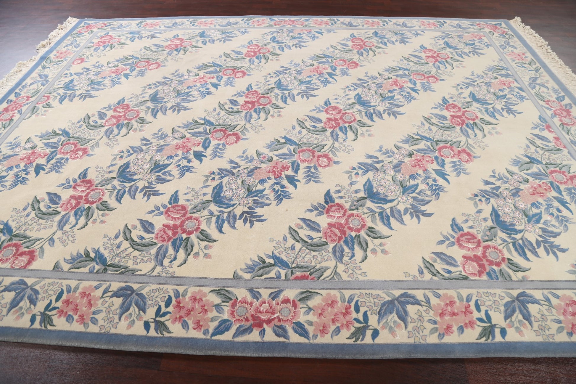 A Beautiful Genuine China Aubusson rug is Hand Knotted by skillful weavers in China with 100% Wool Material. This rug is in New, First Quality condition. dimensions are 12' 2'' X 9' 2'' in foot and 371 X 279 in centimeter. the primary color is Beige & Ivories.