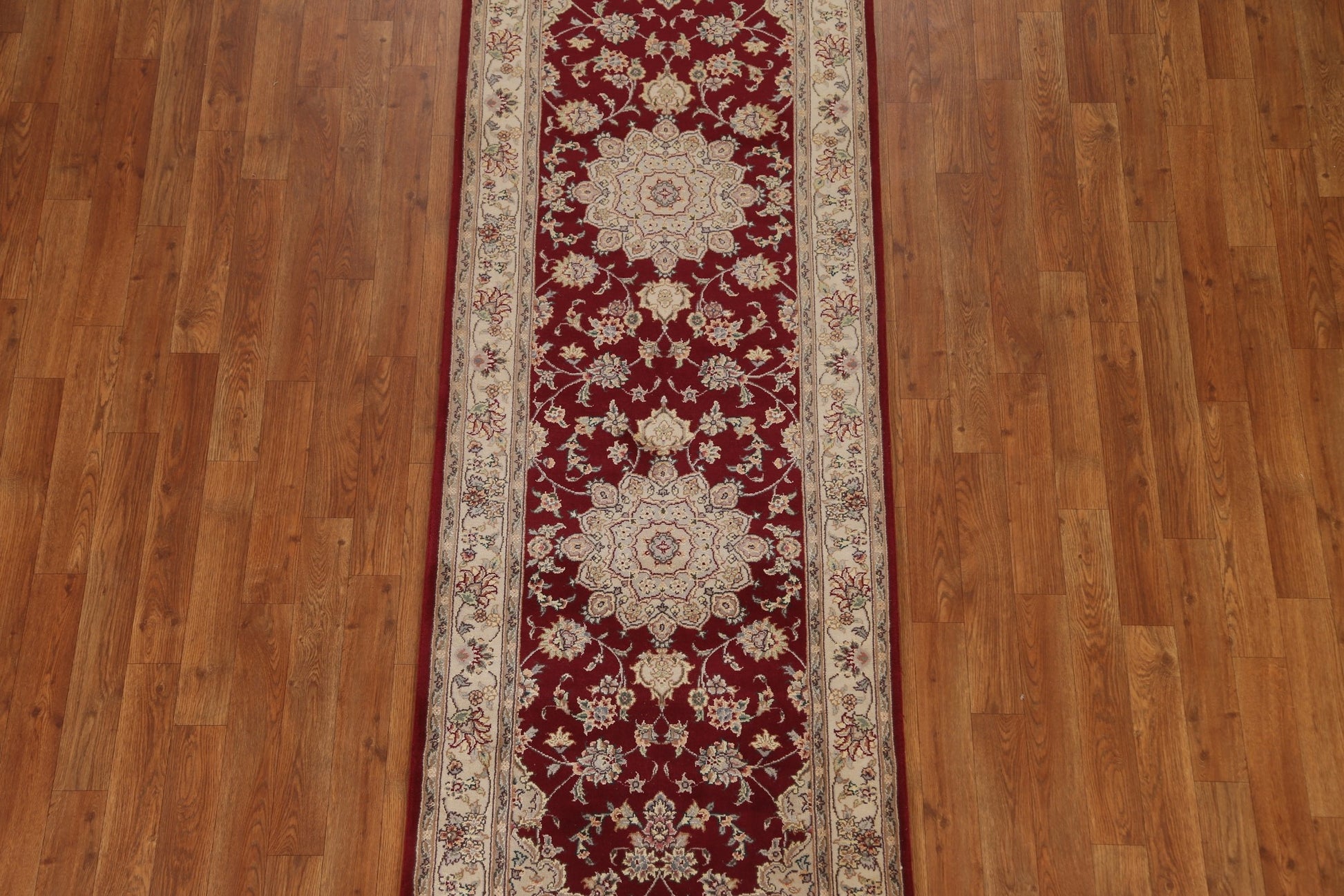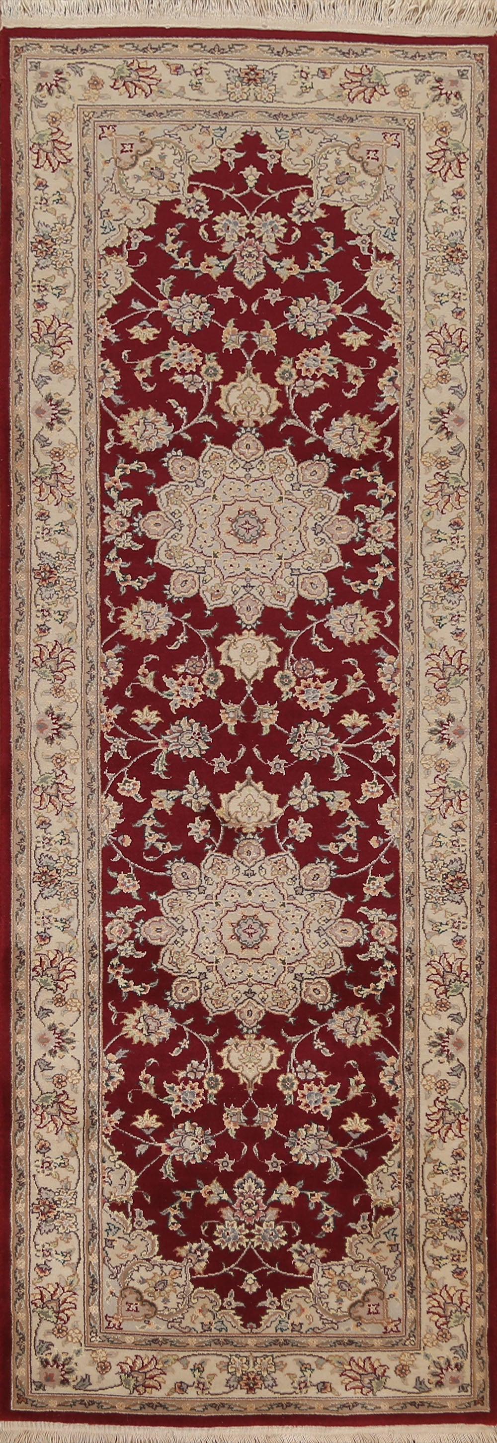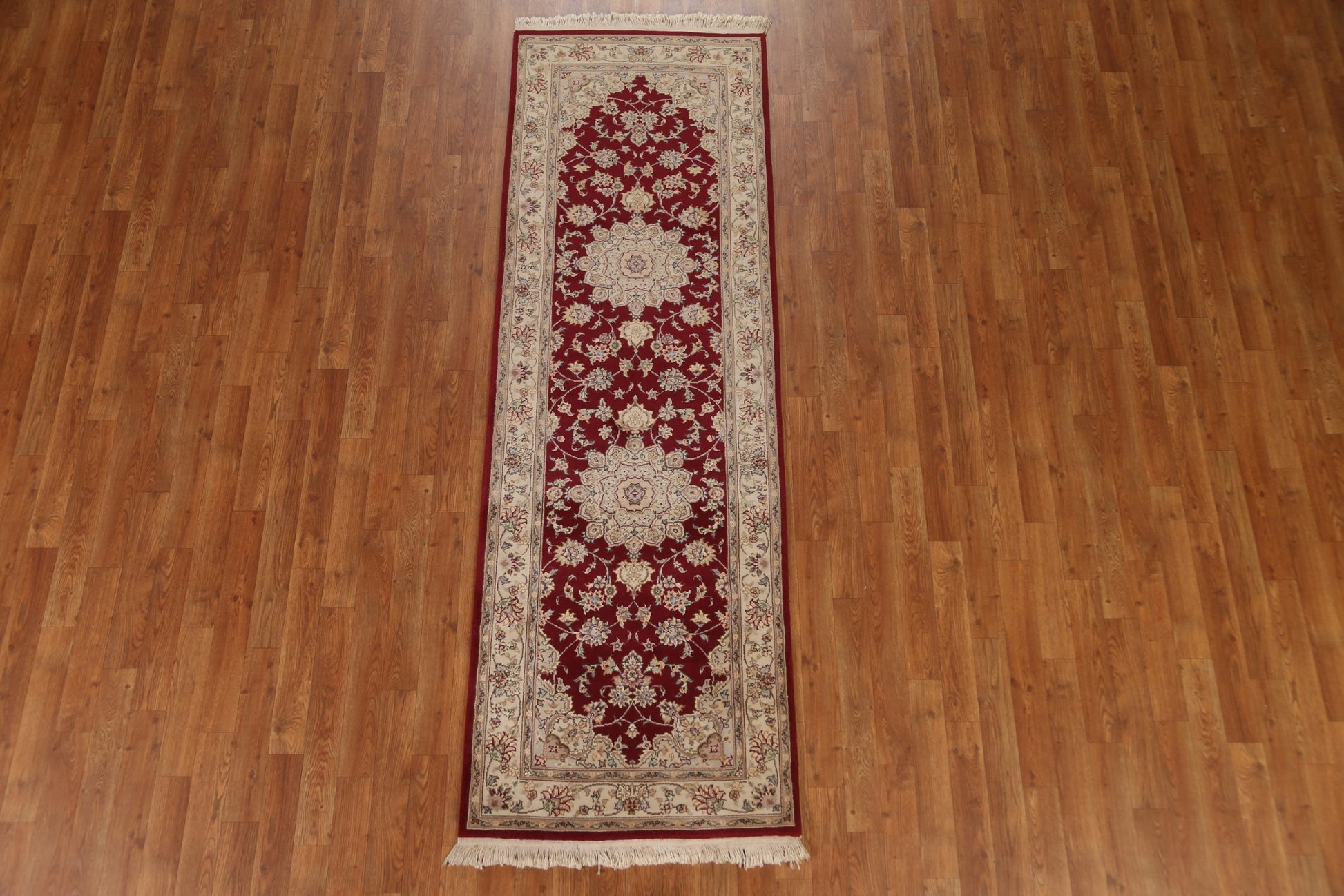 A Beautiful Genuine China Aubusson rug is Hand Knotted by skillful weavers in China with Wool & Silk Material. This rug is in condition. dimensions are 7' 9'' X 2' 6'' in foot and 236 X 76 in centimeter. the primary color is Red.