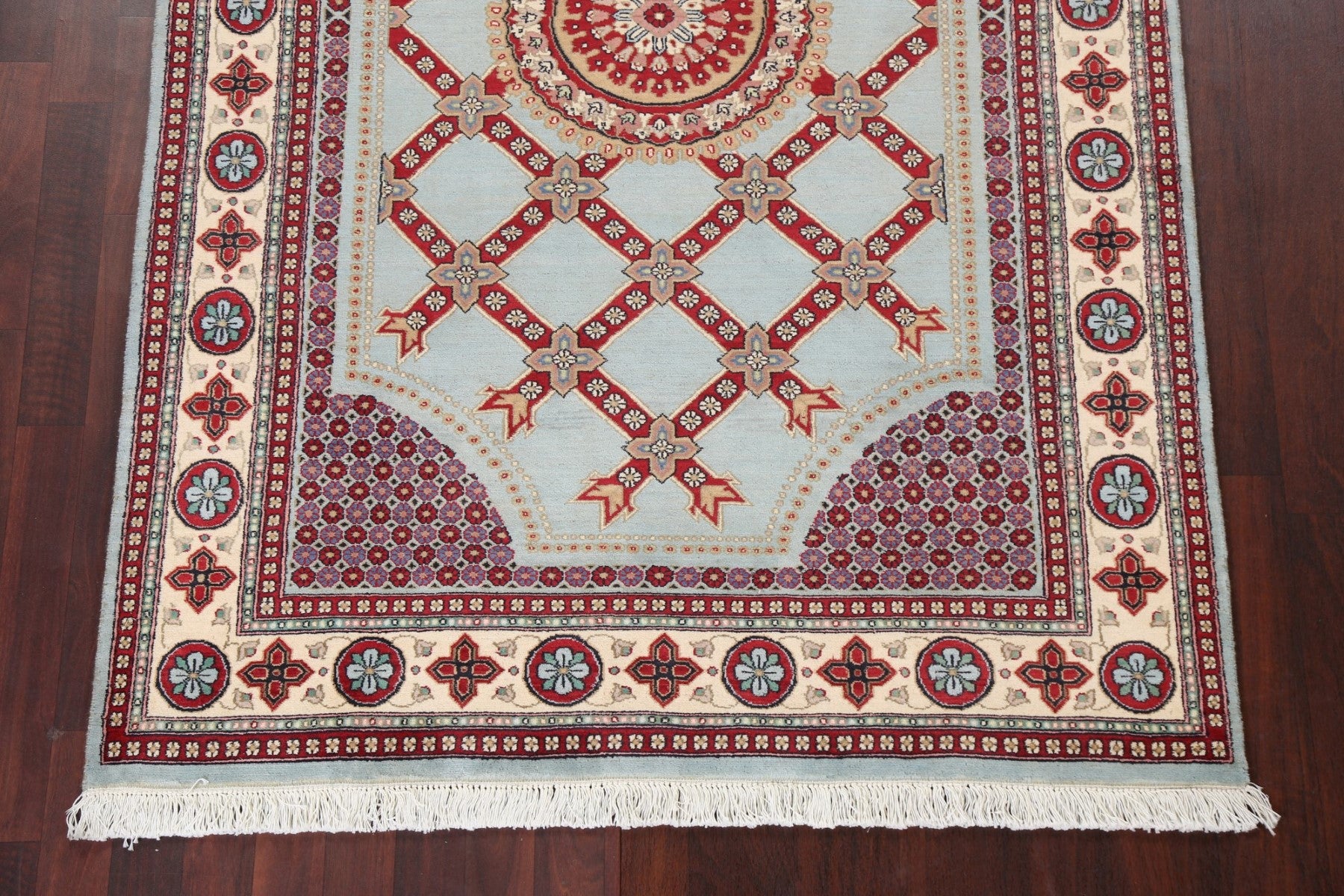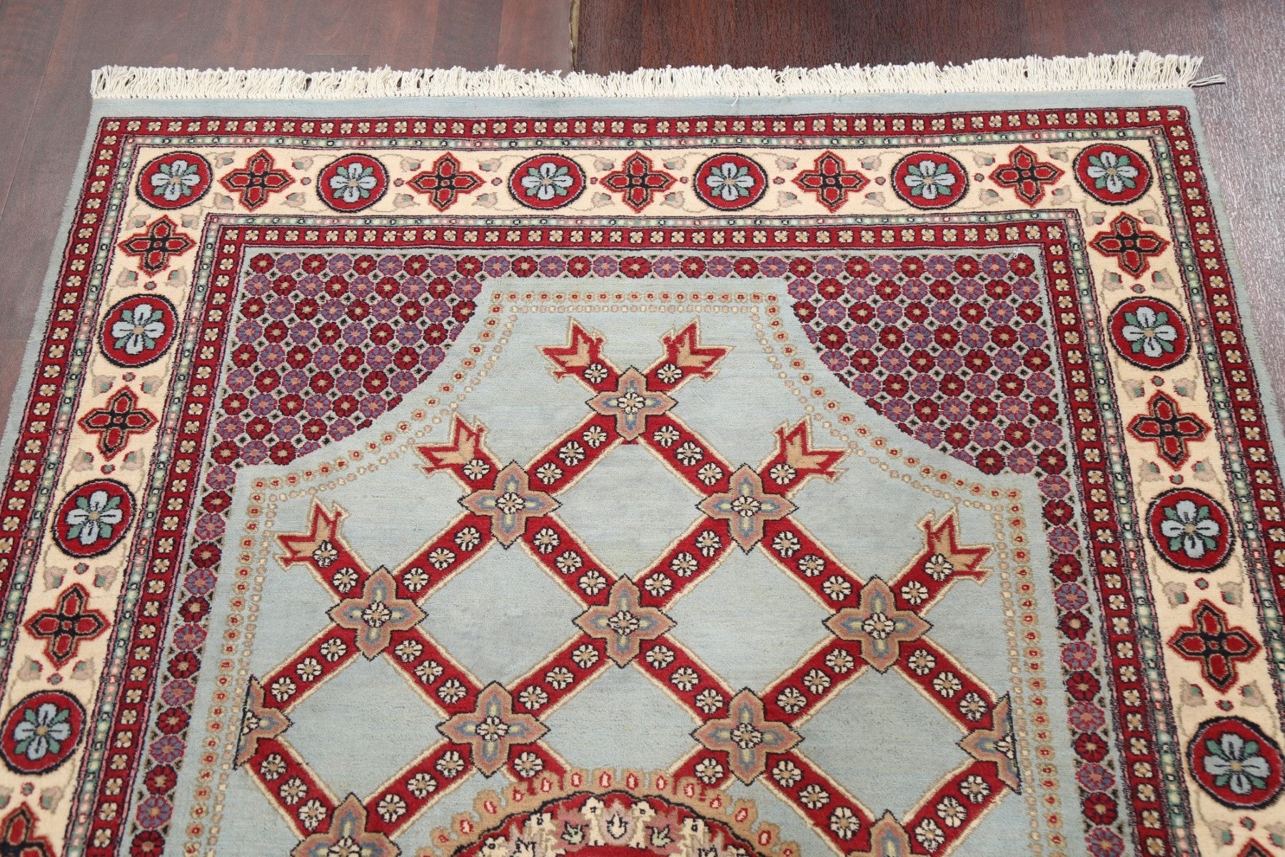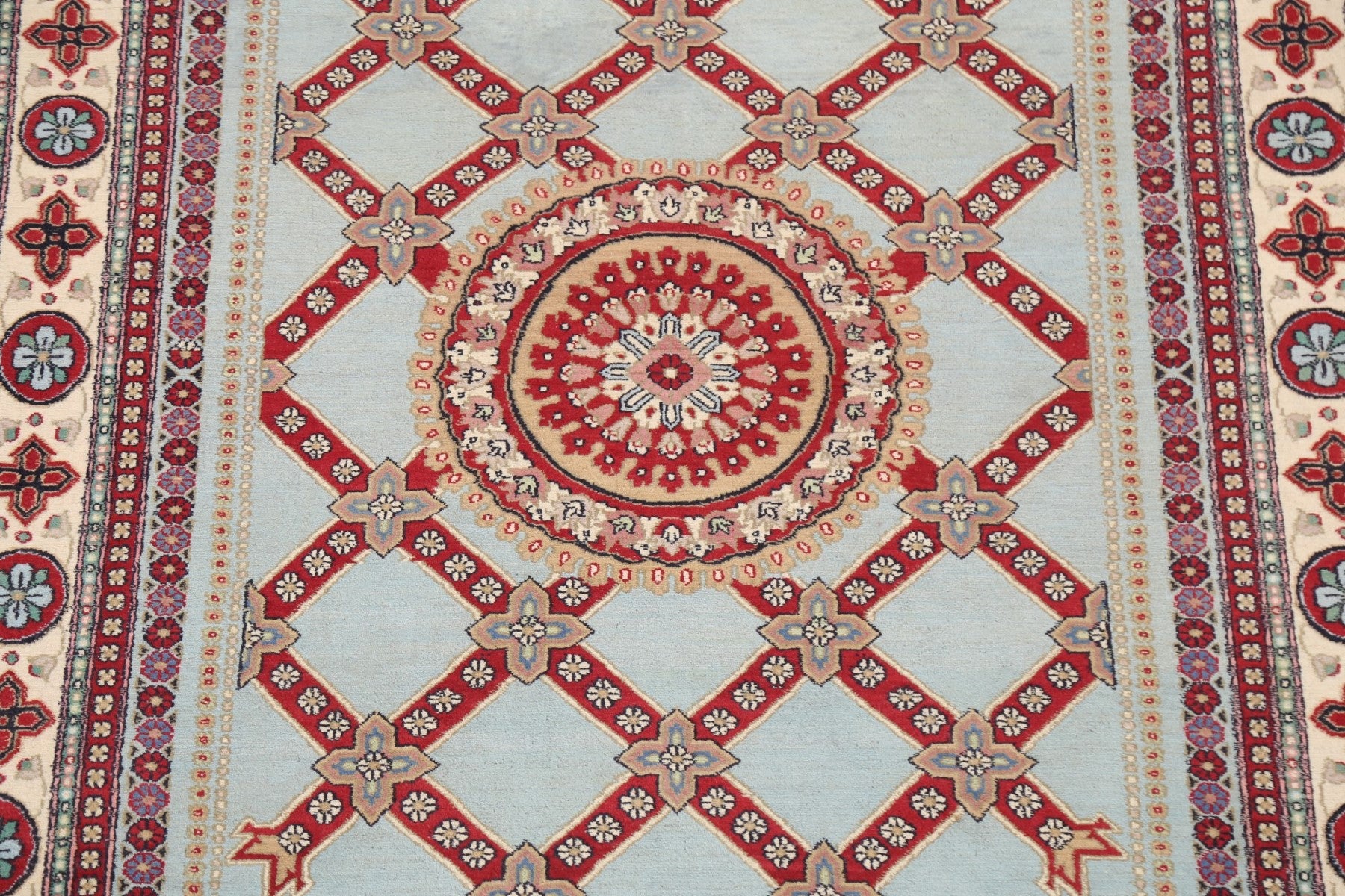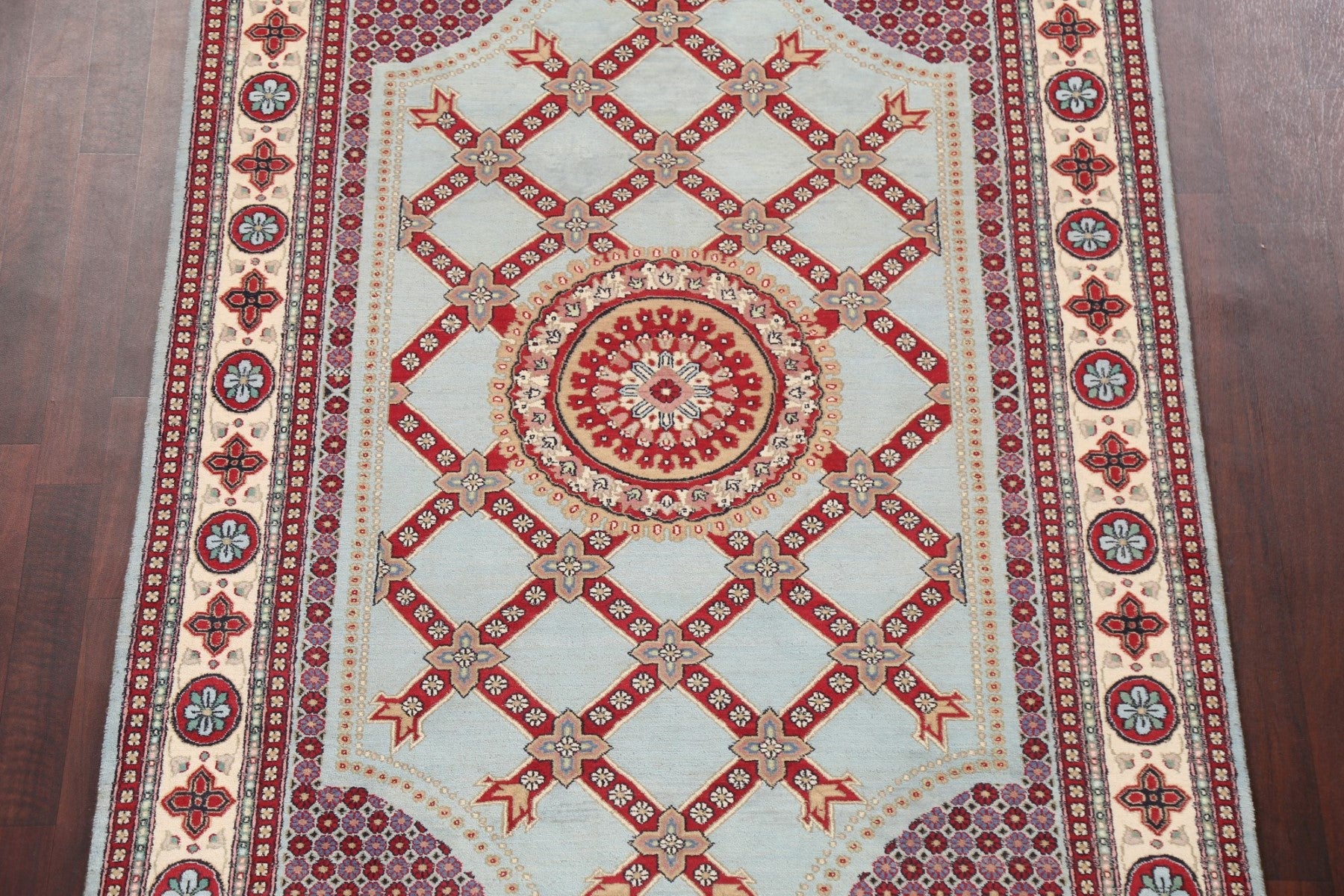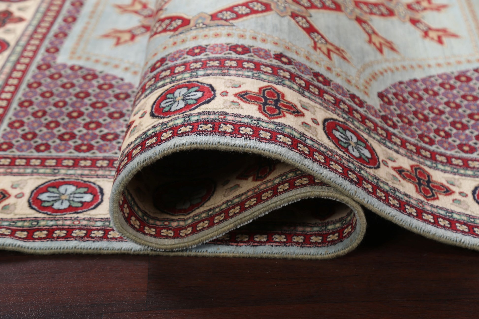 A Beautiful Genuine Pakistan Aubusson rug is Hand Knotted by skillful weavers in Pakistan with 100% Wool Material. This rug is in New, First Quality condition. dimensions are 7' 1'' X 4' 7'' in foot and 216 X 140 in centimeter. the primary color is Navy Blue & Blues.
