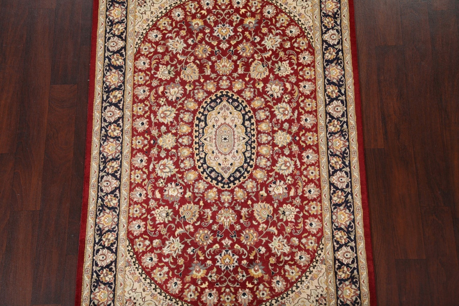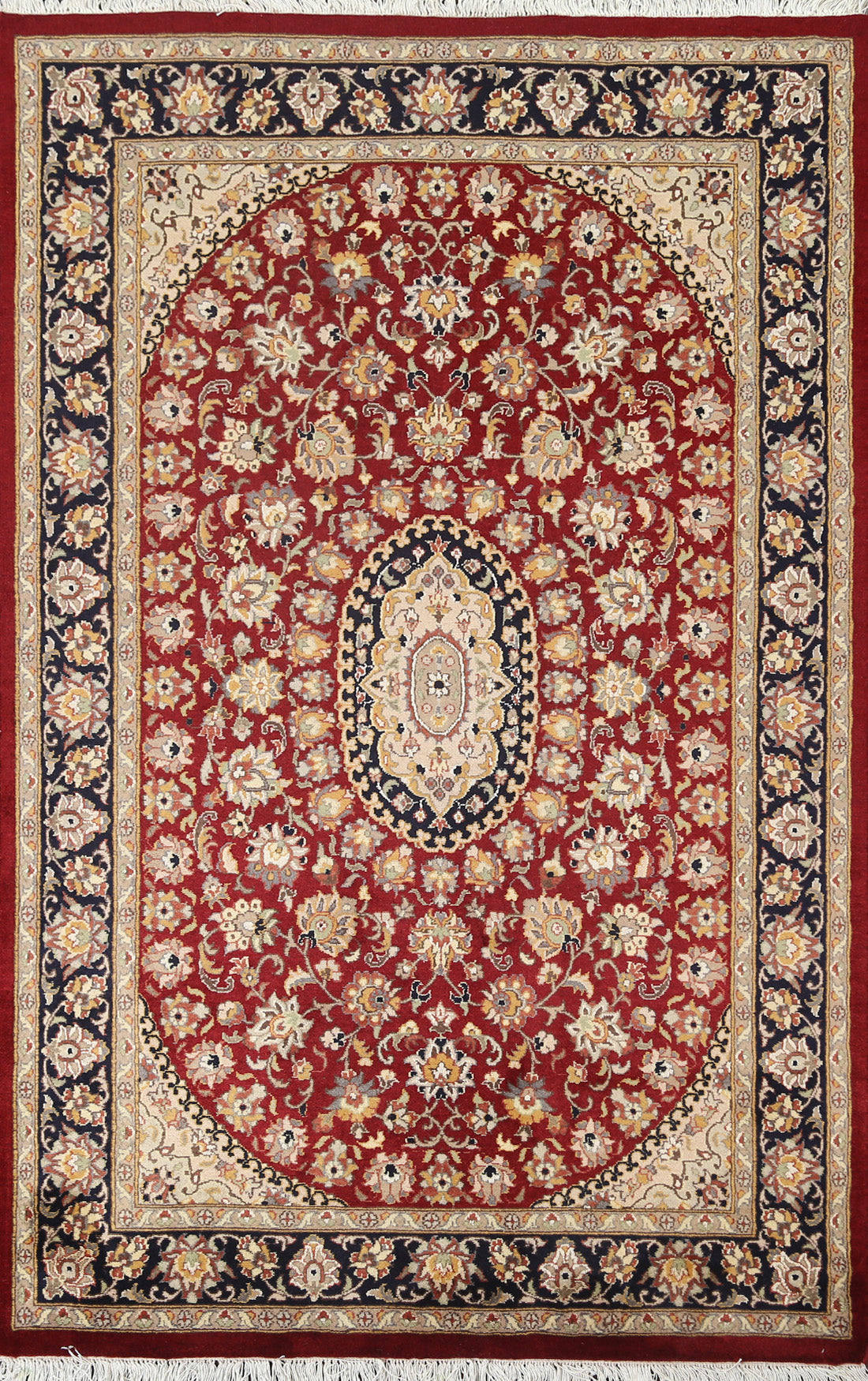 A Beautiful Genuine Pakistan Aubusson rug is Hand Knotted by skillful weavers in Pakistan with 100% Wool Material. This rug is in New, First Quality condition. dimensions are 6' 2'' X 4' 1'' in foot and 188 X 124 in centimeter. the primary color is Red.