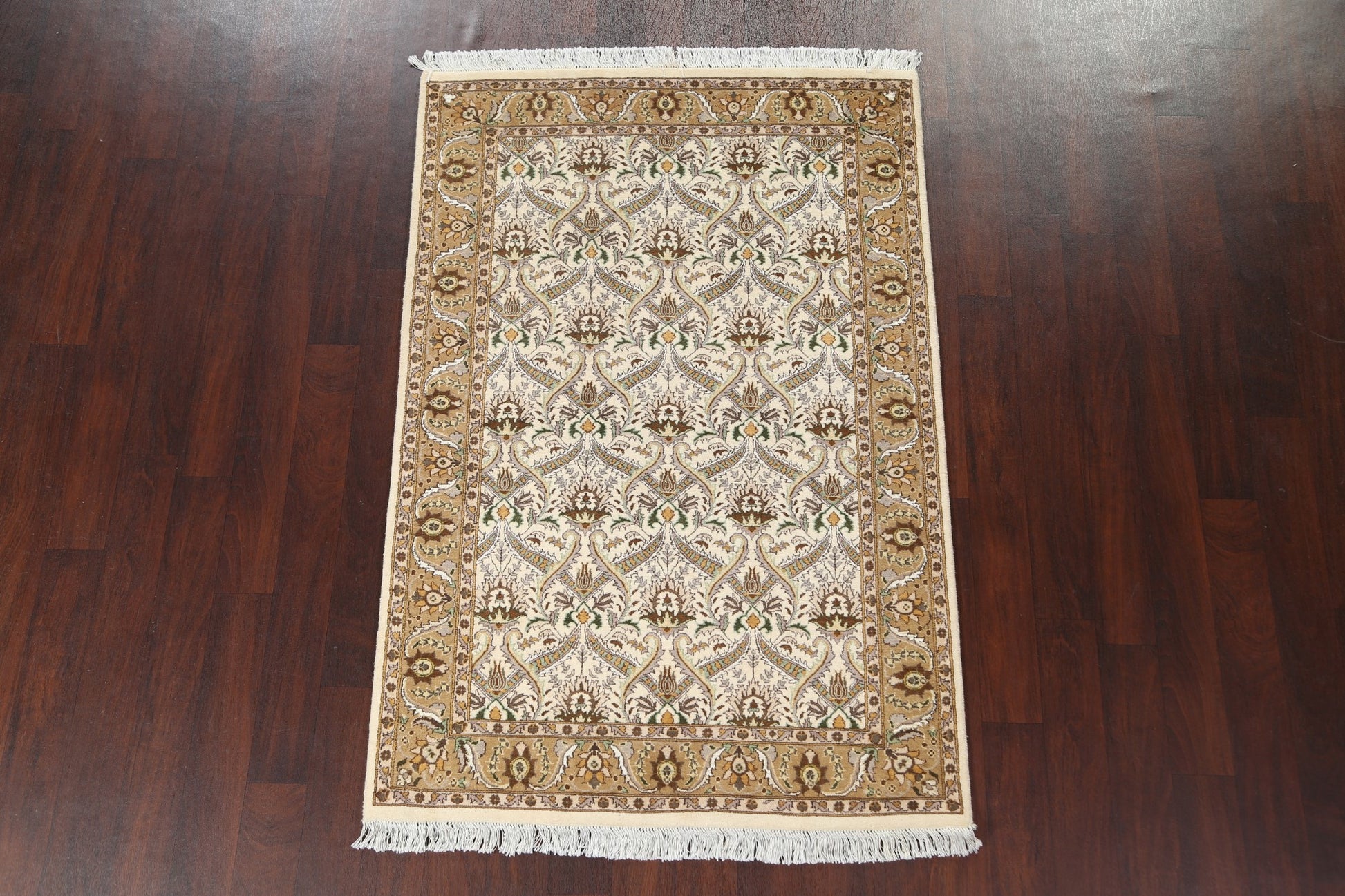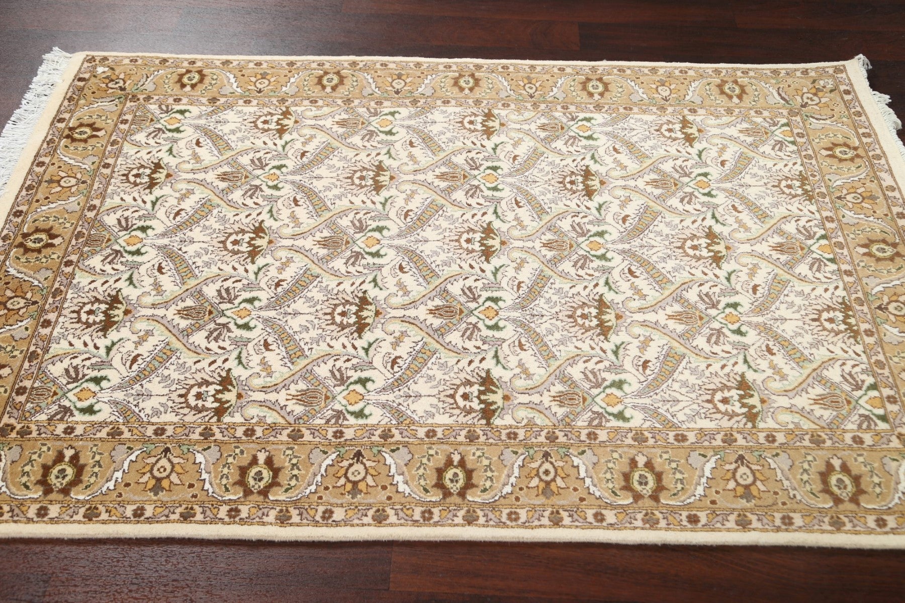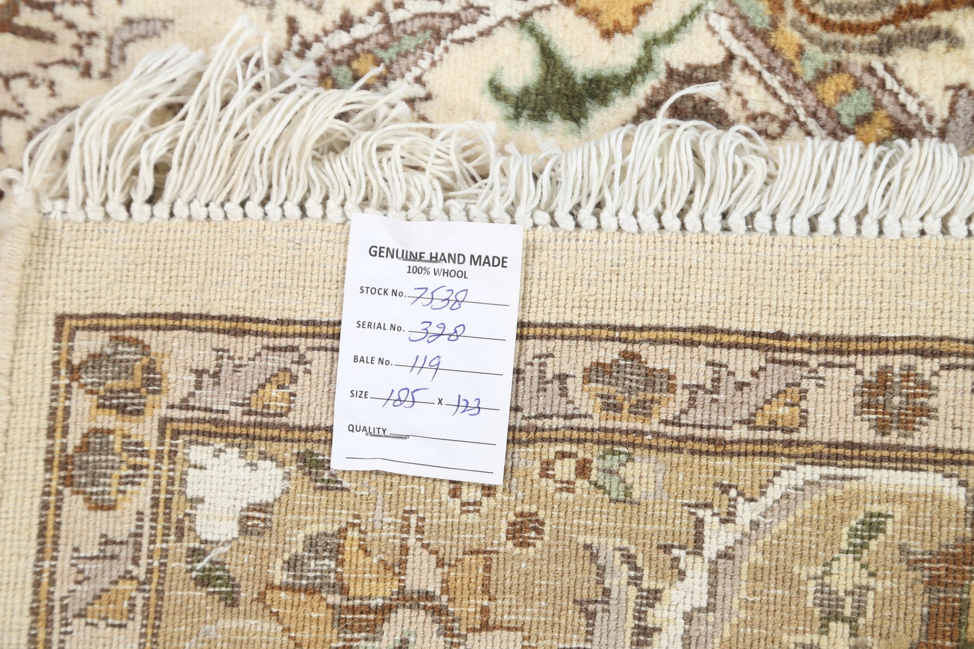 A Beautiful Genuine Pakistan Aubusson rug is Hand Knotted by skillful weavers in Pakistan with Wool & Silk Material. This rug is in New, First Quality condition. dimensions are 6' 1'' X 4' 0'' in foot and 185 X 122 in centimeter. the primary color is Beige & Ivories.
