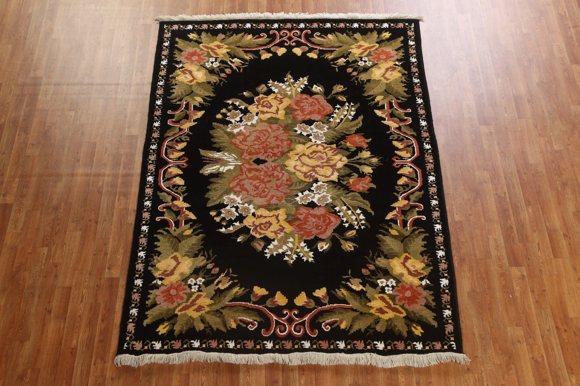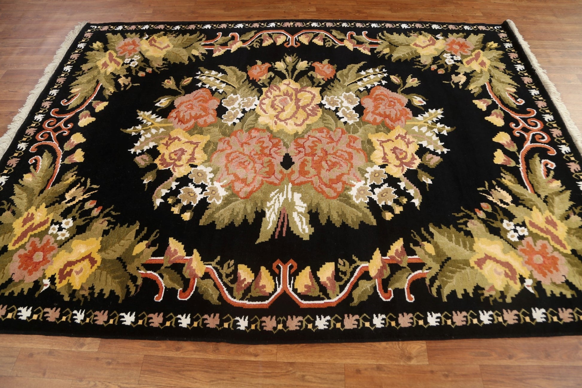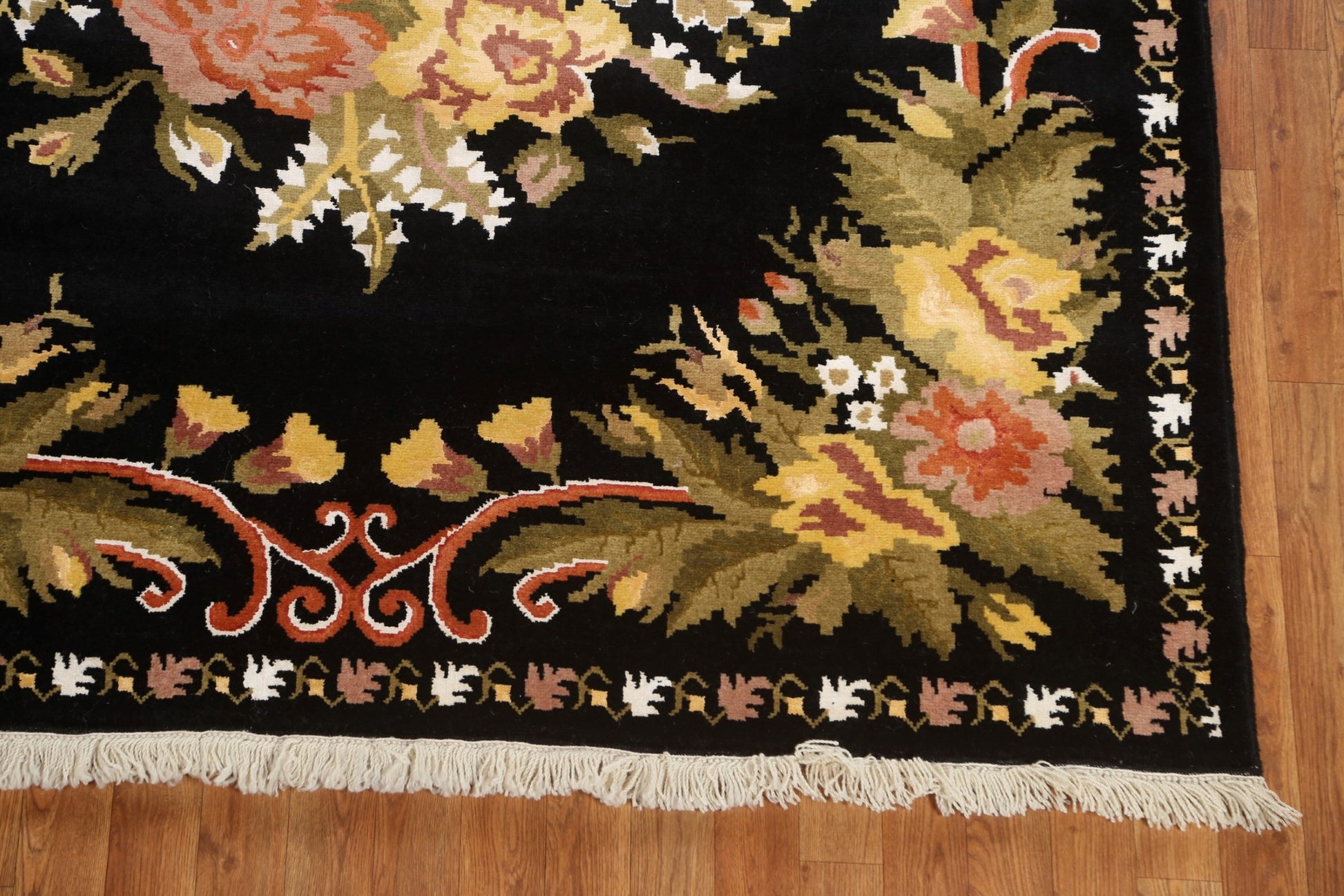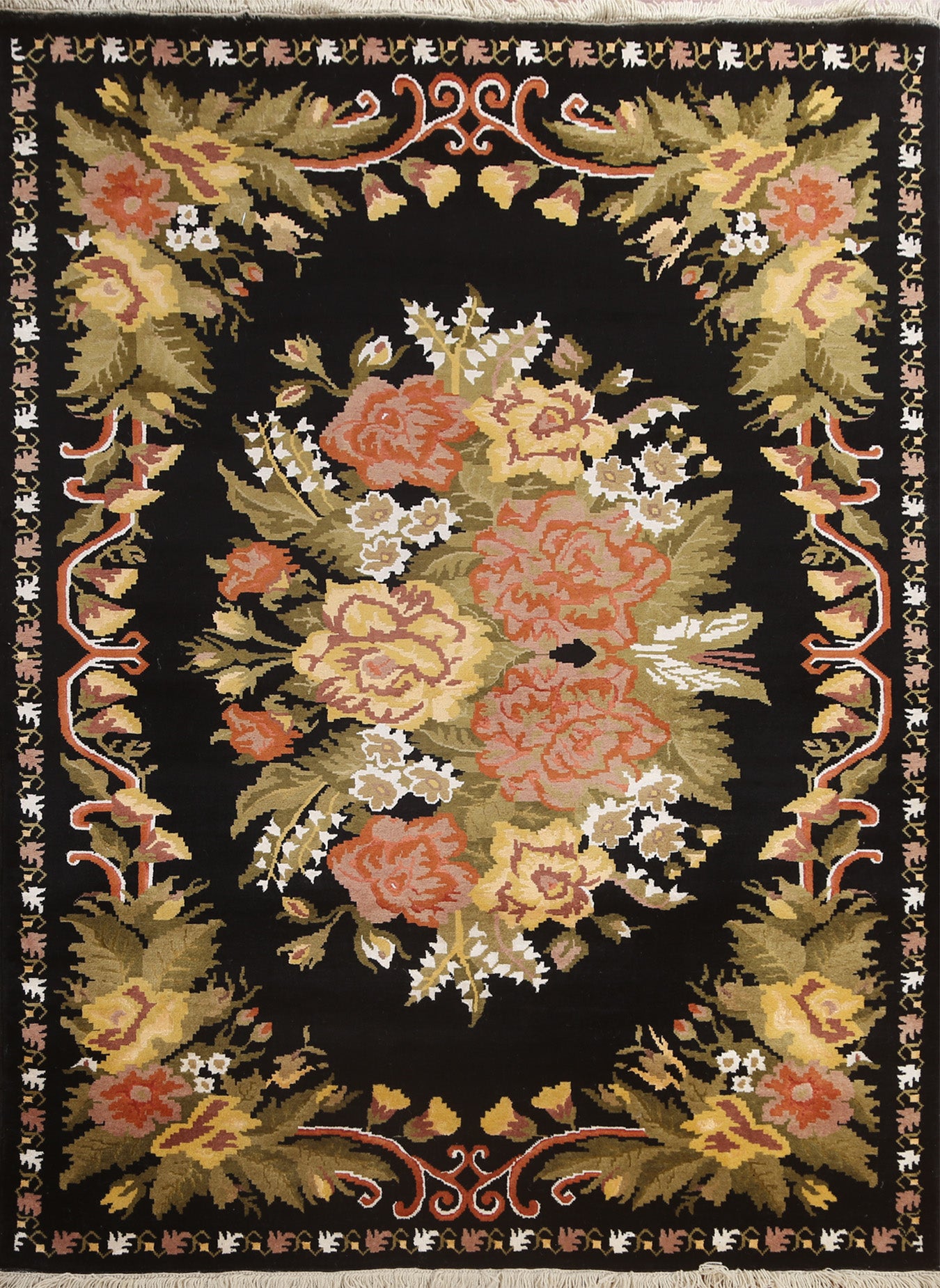 A Beautiful Genuine India Aubusson rug is Hand Knotted by skillful weavers in India with Wool & Silk Material. This rug is in New, First Quality condition. dimensions are 8' 1'' X 5' 11'' in foot and 246 X 180 in centimeter. the primary color is Black.