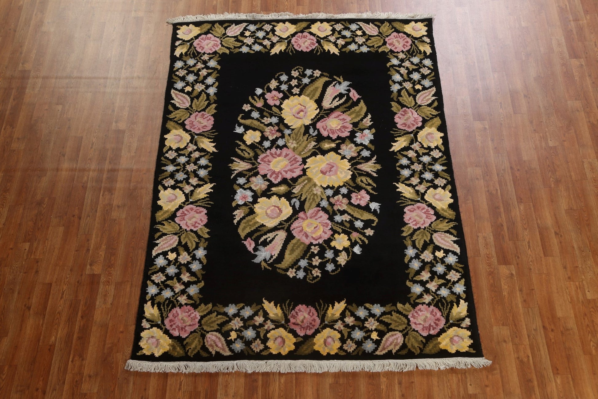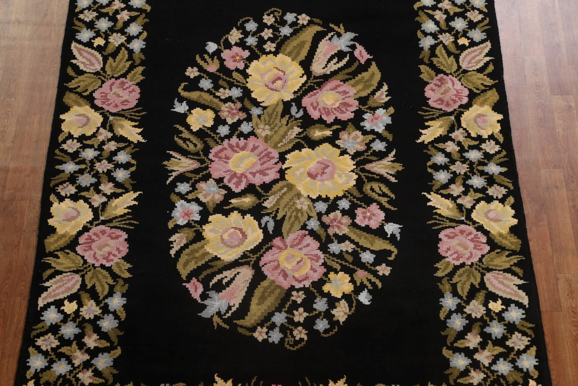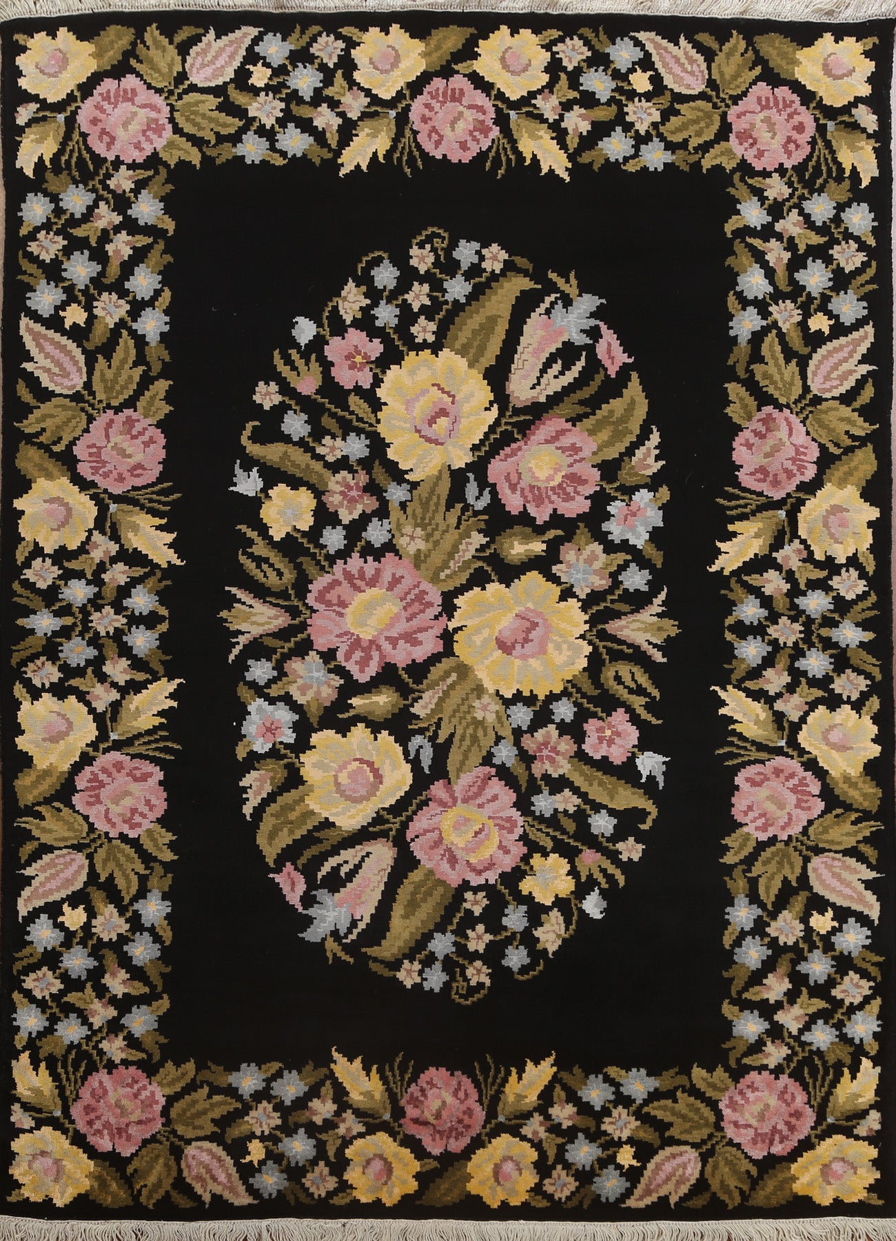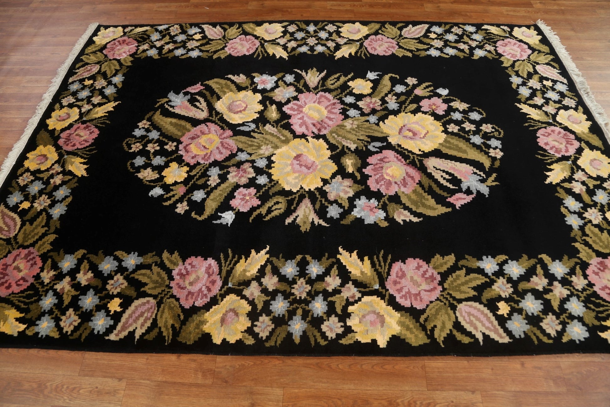 A Beautiful Genuine India Aubusson rug is Hand Knotted by skillful weavers in India with Wool & Silk Material. This rug is in New, First Quality condition. dimensions are 8' 0'' X 5' 9'' in foot and 244 X 175 in centimeter. the primary color is Black.