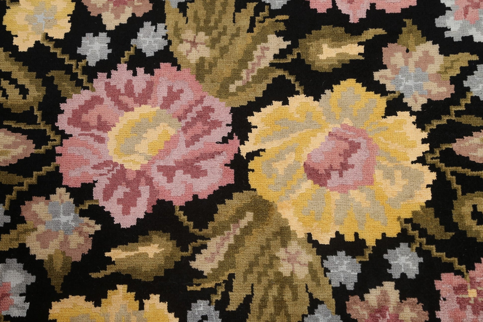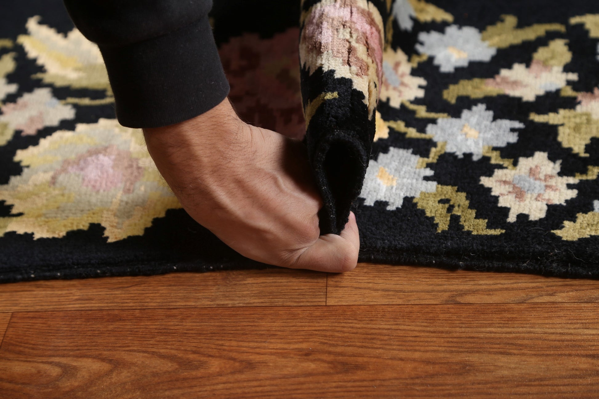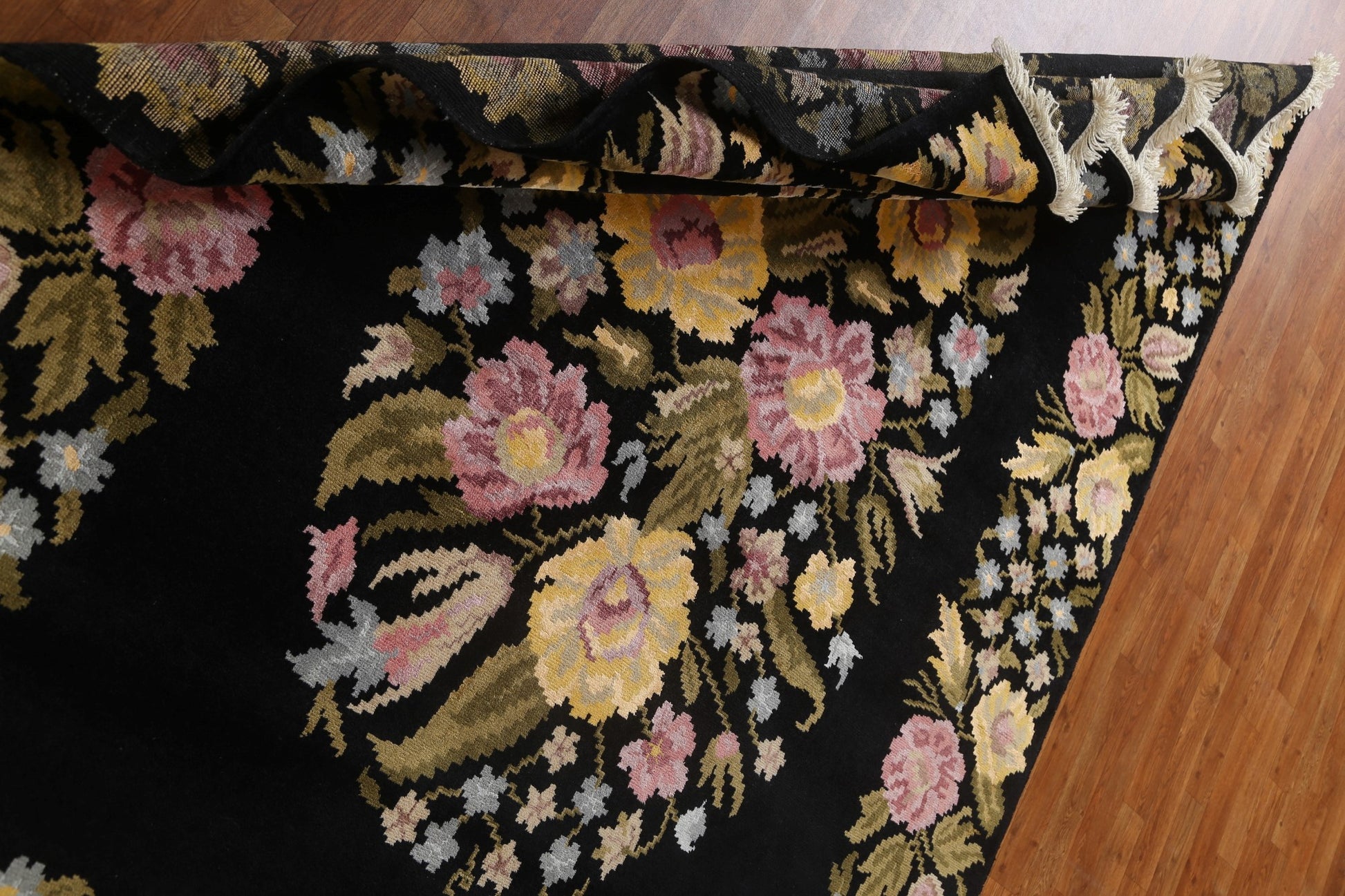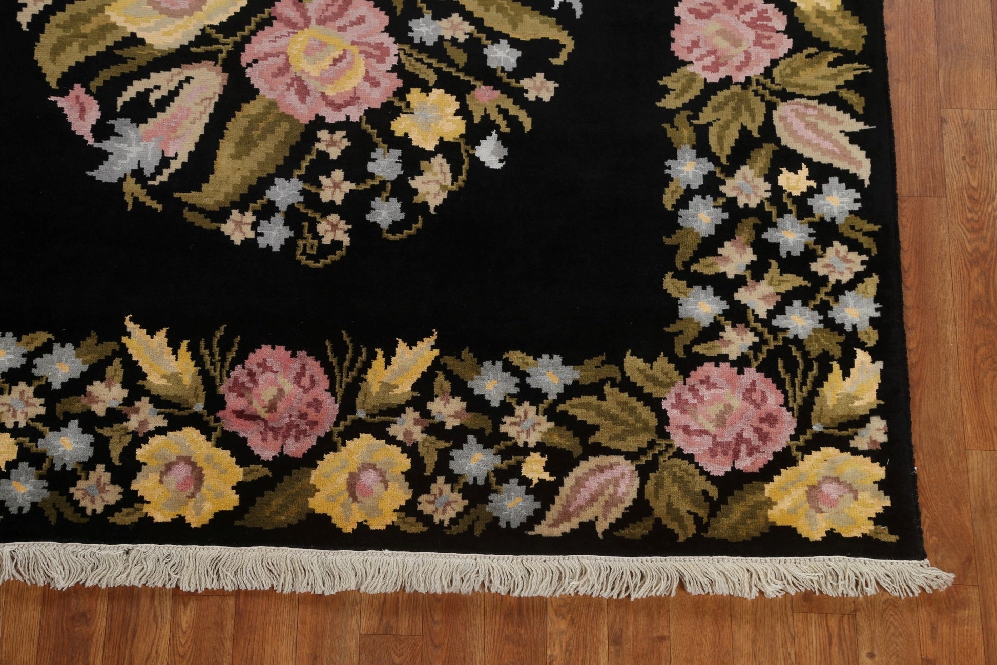 A Beautiful Genuine India Aubusson rug is Hand Knotted by skillful weavers in India with Wool & Silk Material. This rug is in New, First Quality condition. dimensions are 8' 0'' X 5' 9'' in foot and 244 X 175 in centimeter. the primary color is Black.