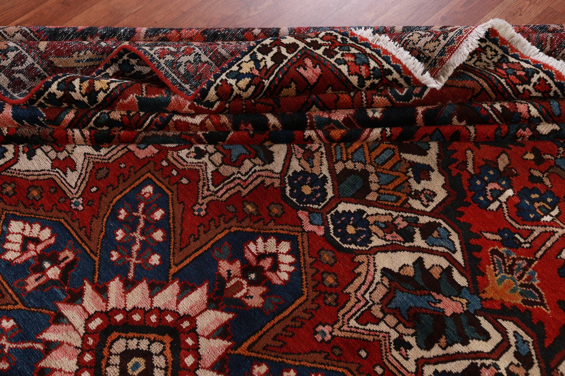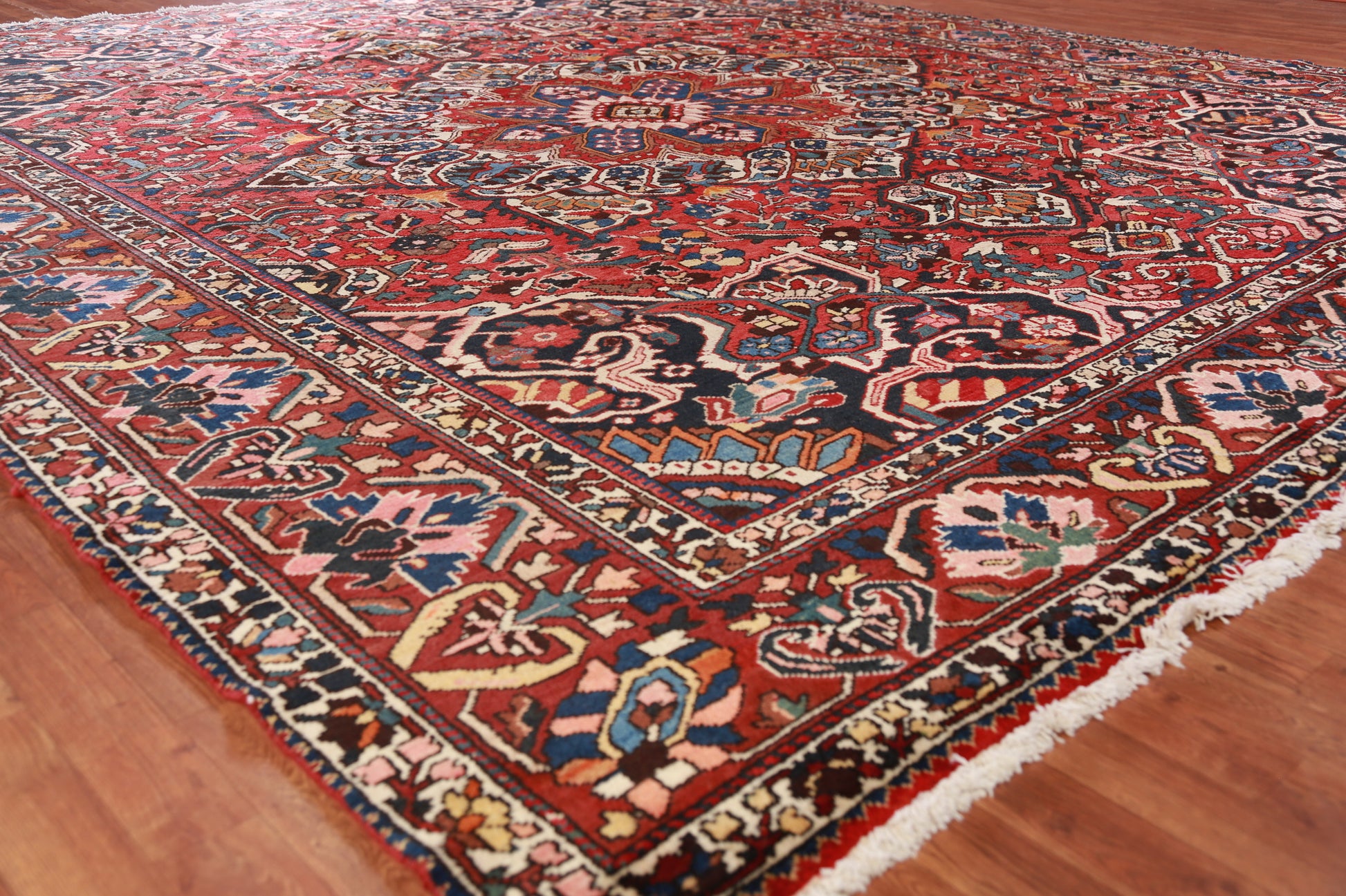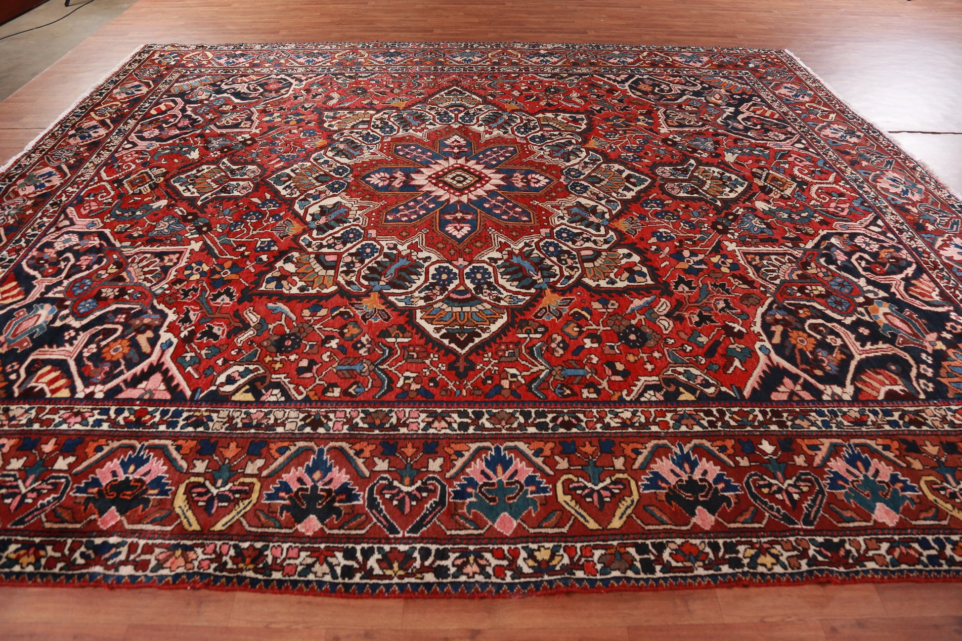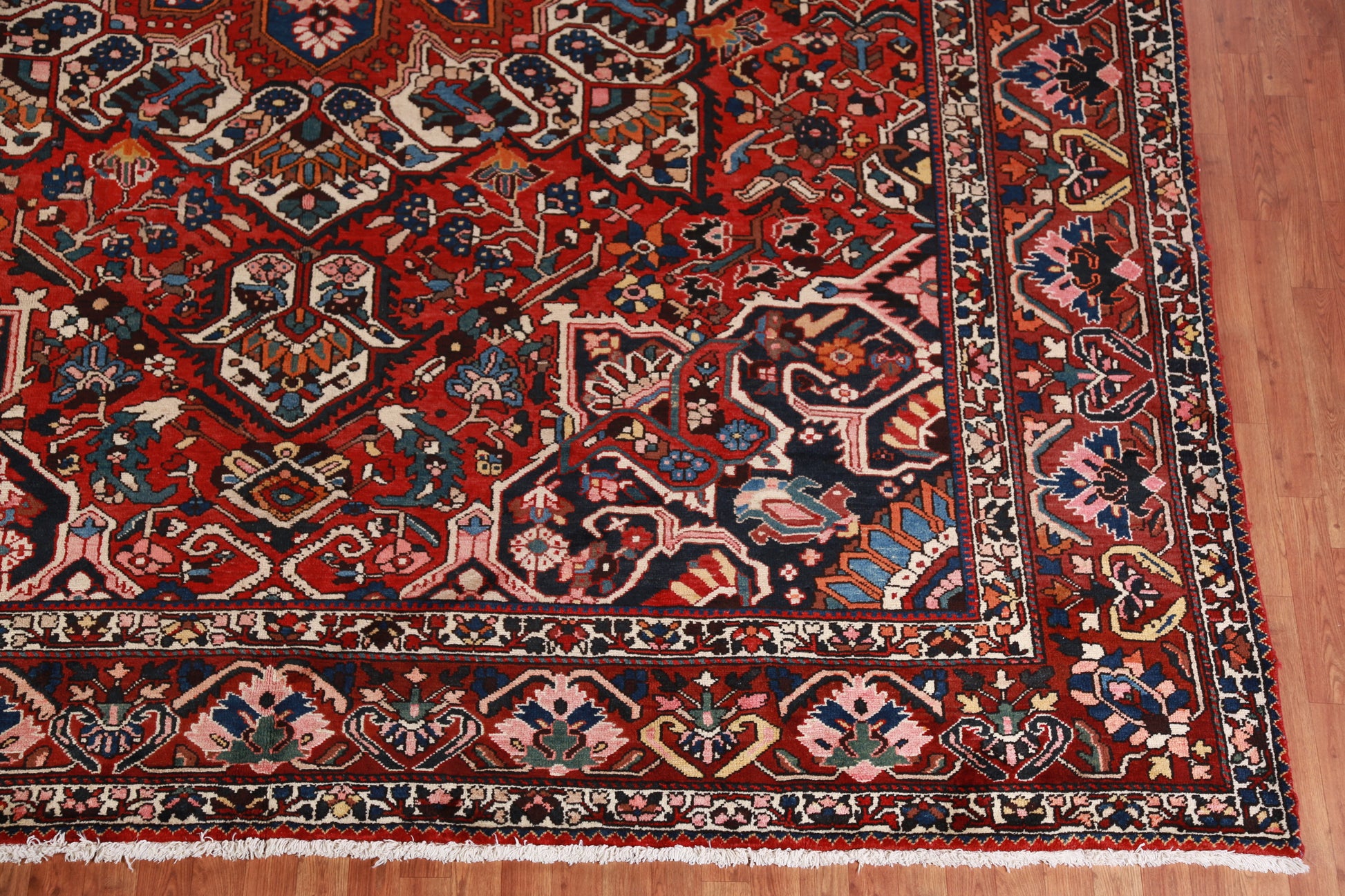 A Beautiful Genuine Persia ( Persia ) Bakhtiari rug is Hand Knotted by skillful weavers in Persia ( Persia ) with 100% Wool Material. This rug is in Very Good (Repair) condition. dimensions are 13' 2'' X 11' 5'' in foot and 401 X 348 in centimeter. the primary color is Red.