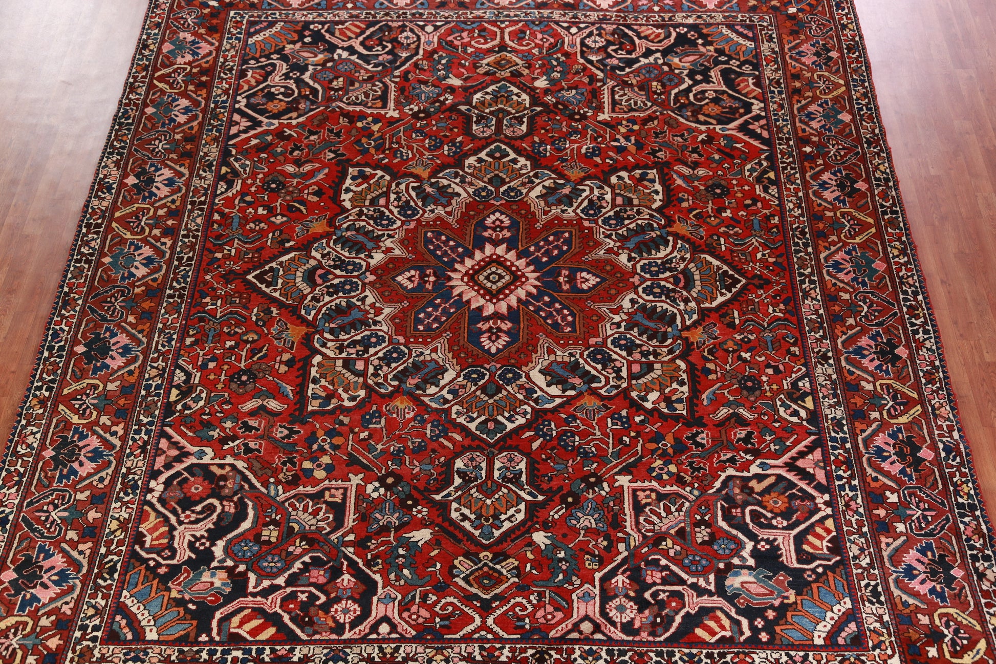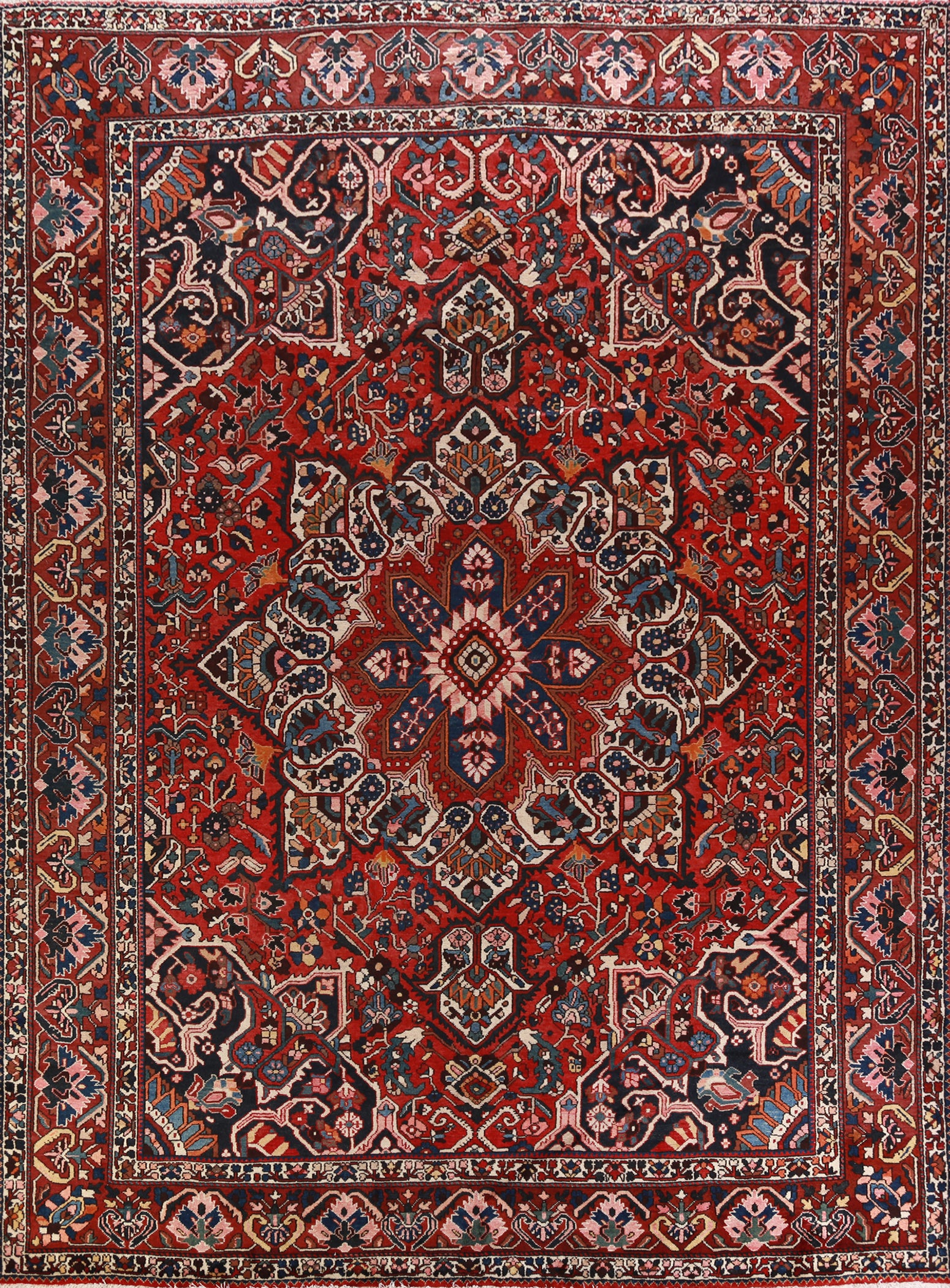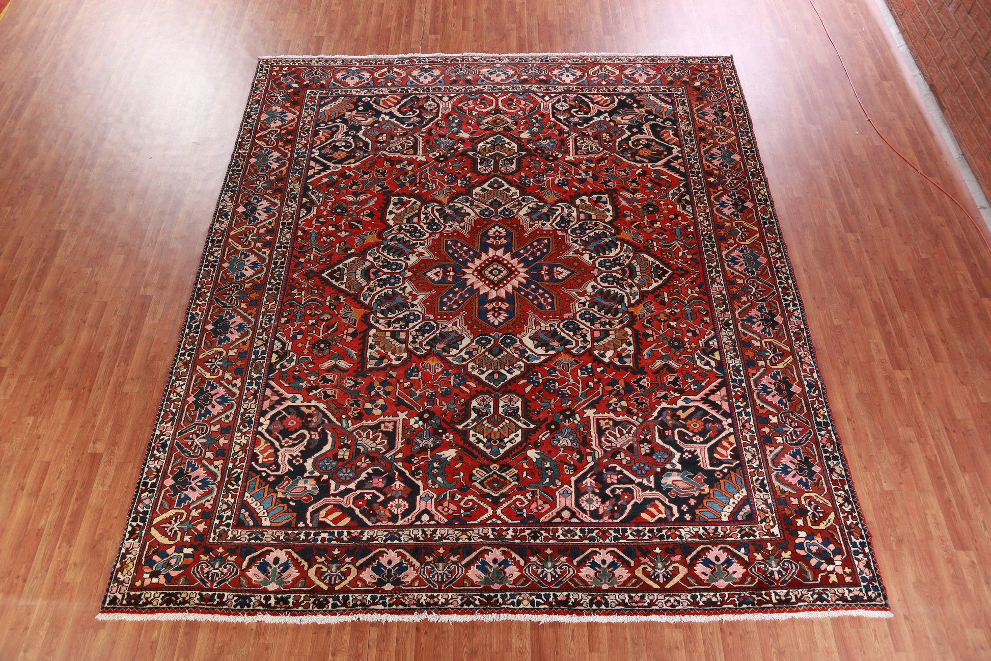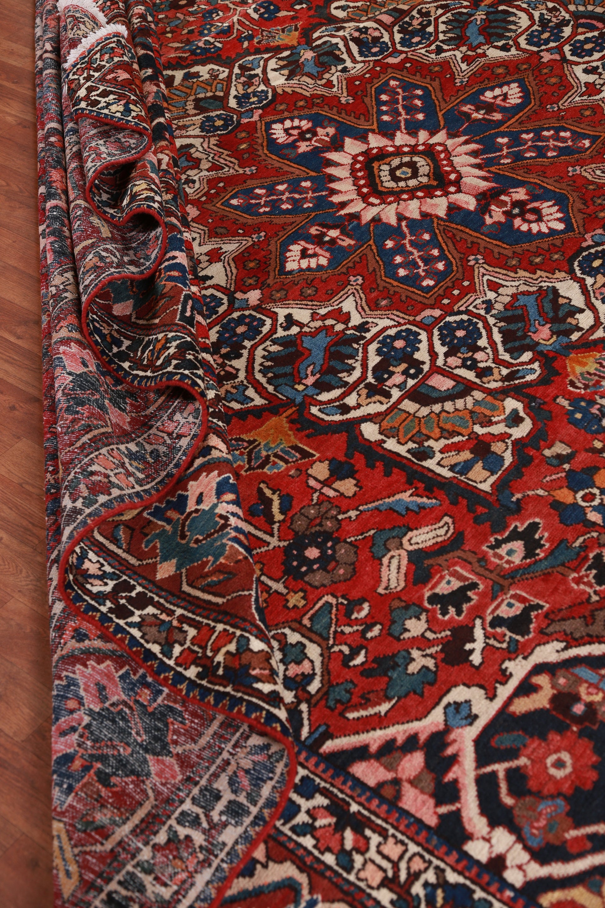 A Beautiful Genuine Persia ( Persia ) Bakhtiari rug is Hand Knotted by skillful weavers in Persia ( Persia ) with 100% Wool Material. This rug is in Very Good (Repair) condition. dimensions are 13' 2'' X 11' 5'' in foot and 401 X 348 in centimeter. the primary color is Red.