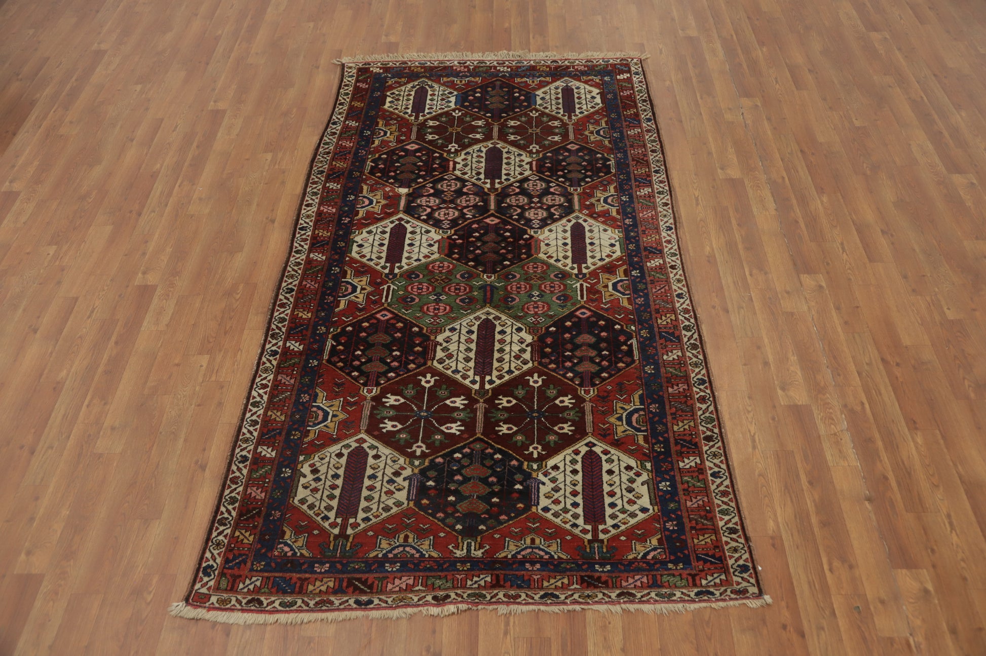 A Beautiful Genuine Persia ( Persia ) Bakhtiari rug is Hand Knotted by skillful weavers in Persia ( Persia ) with 100% Wool Material. This rug is in Very Good condition. dimensions are 7' 10'' X 4' 4'' in foot and 239 X 132 in centimeter. the primary color is Multi-Colored.