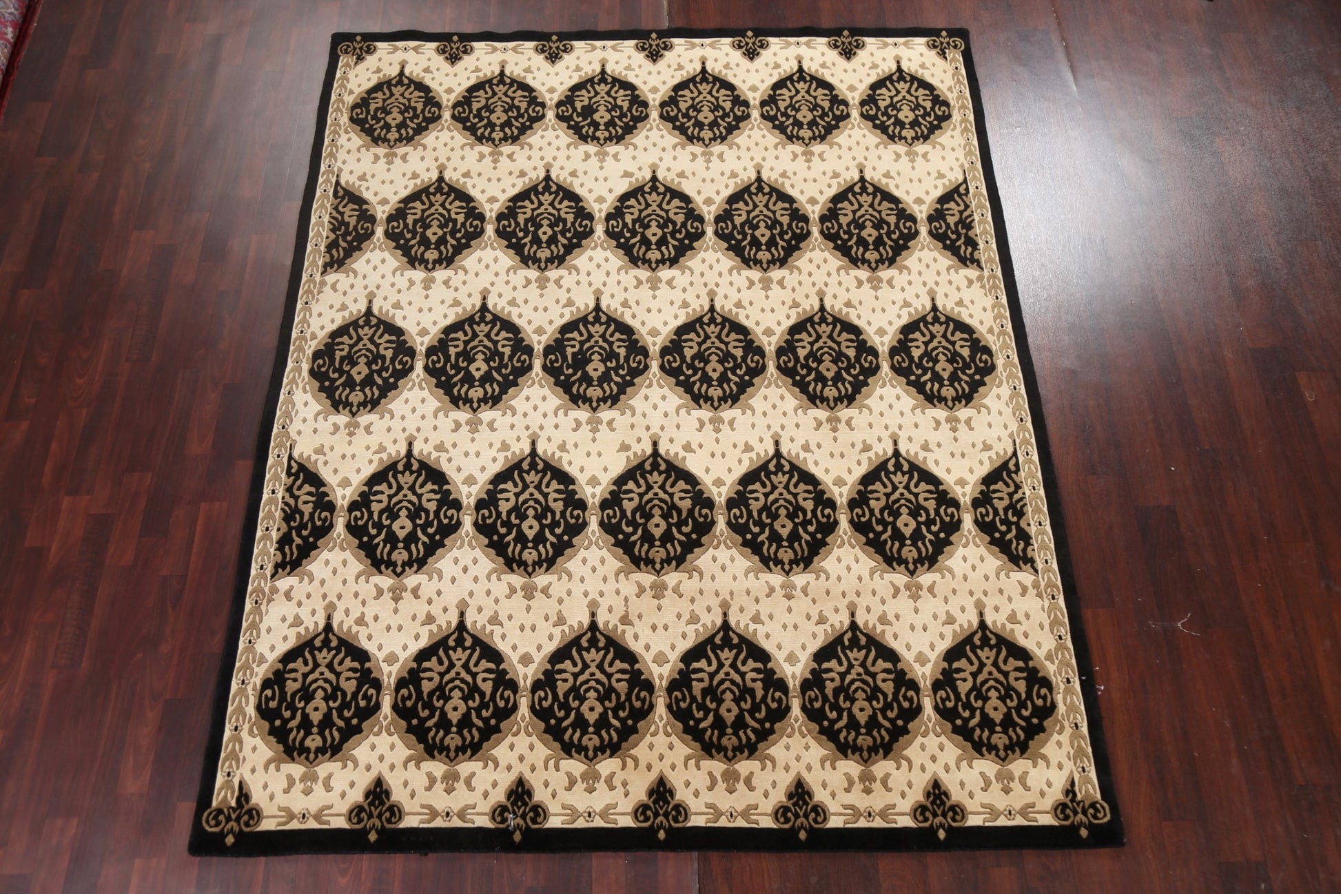 Vegetable Dye Black & Beige Nepalese Oriental Rug 8x10
