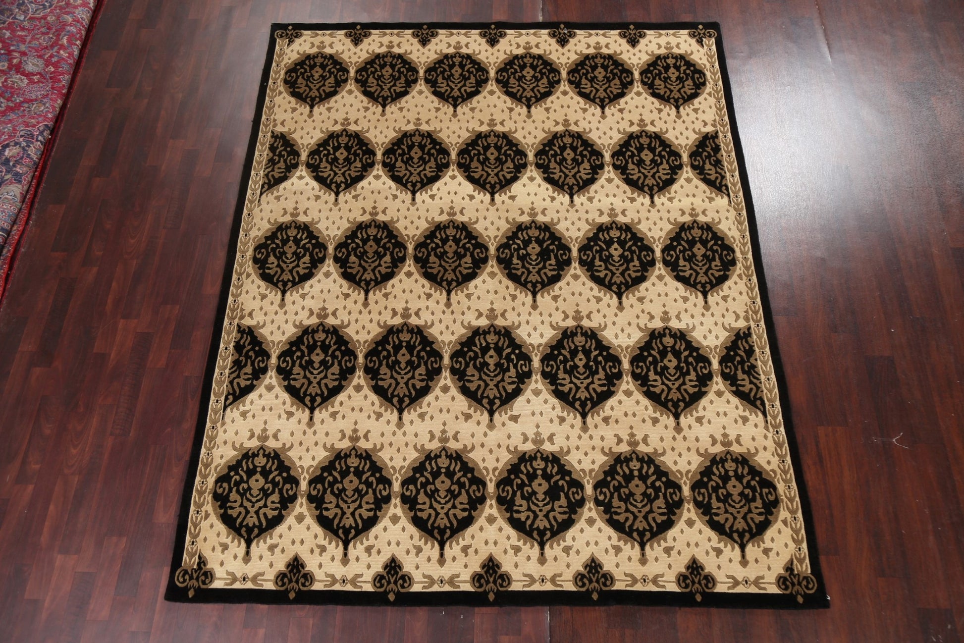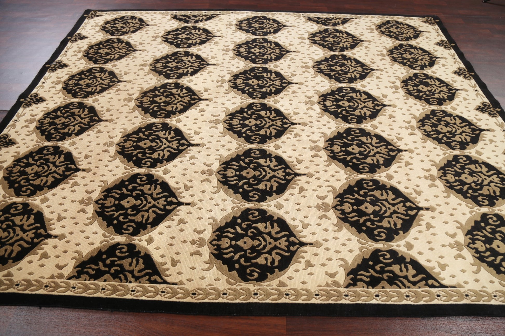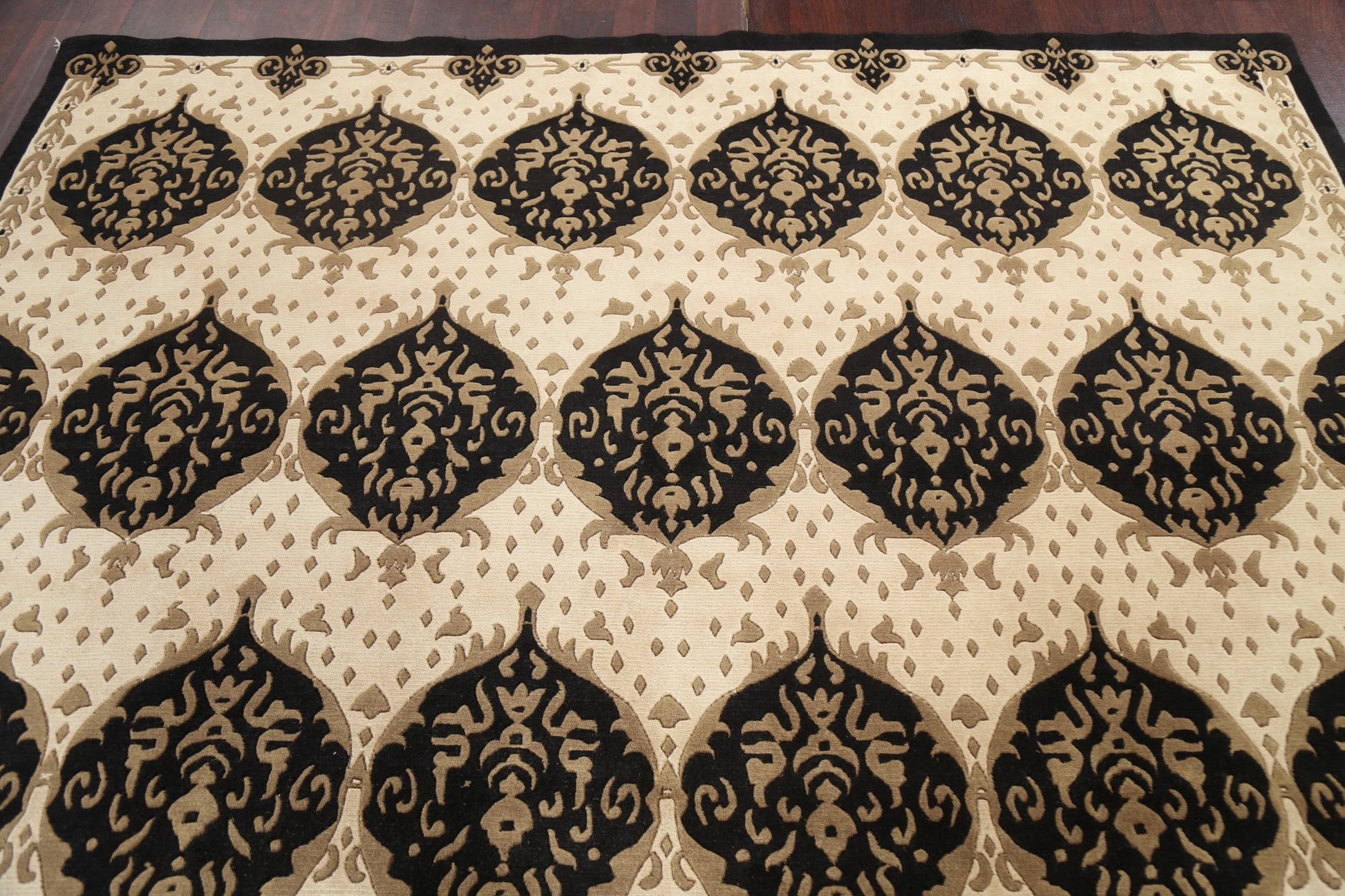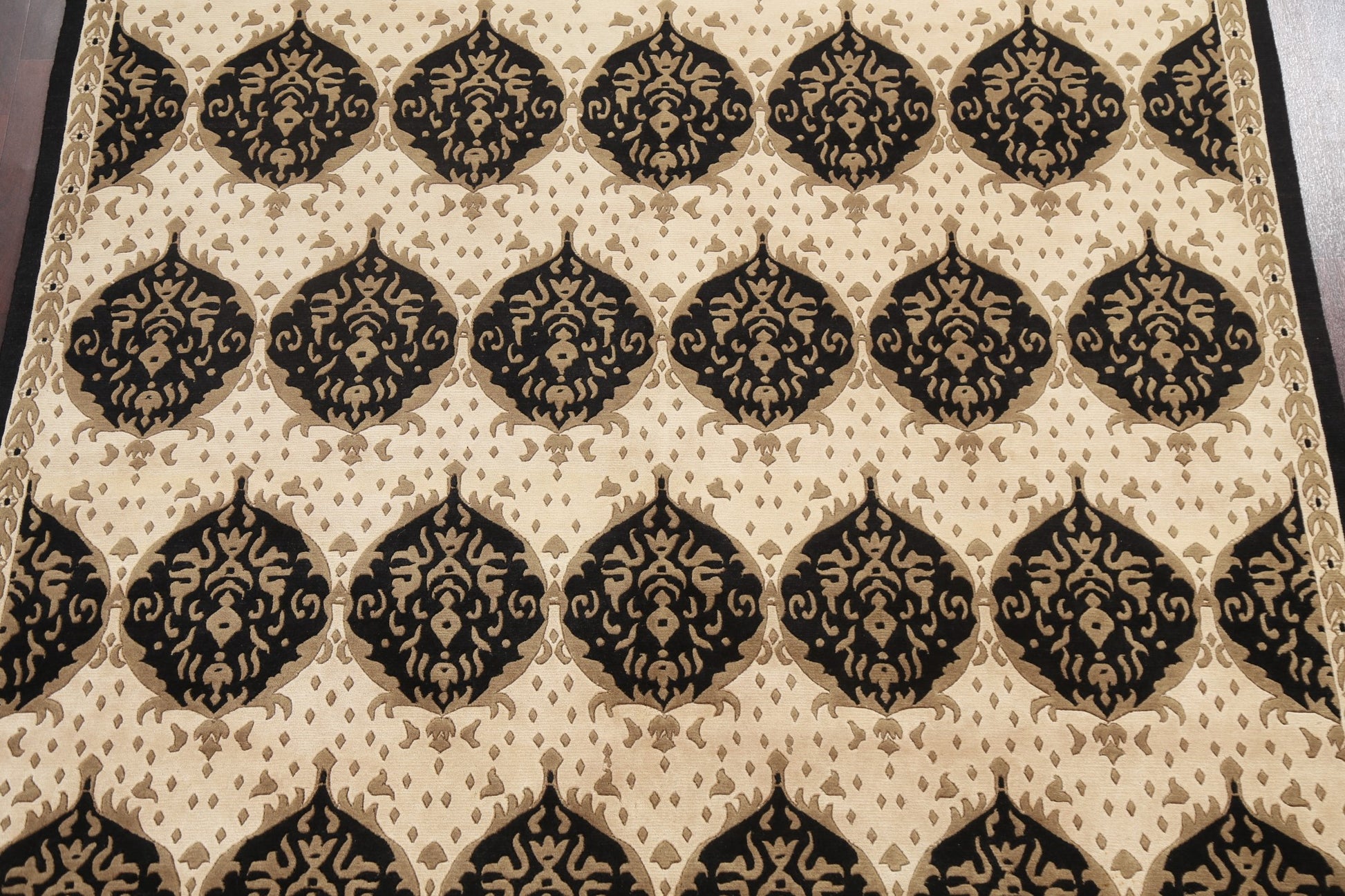 A Beautiful Genuine Nepal Nepalese rug is Hand Knotted by skillful weavers in Nepal with 100% Wool Material. This rug is in New, First Quality condition. dimensions are 9' 9'' X 7' 10'' in foot and 297 X 239 in centimeter. the primary color is Black.