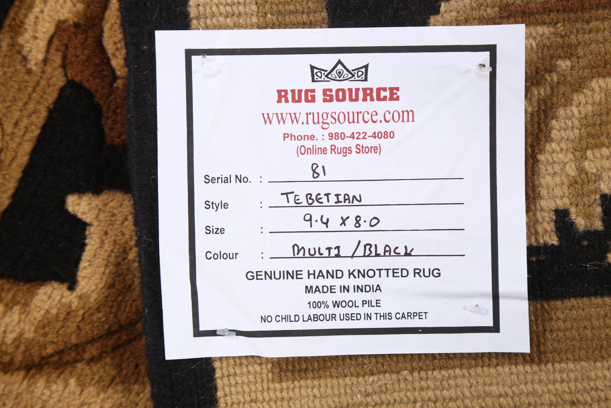 Vegetable Dye Black/ Gold Nepalese Area Rug 8x10