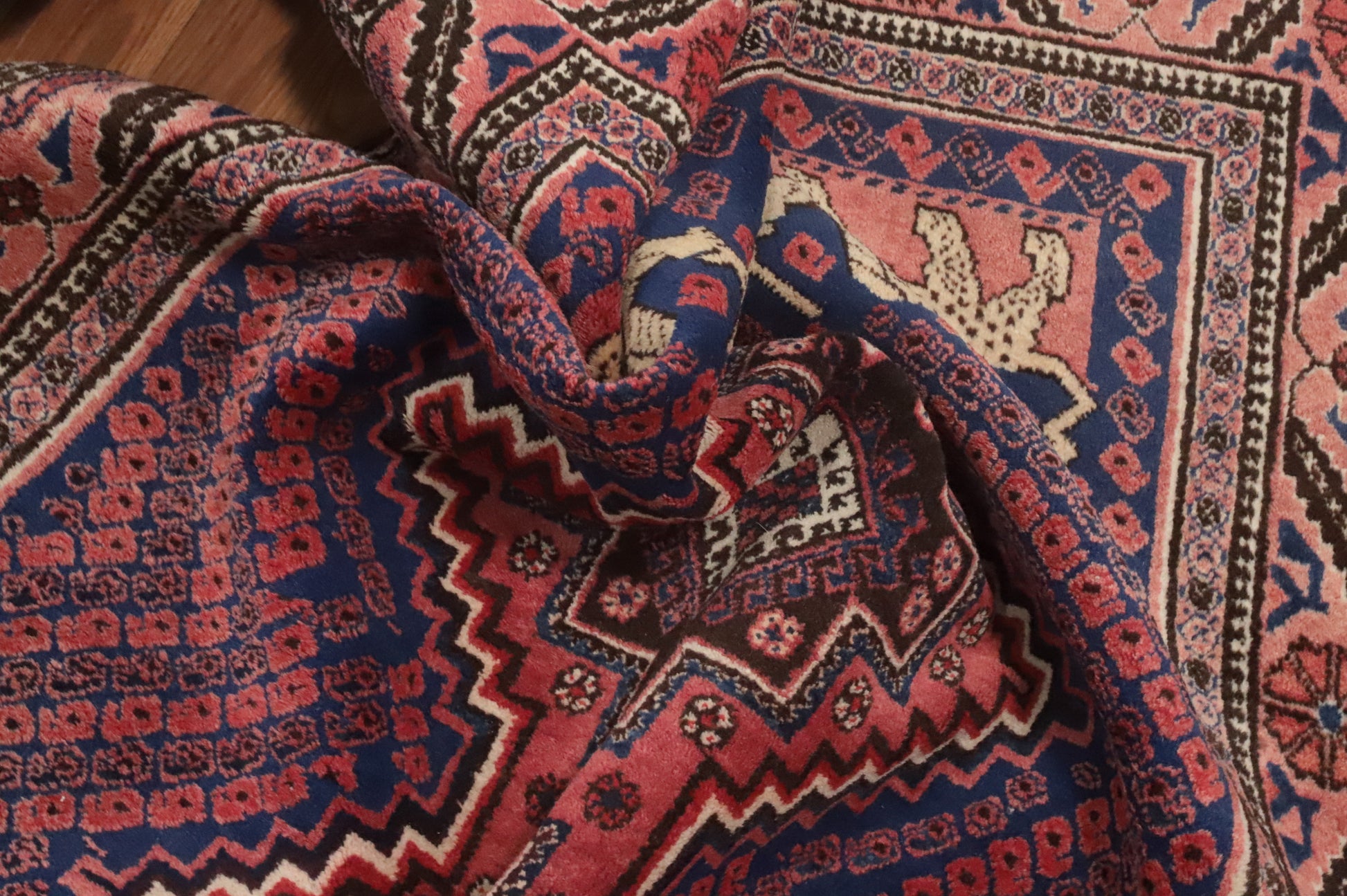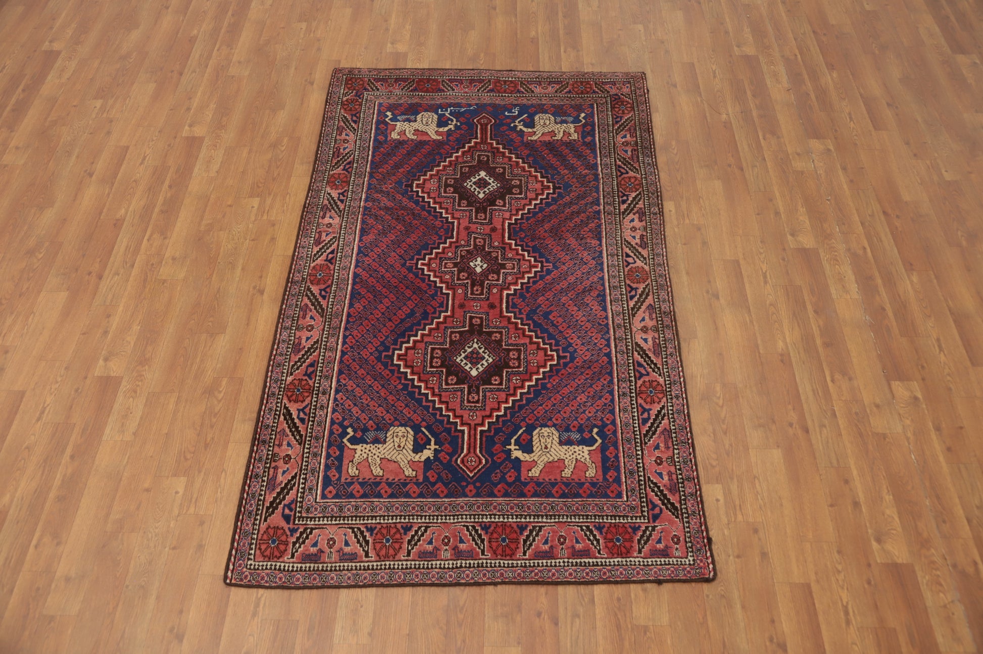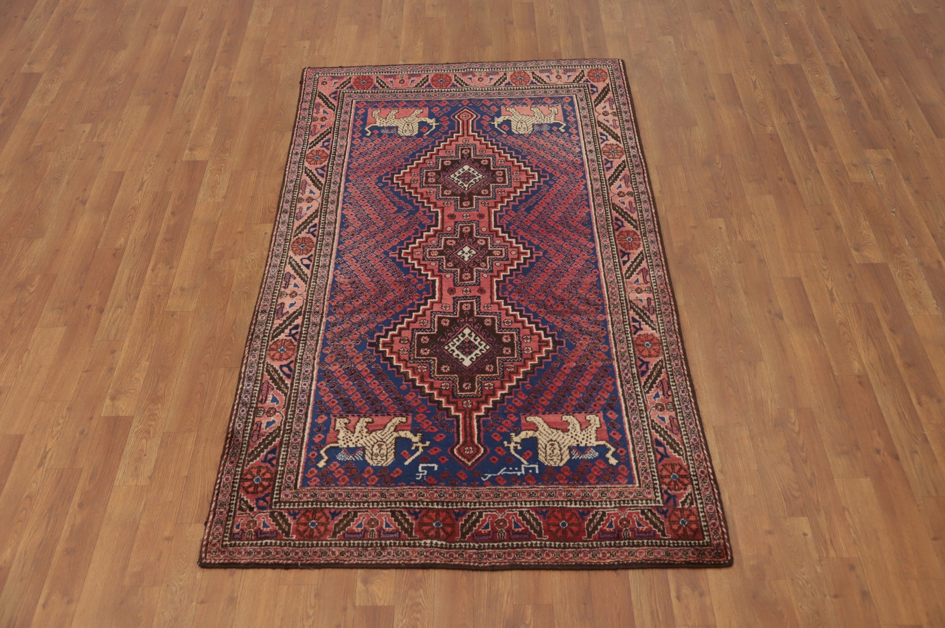 Vegetable Dye Blue Animals Hamedan Persian Rug 4x6
