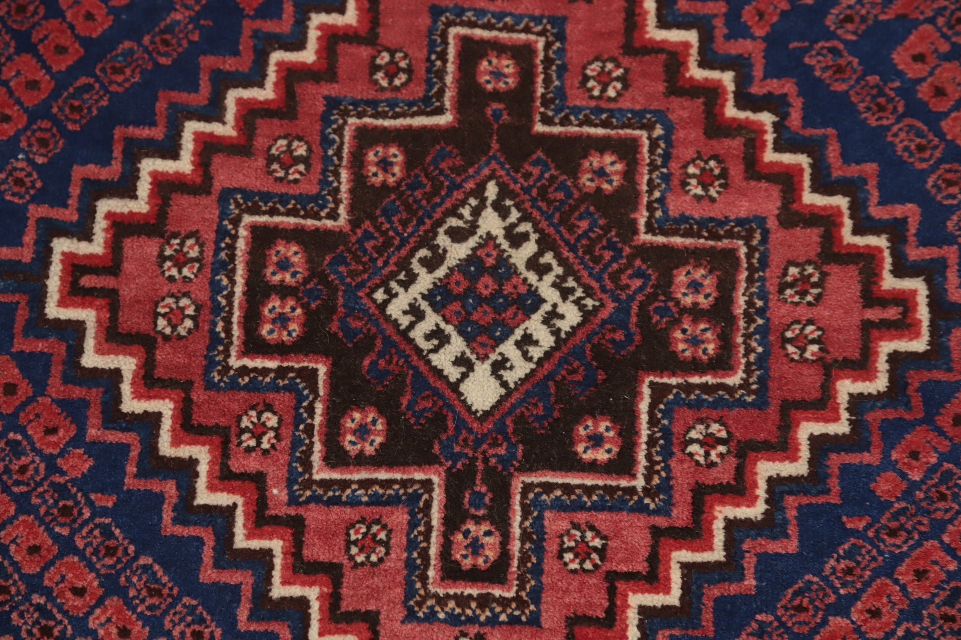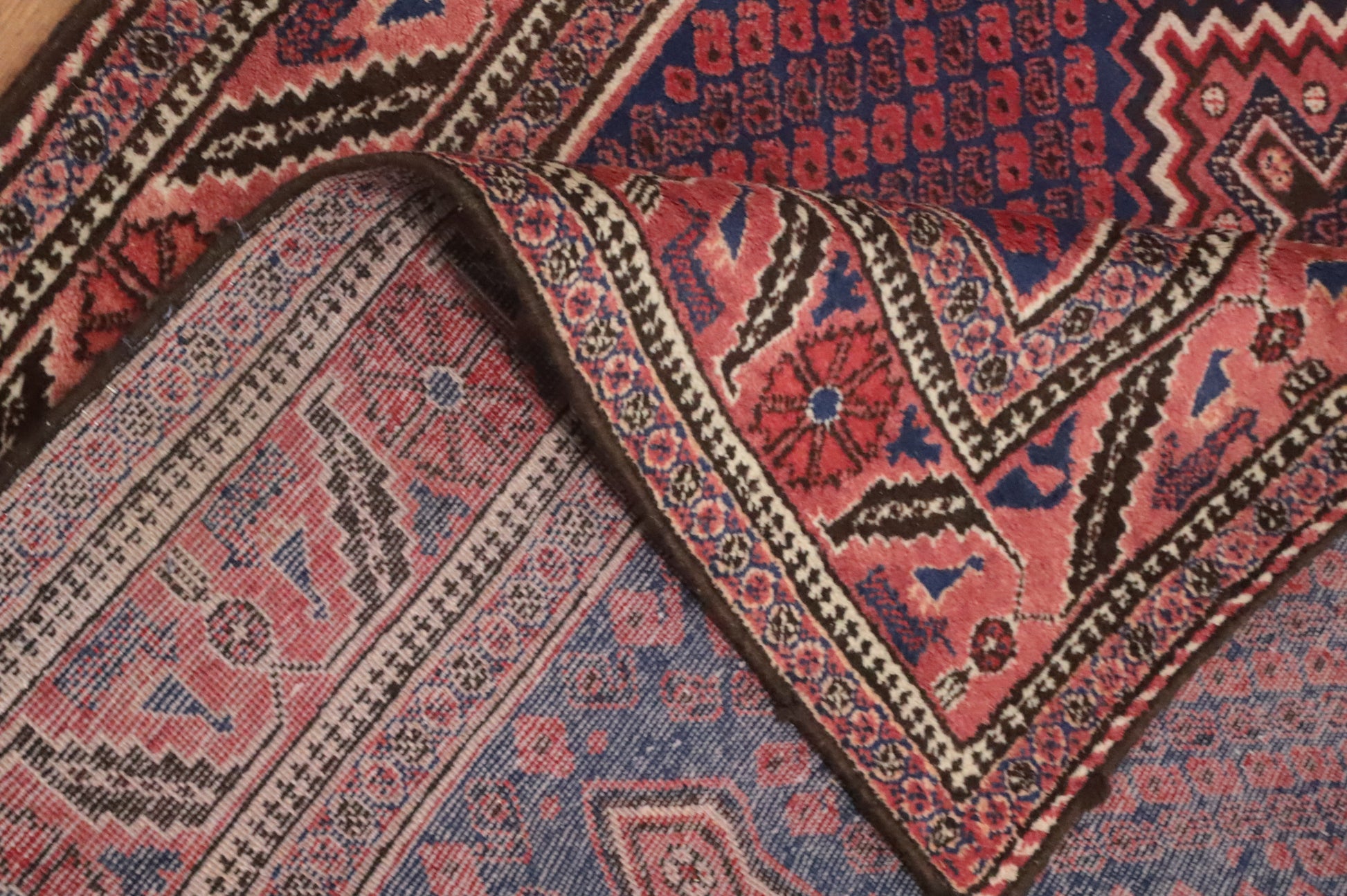 A Beautiful Genuine Persia ( Persia ) Hamedan rug is Hand Knotted by skillful weavers in Persia ( Persia ) with 100% Wool Material. This rug is in Very Good condition. dimensions are 6' 5'' X 3' 9'' in foot and 196 X 114 in centimeter. the primary color is Navy Blue & Blues.