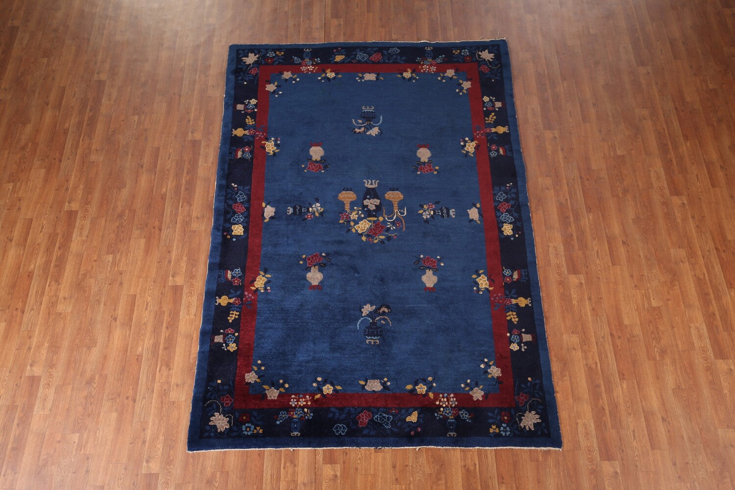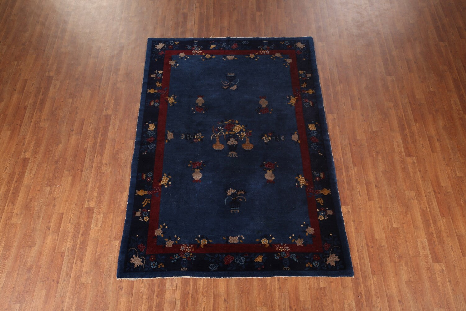 Vegetable Dye Blue Art Deco Chinese Area Rug 6x9