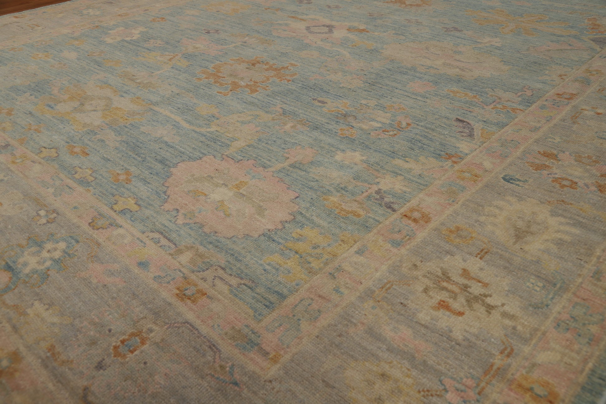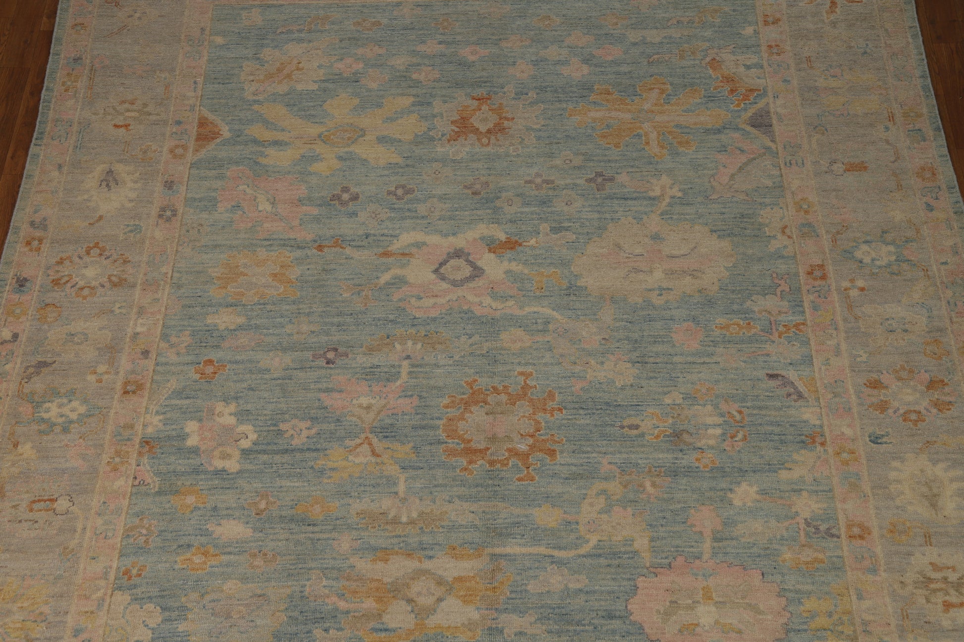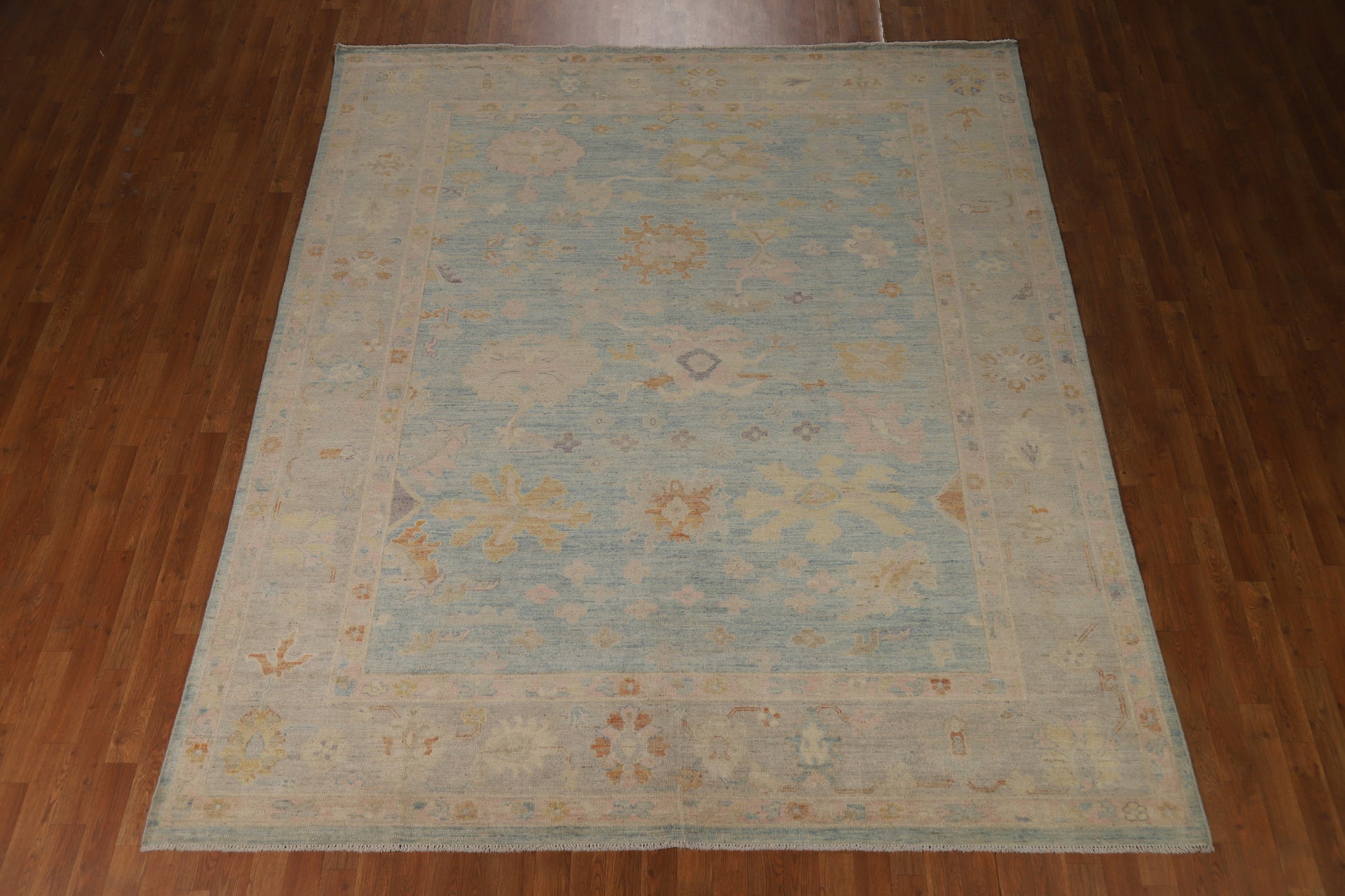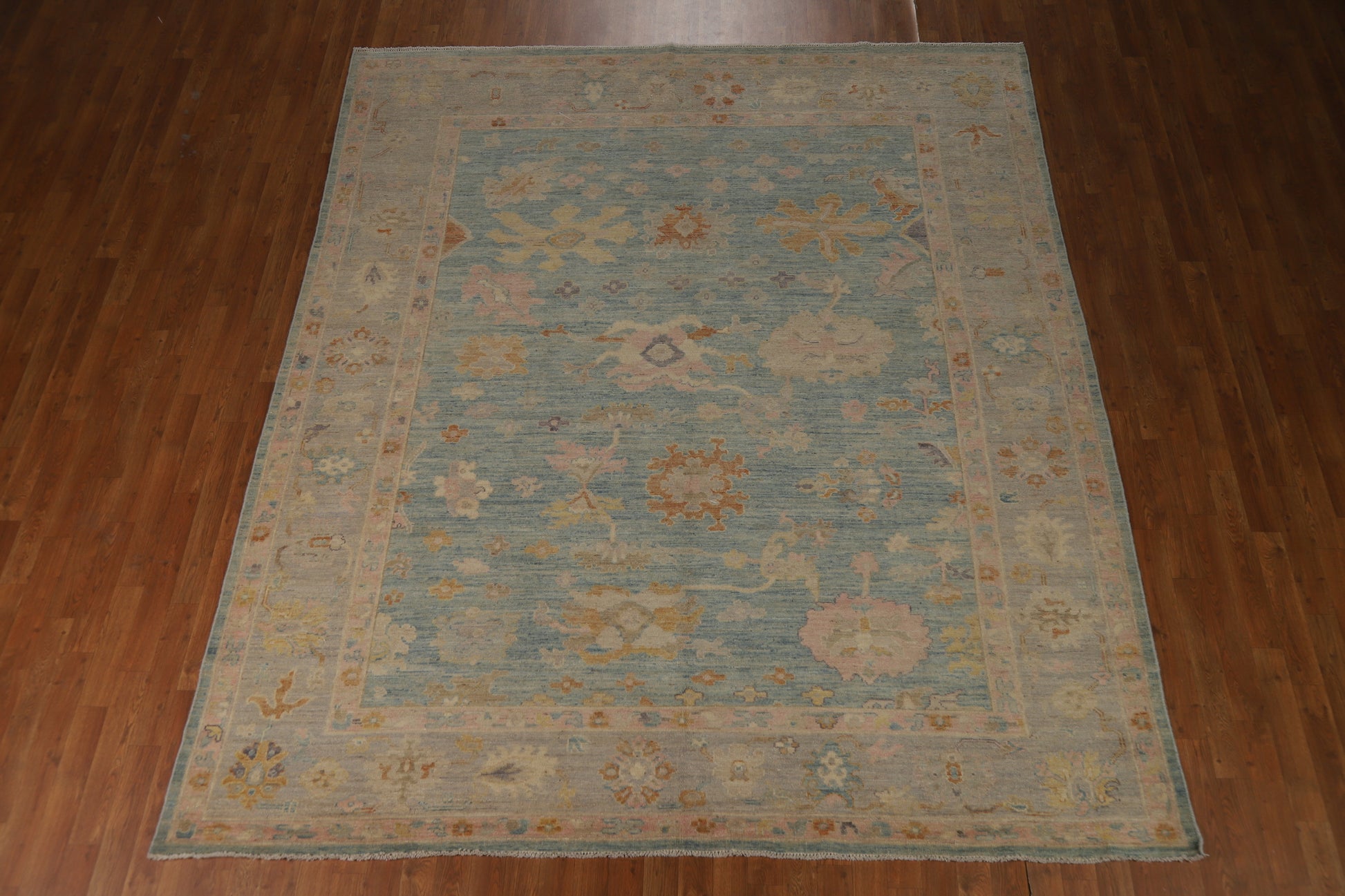 Vegetable Dye Blue Floral Oushak Turkish Area Rug 8x10