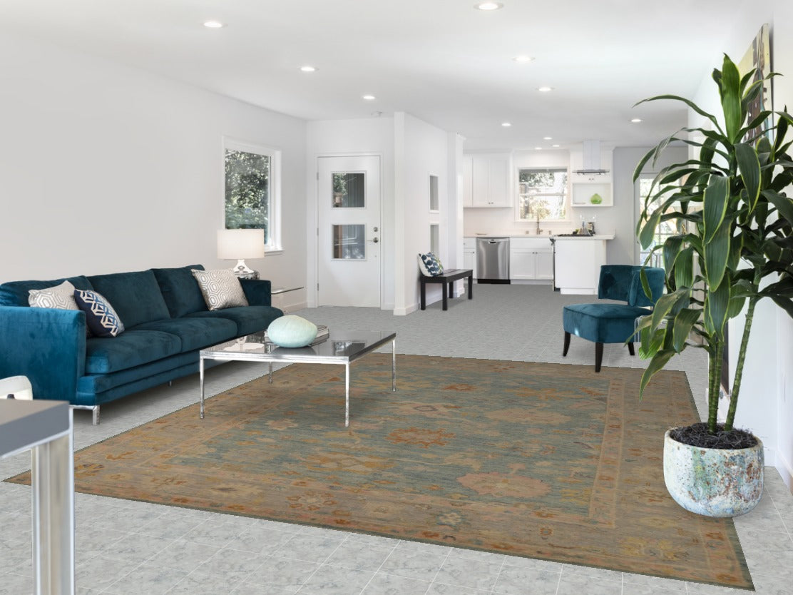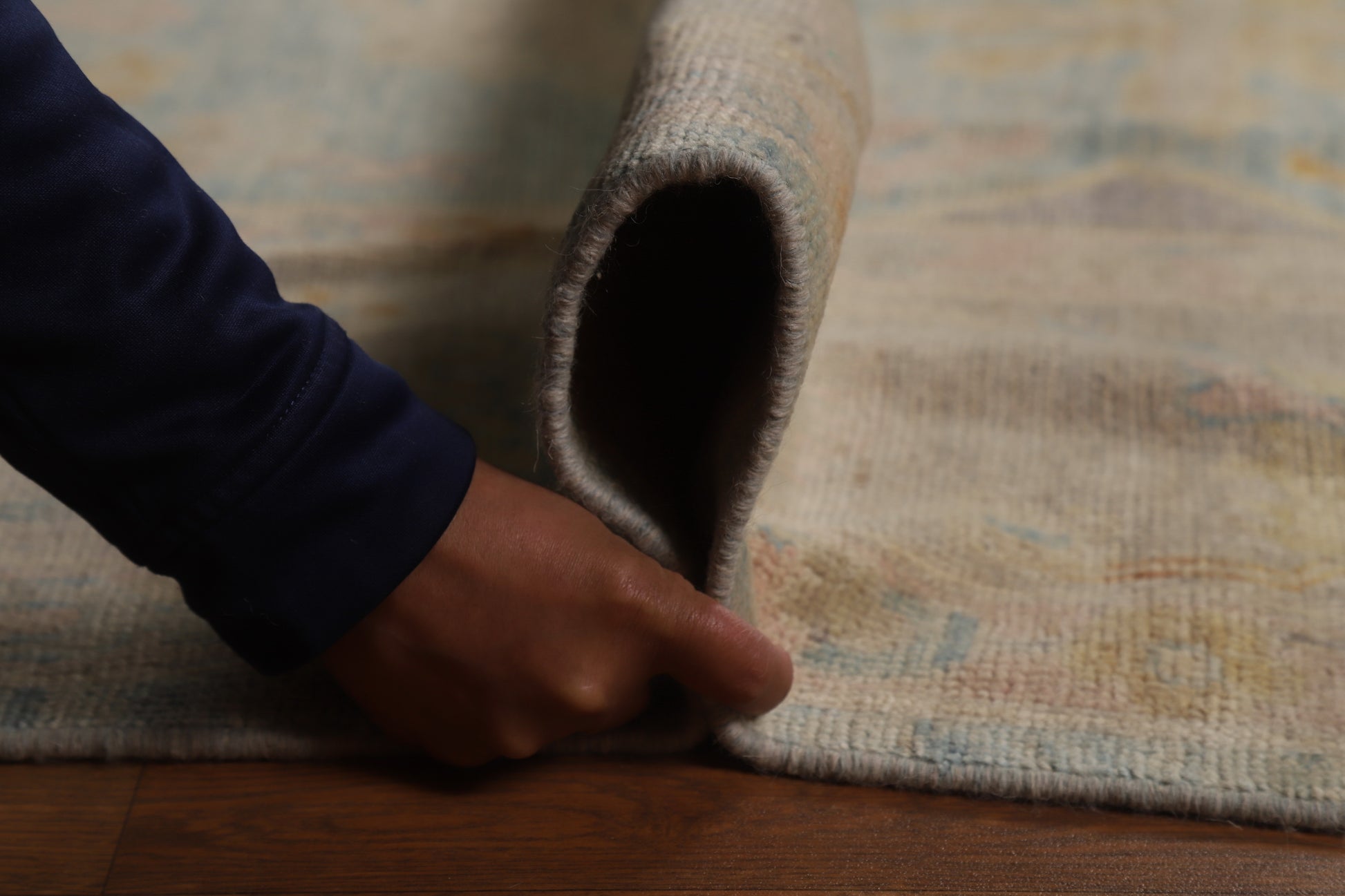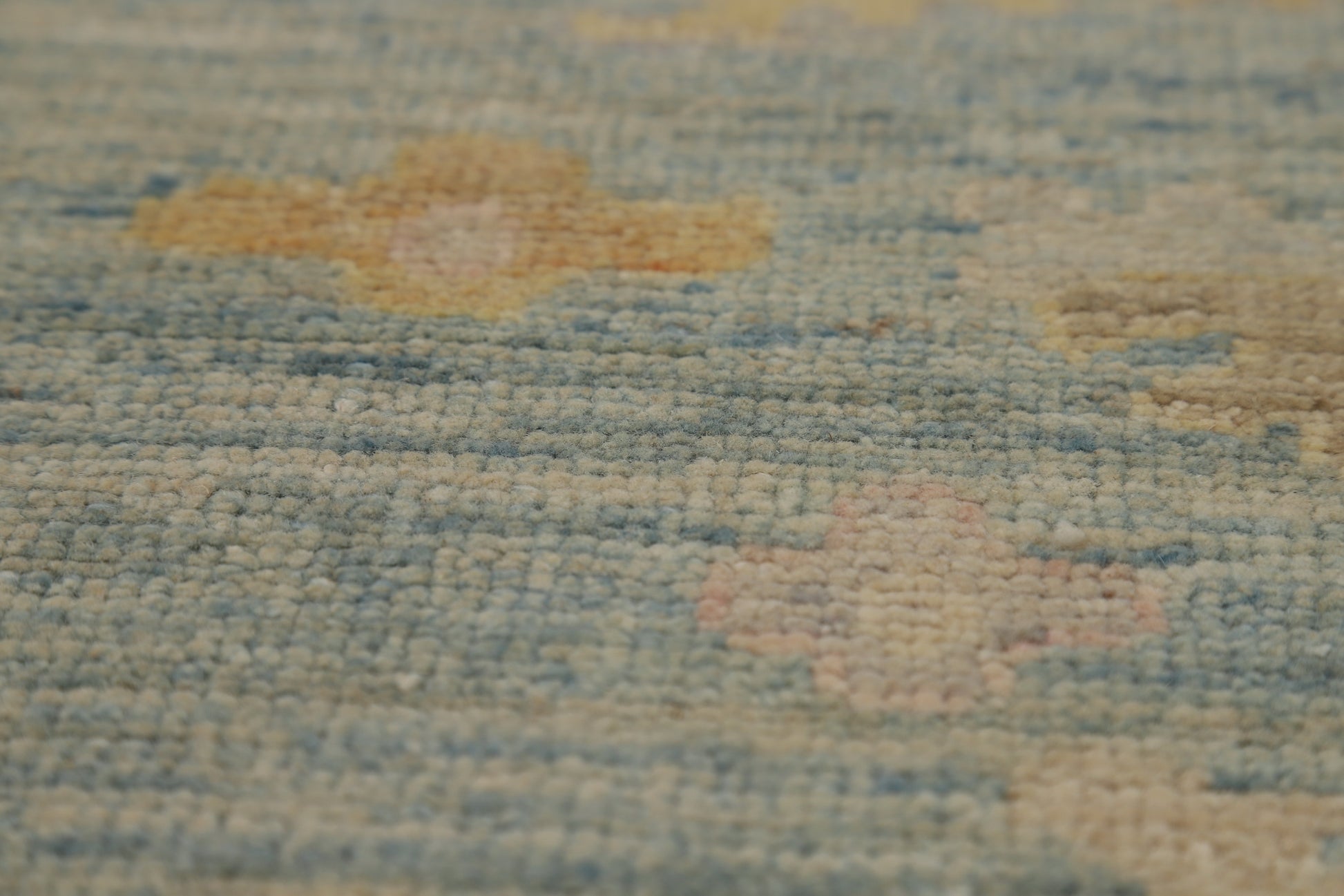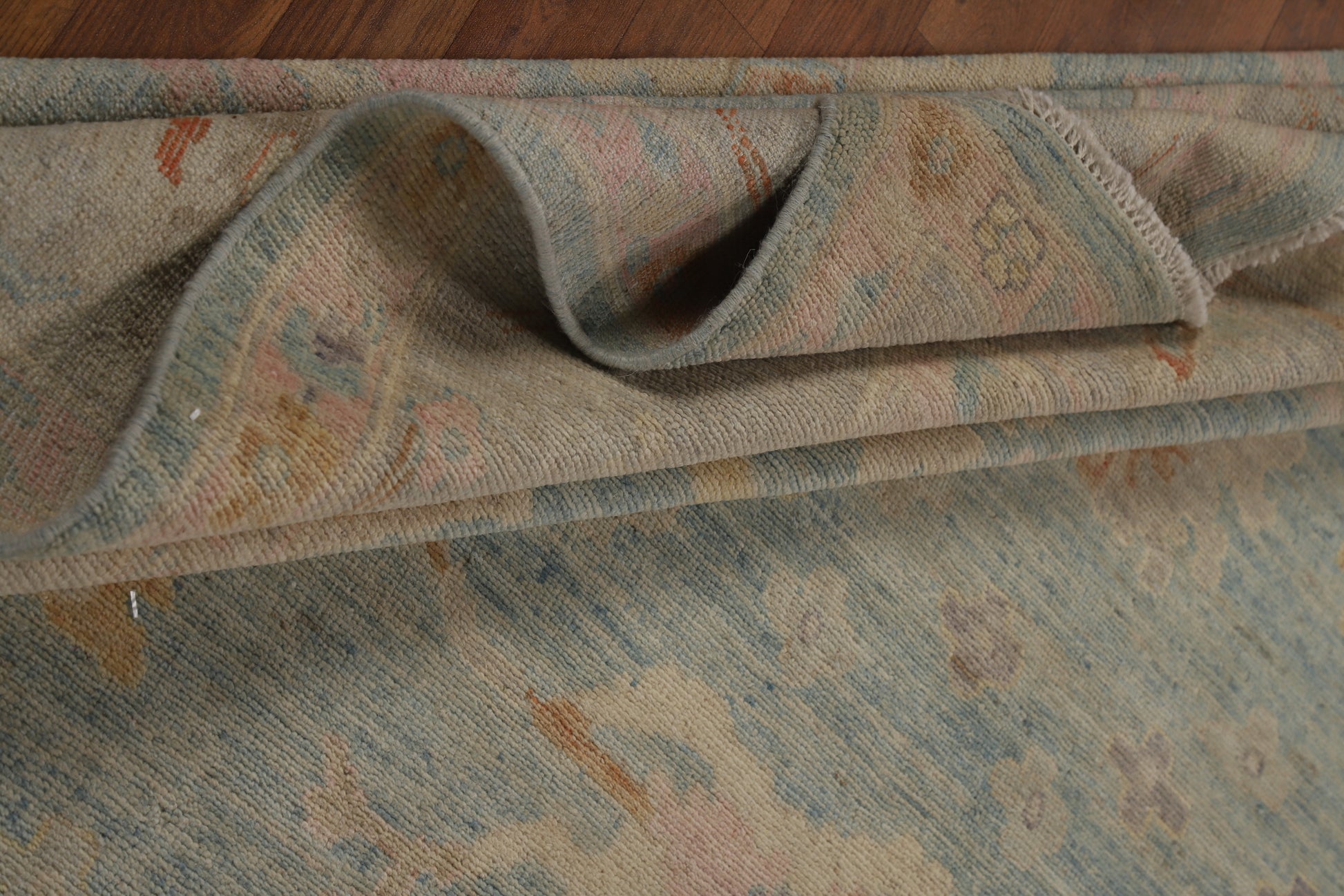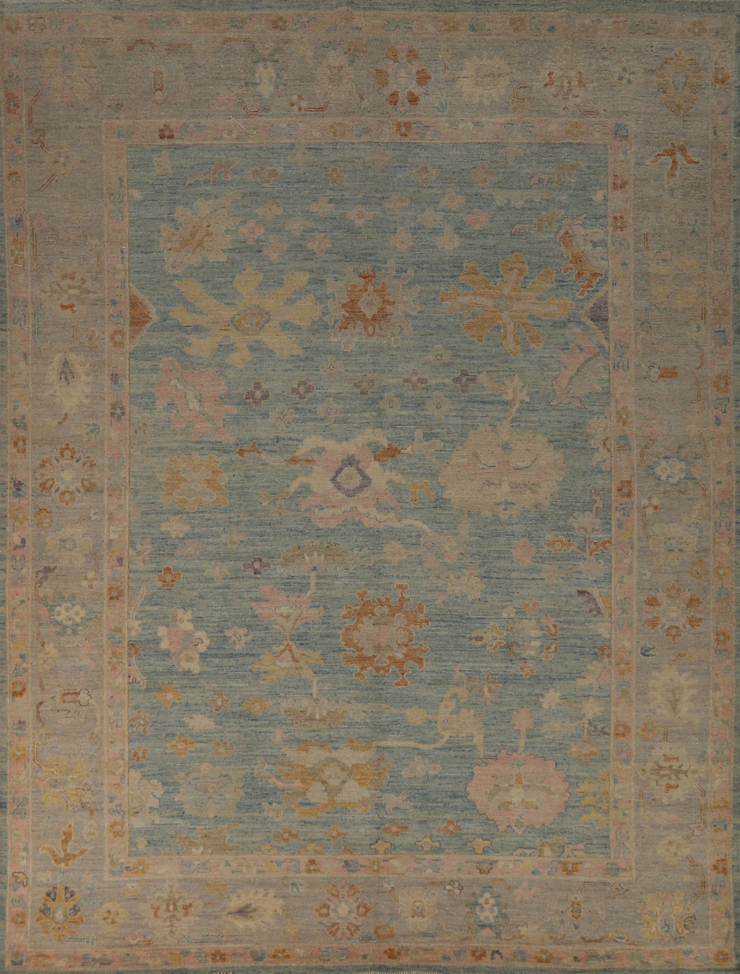 Vegetable Dye Blue Floral Oushak Turkish Area Rug 8x10