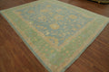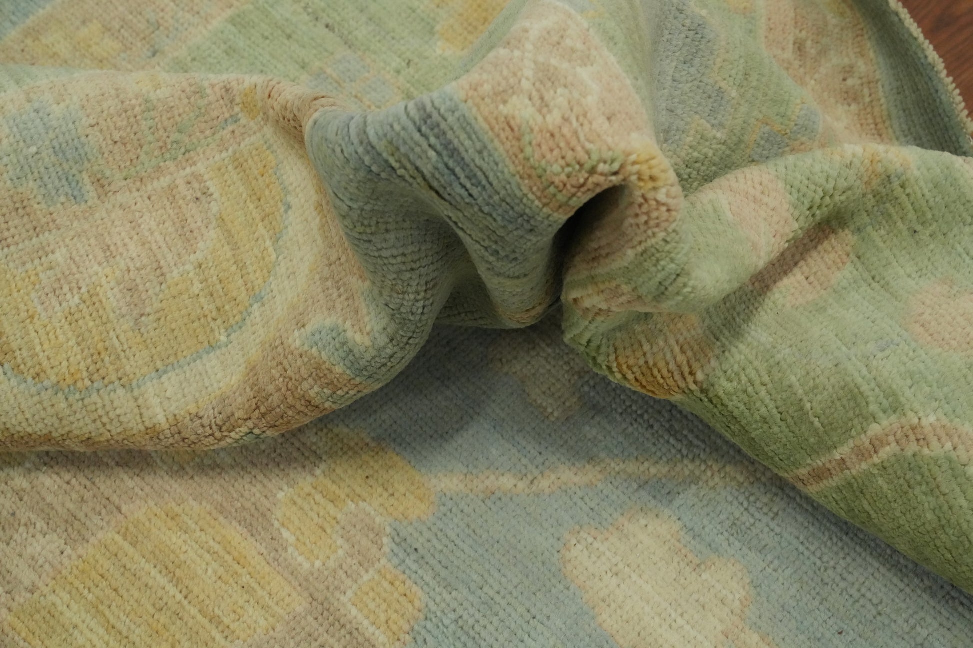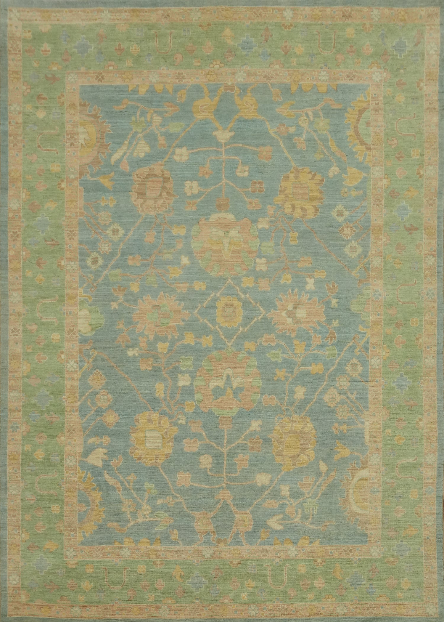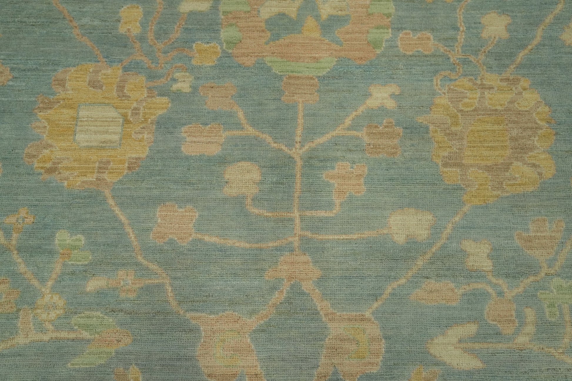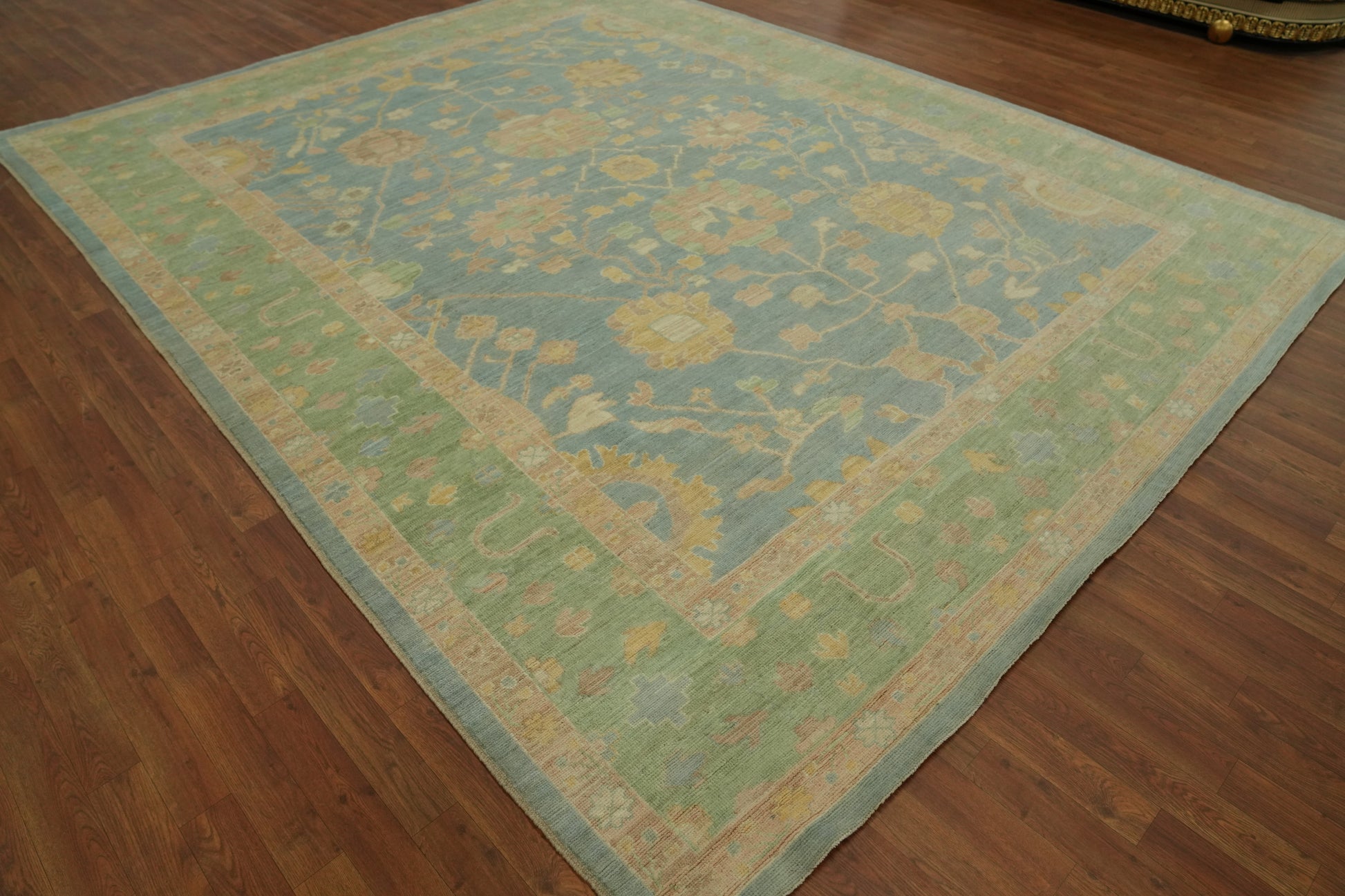 Vegetable Dye Blue Floral Oushak Turkish Area Rug 9x12