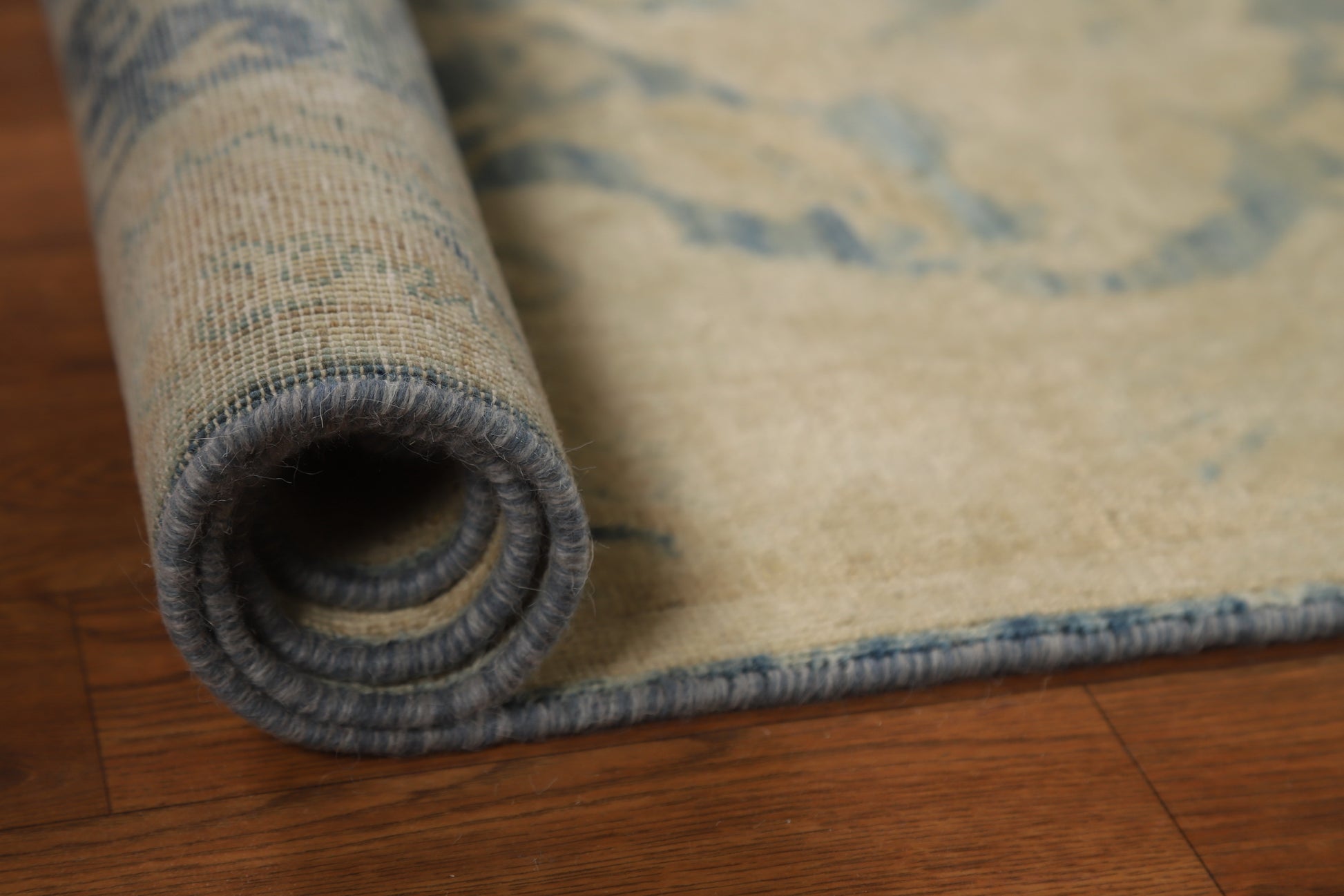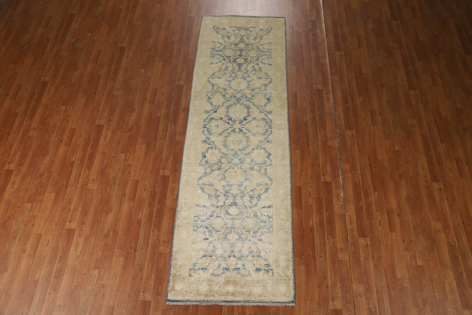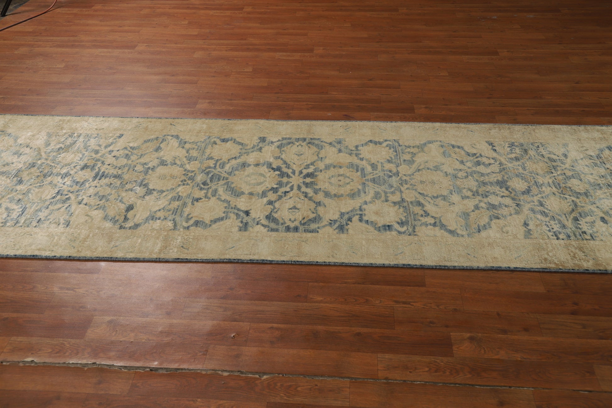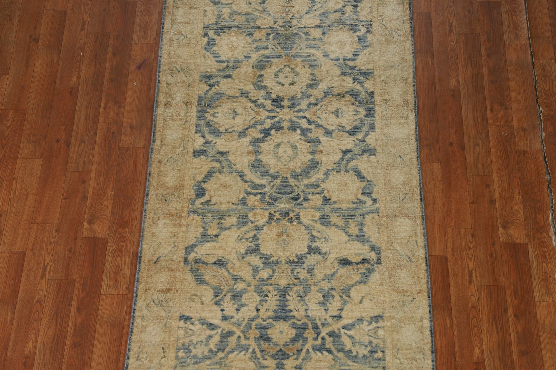Vegetable Dye Blue Floral Oushak Turkish Runner Rug 3x10