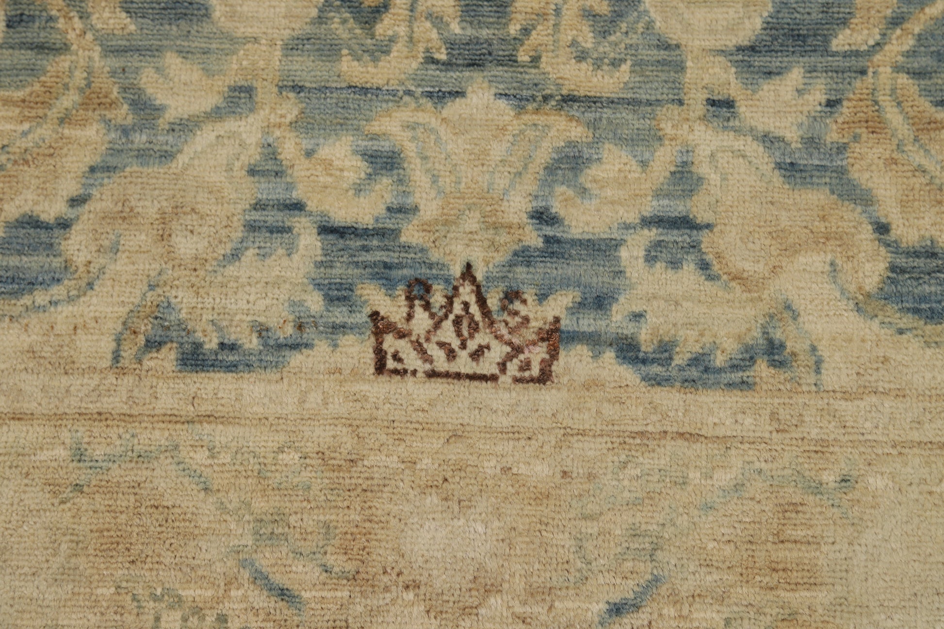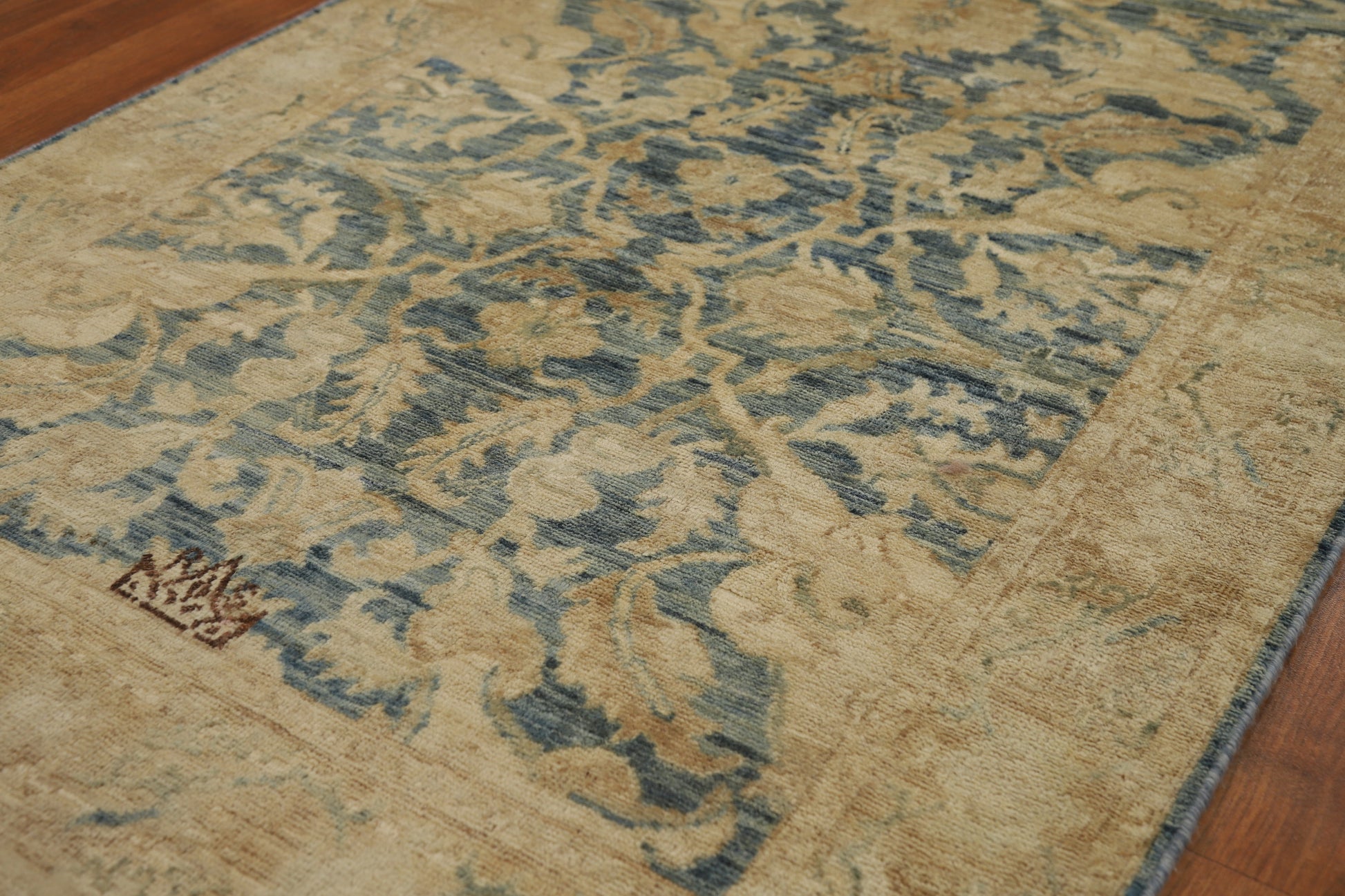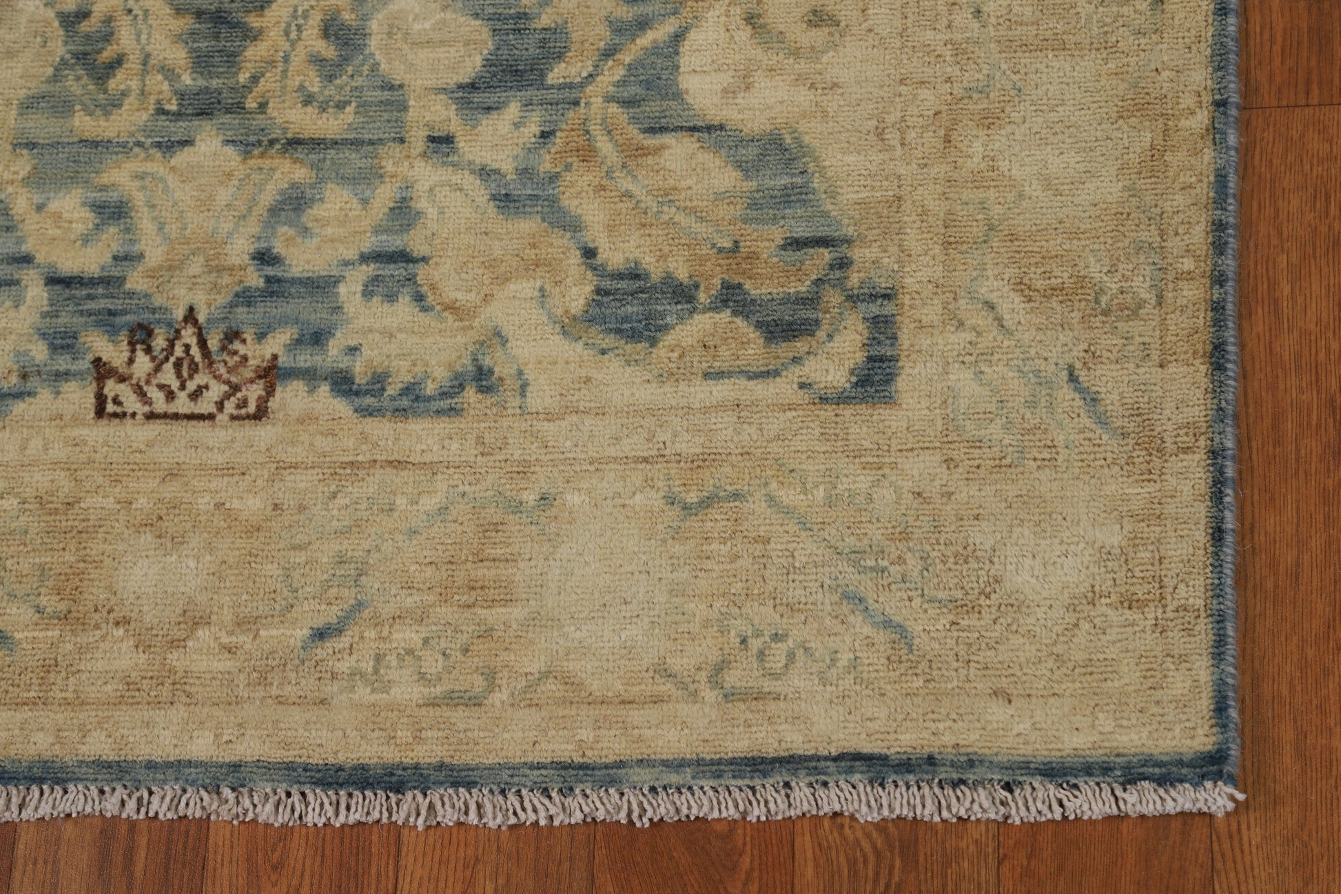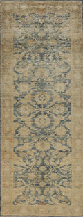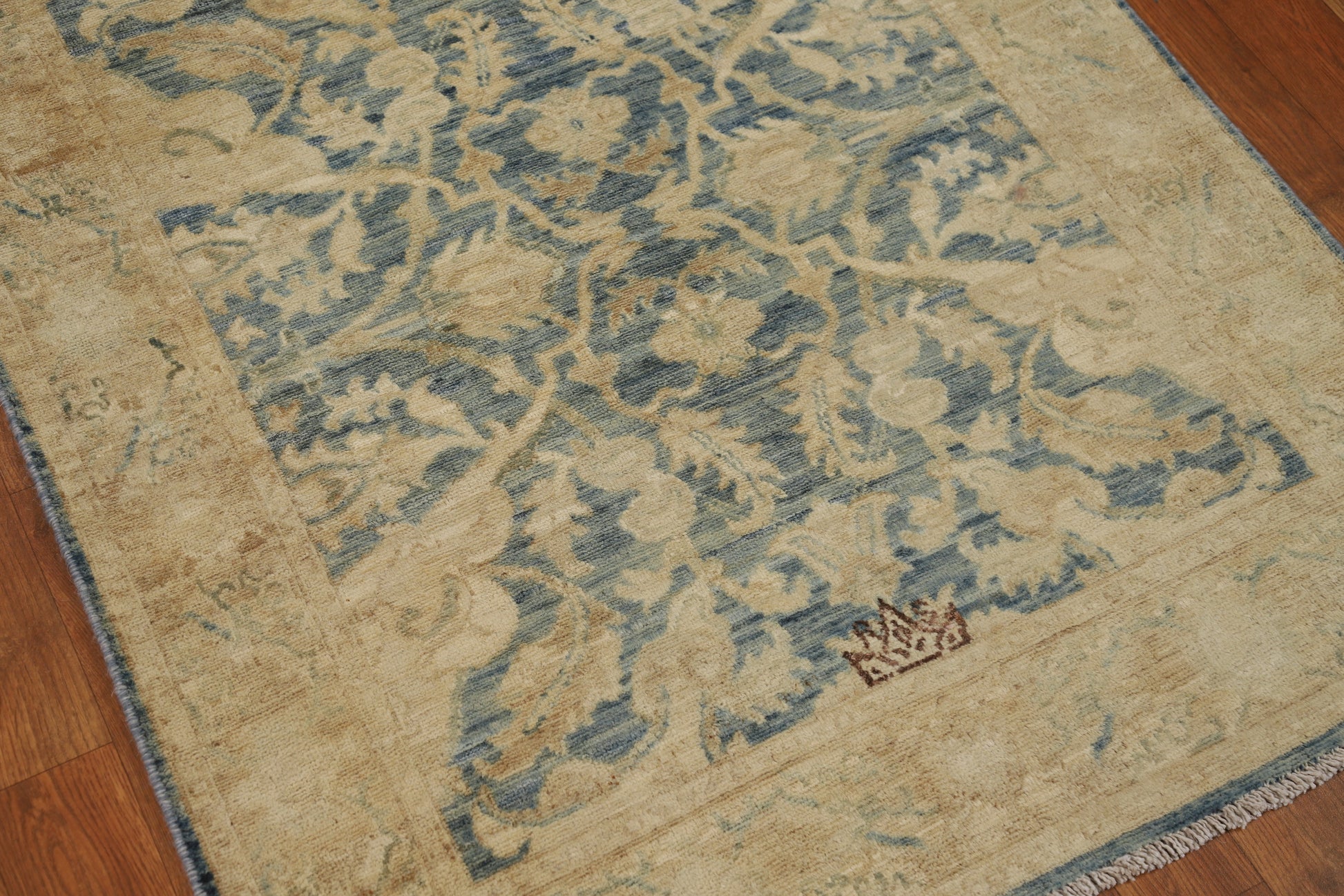 Vegetable Dye Blue Floral Oushak Turkish Runner Rug 3x10