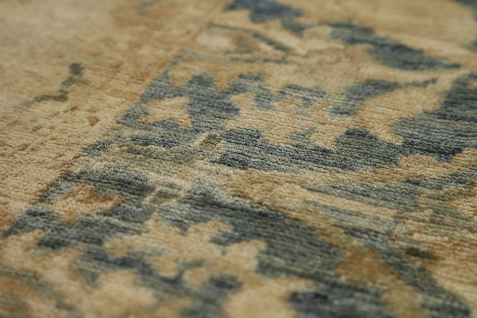 A Beautiful Genuine Turkey Oushak rug is Hand Knotted by skillful weavers in Turkey with 100% Wool Material. This rug is in New, First Quality condition. dimensions are 10' 0'' X 3' 0'' in foot and 305 X 91 in centimeter. the primary color is Navy Blue & Blues.