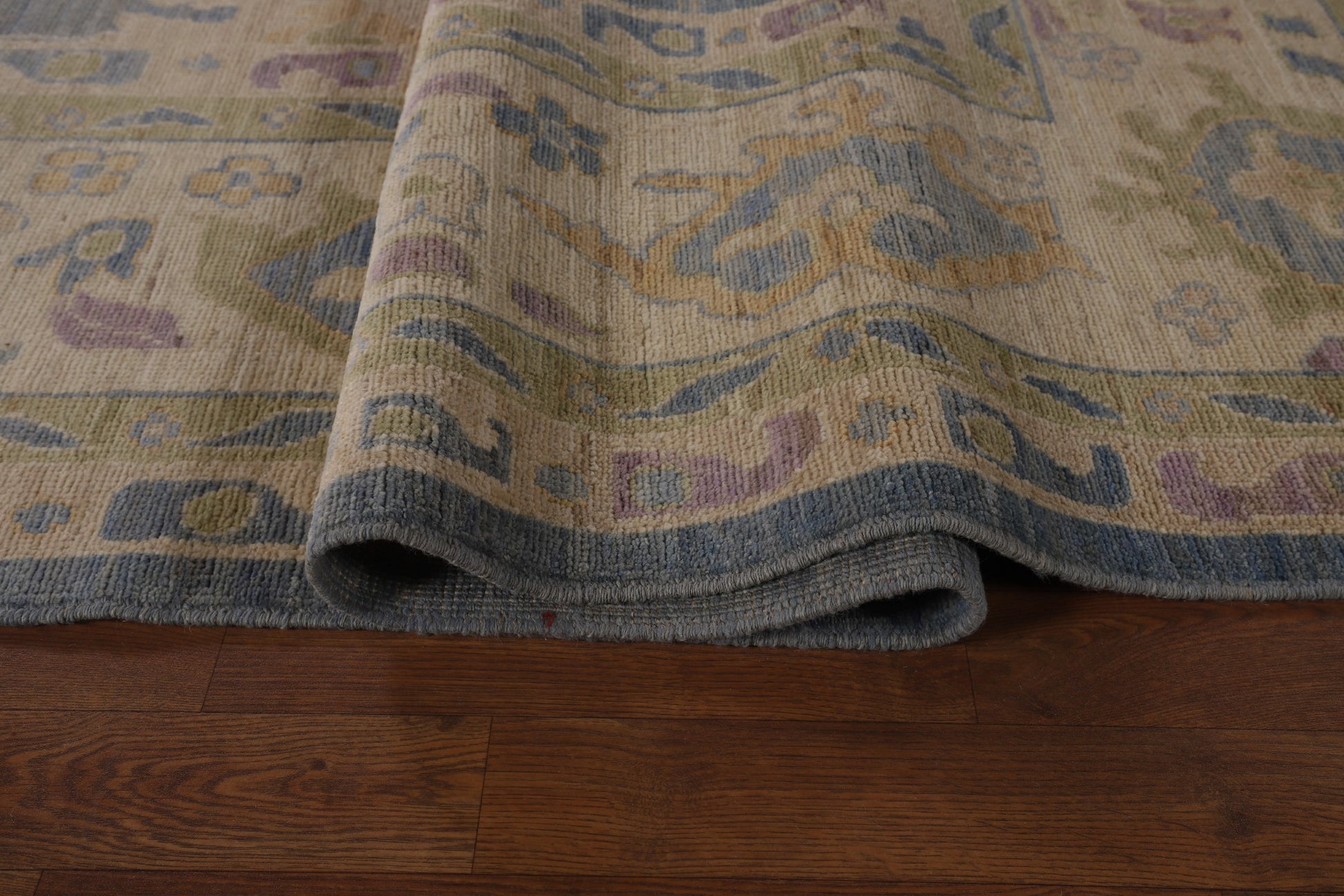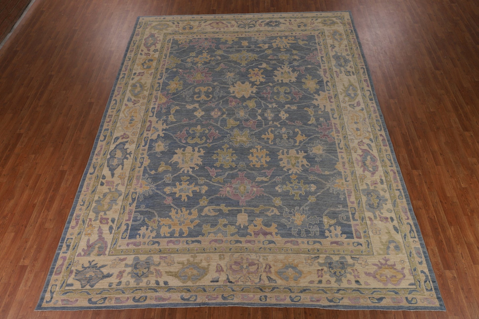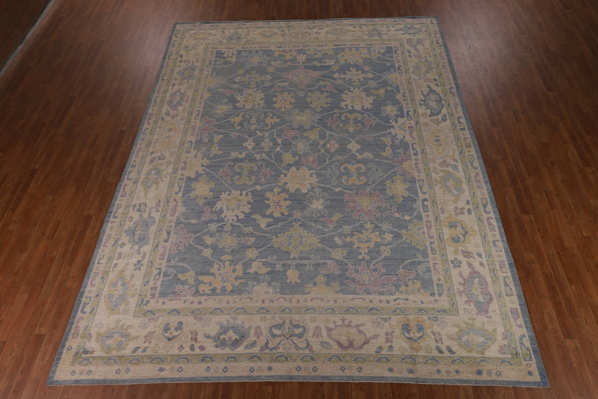 Vegetable Dye Blue Oushak Oriental Large Rug 10x14