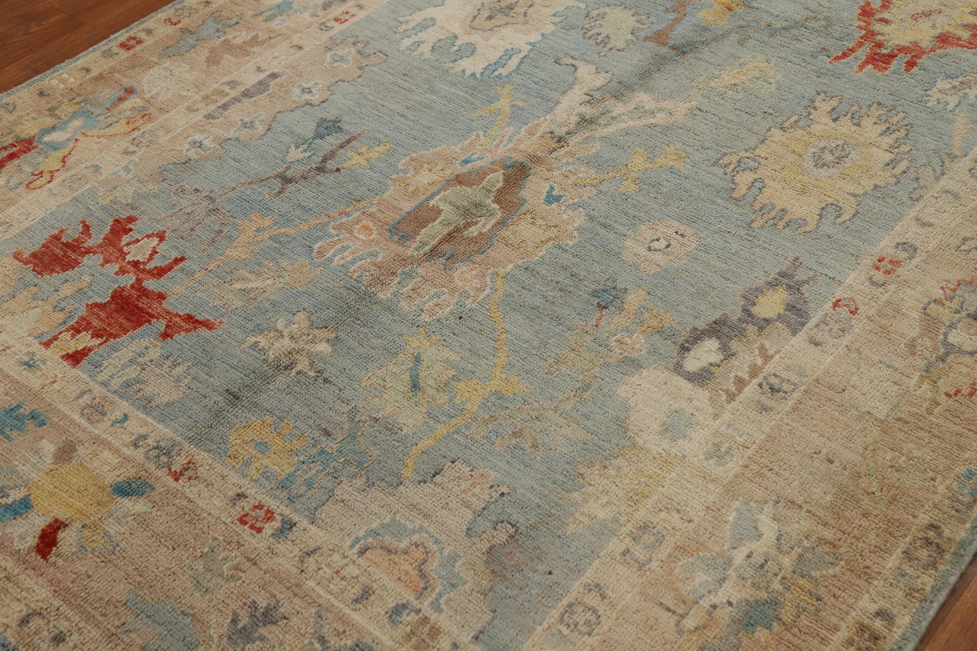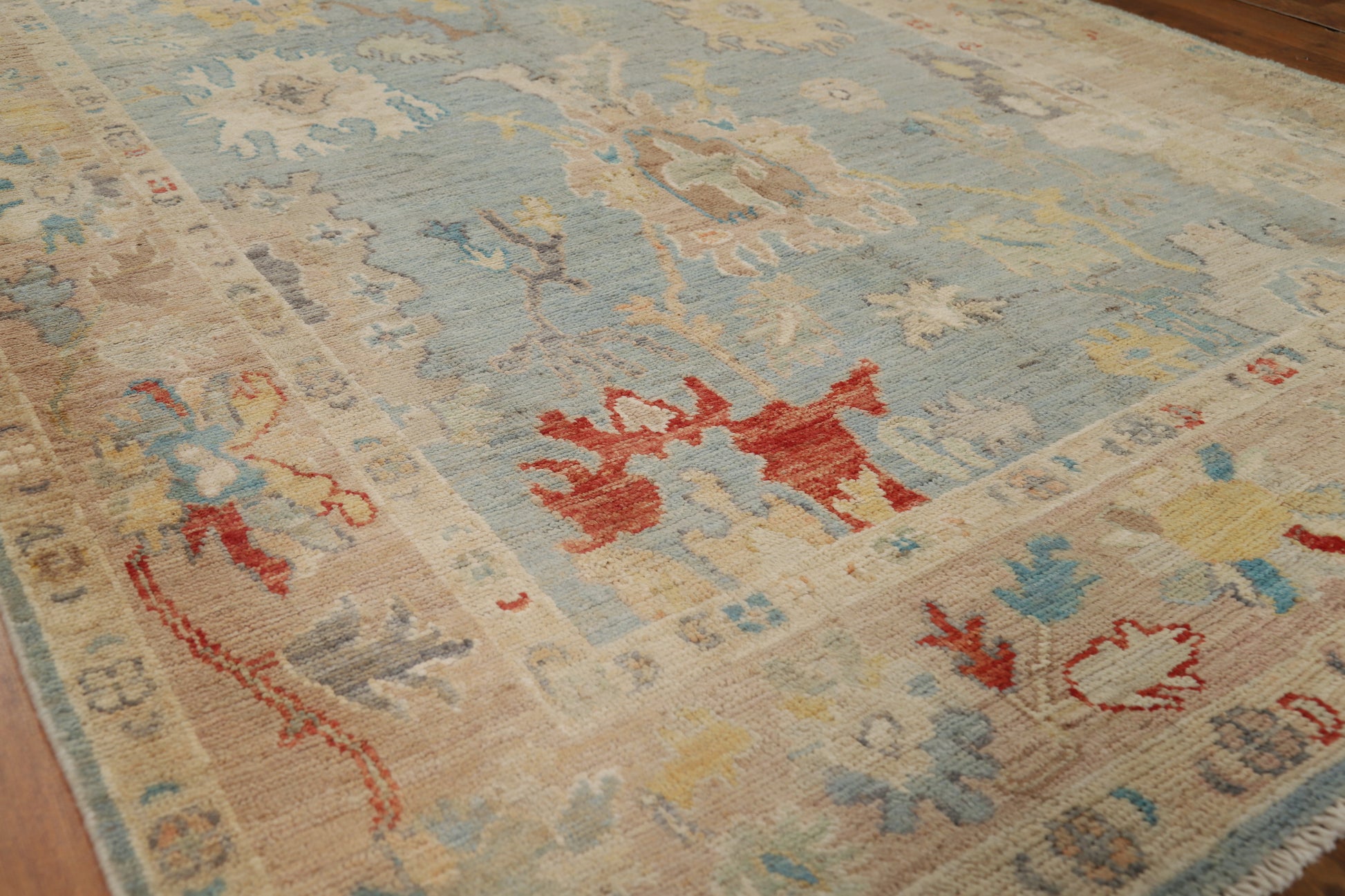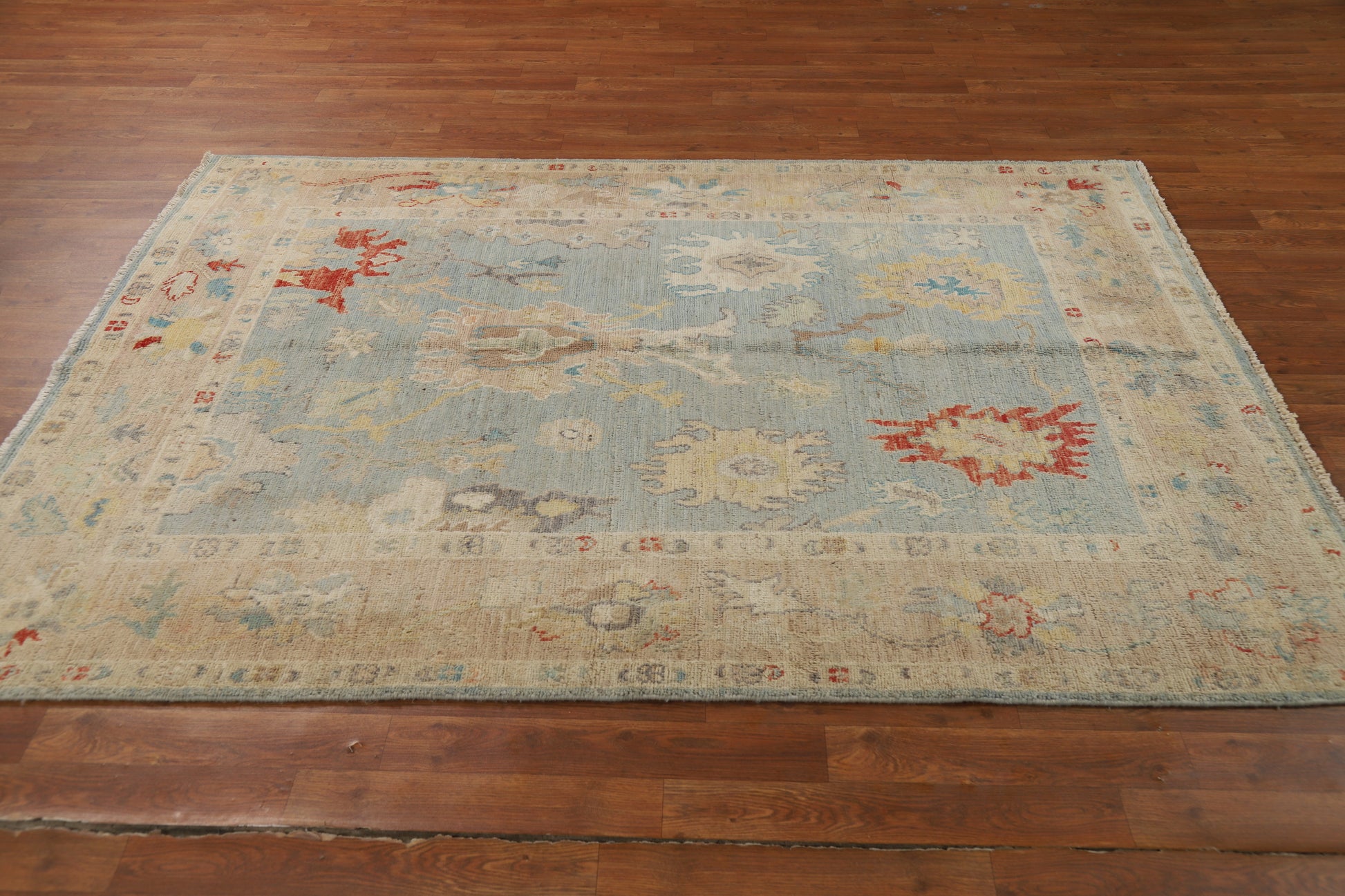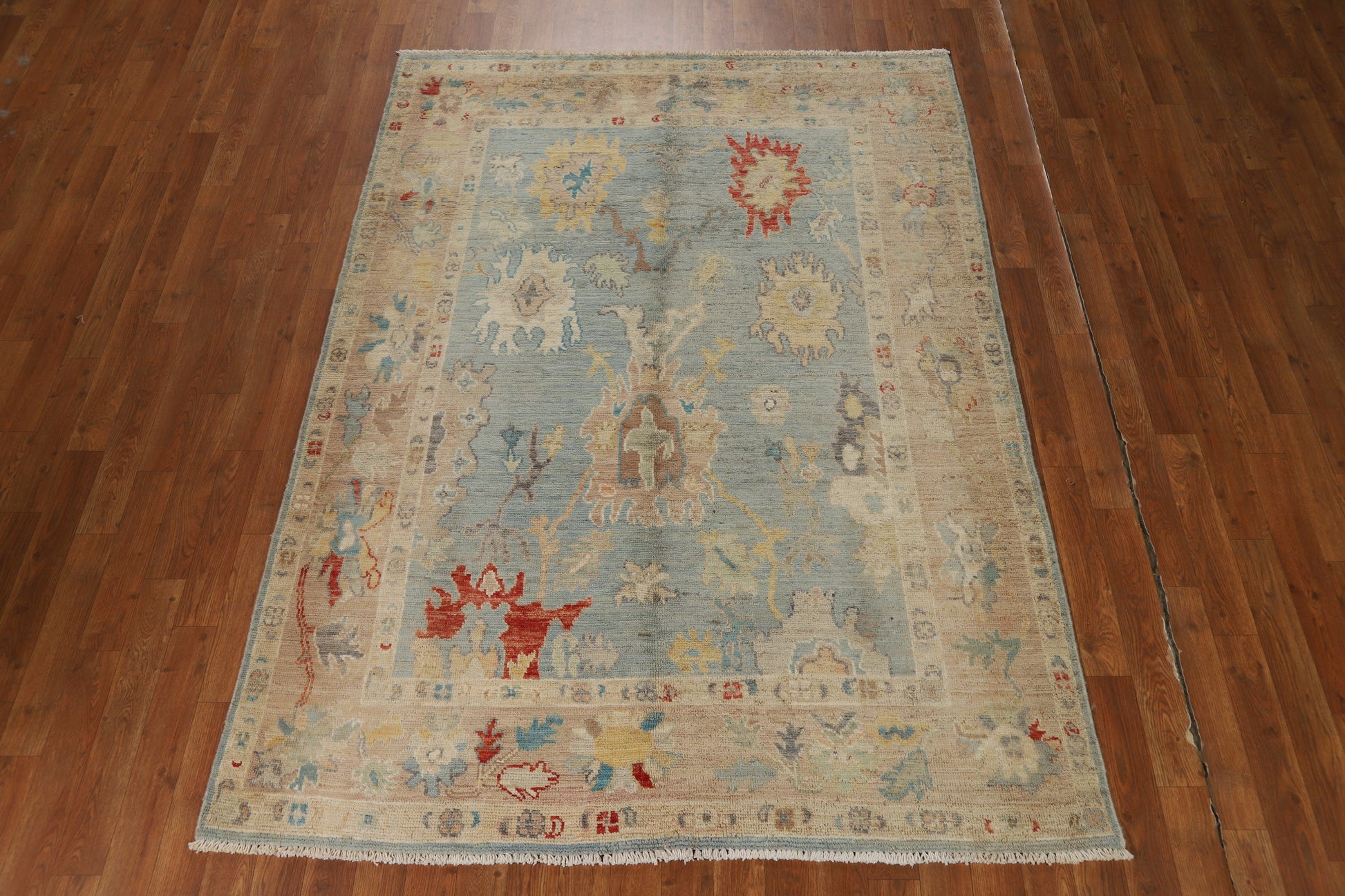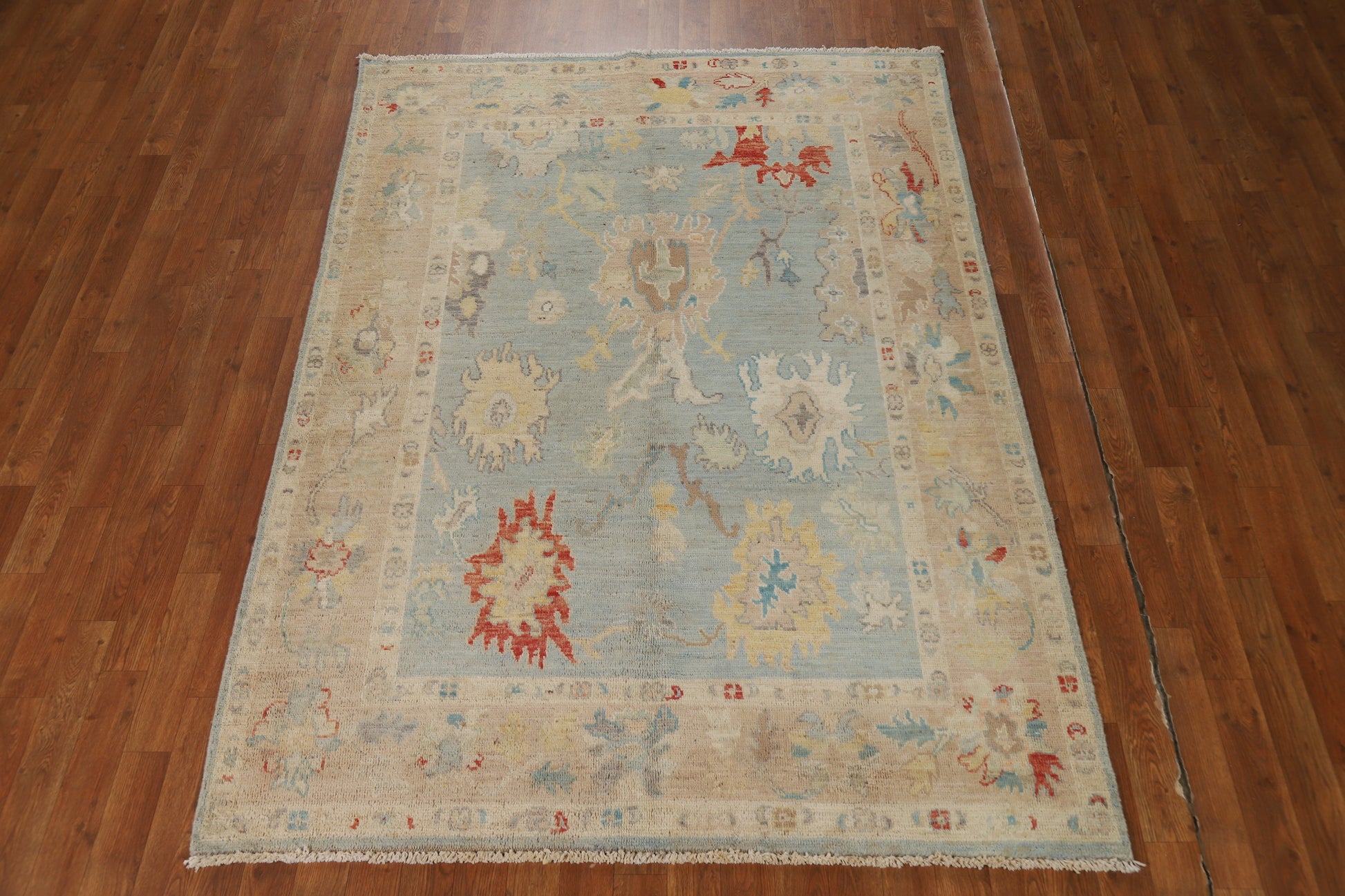Vegetable Dye Blue Oushak Oriental Rug 5x7