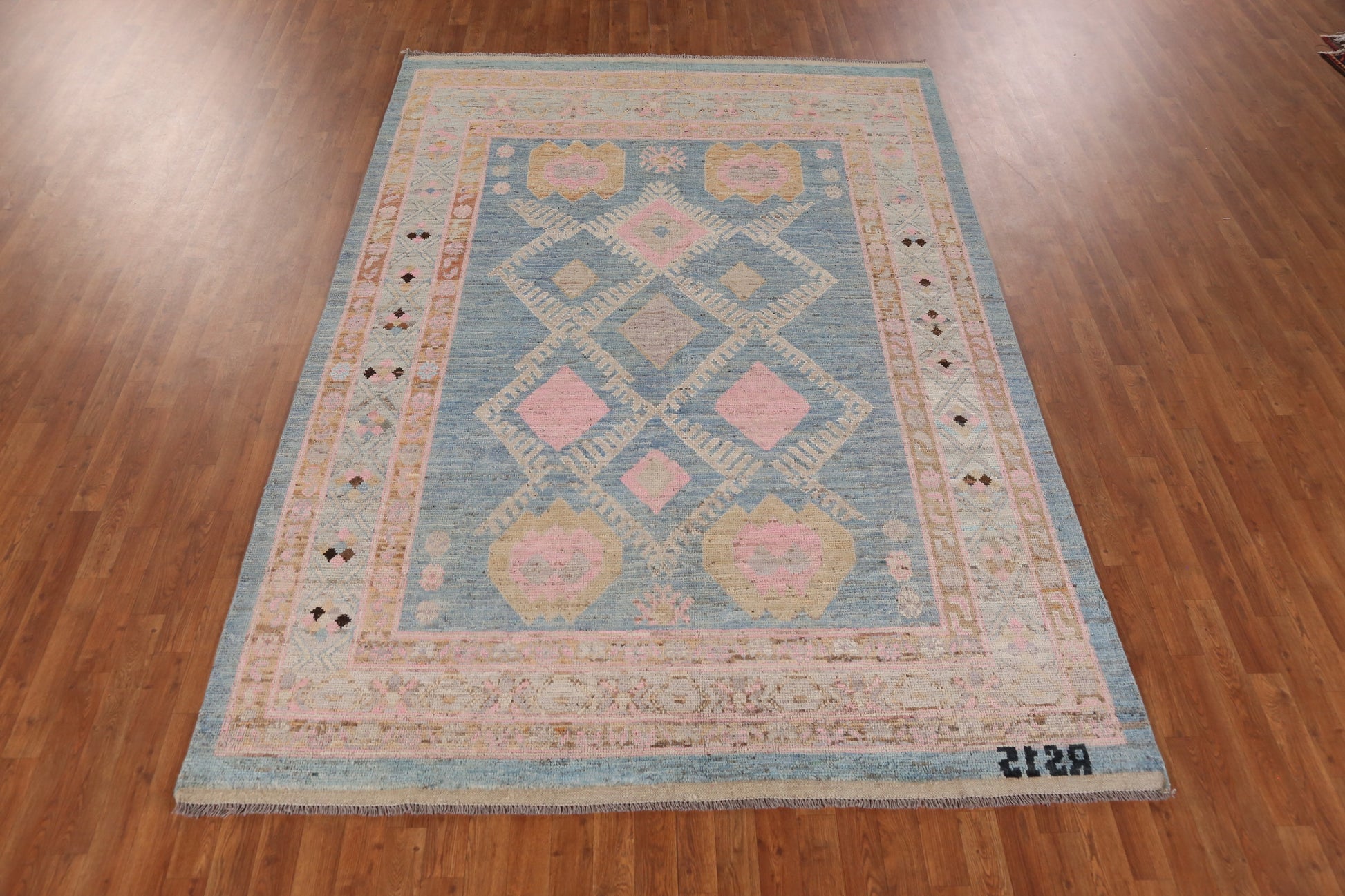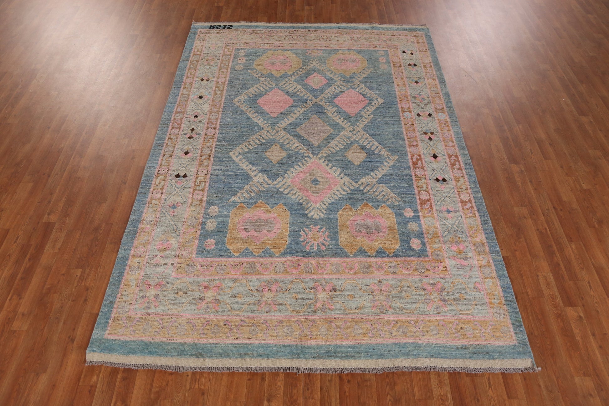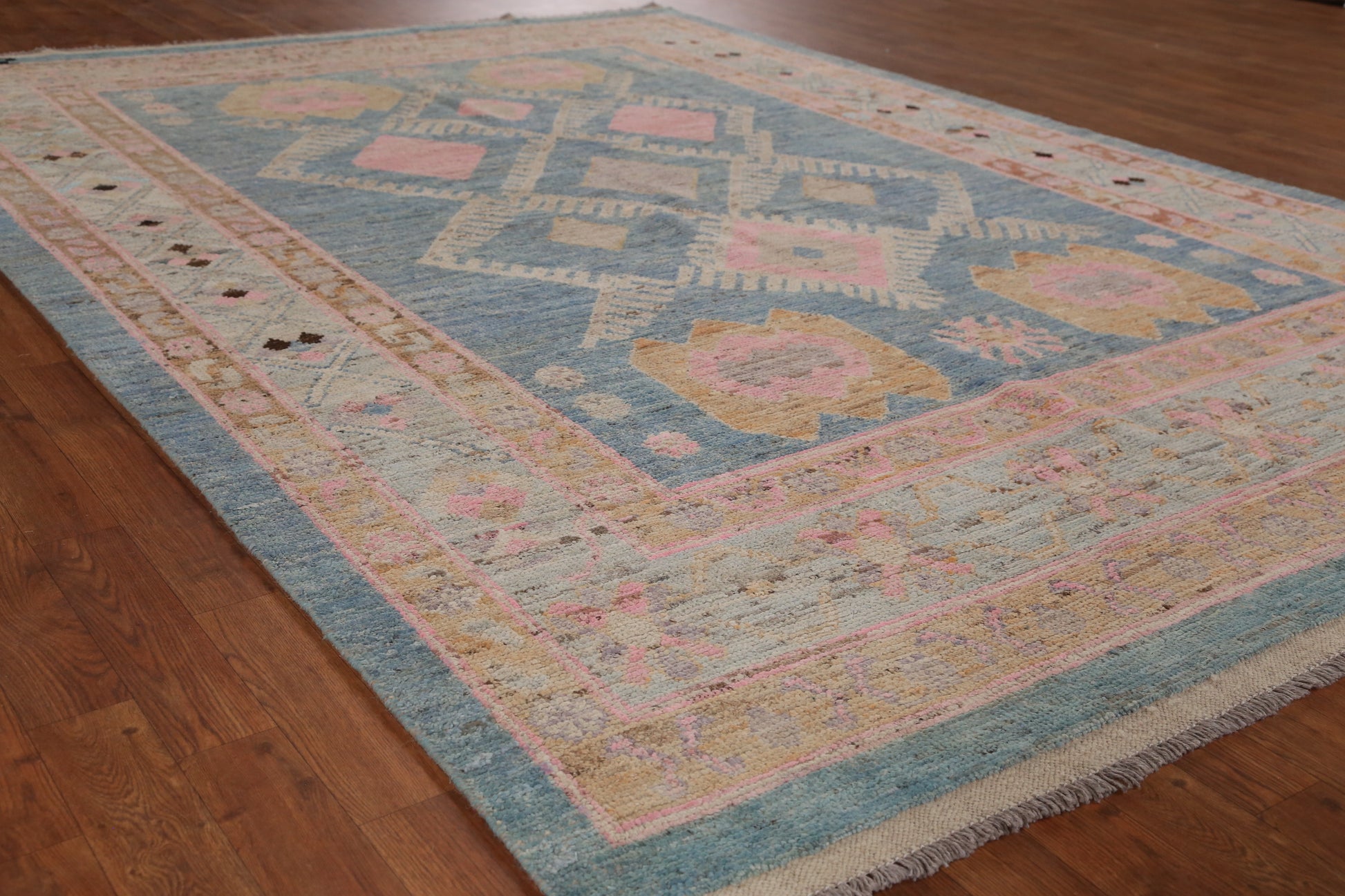 Vegetable Dye Blue Oushak Turkish Area Rug 7x10
