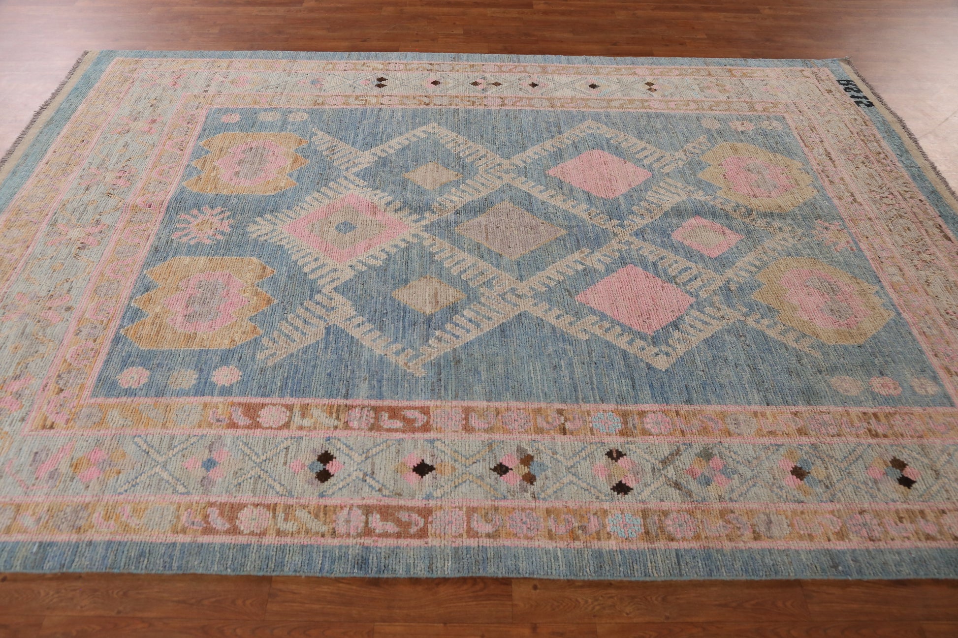 A Beautiful Genuine Turkey Oushak rug is Hand Knotted by skillful weavers in Turkey with 100% Wool Material. This rug is in New, First Quality condition. dimensions are 9' 7'' X 6' 9'' in foot and 292 X 206 in centimeter. the primary color is Navy Blue & Blues.