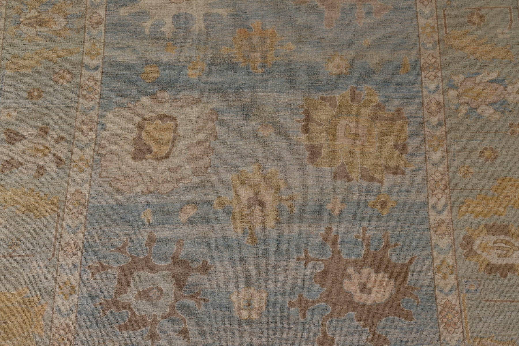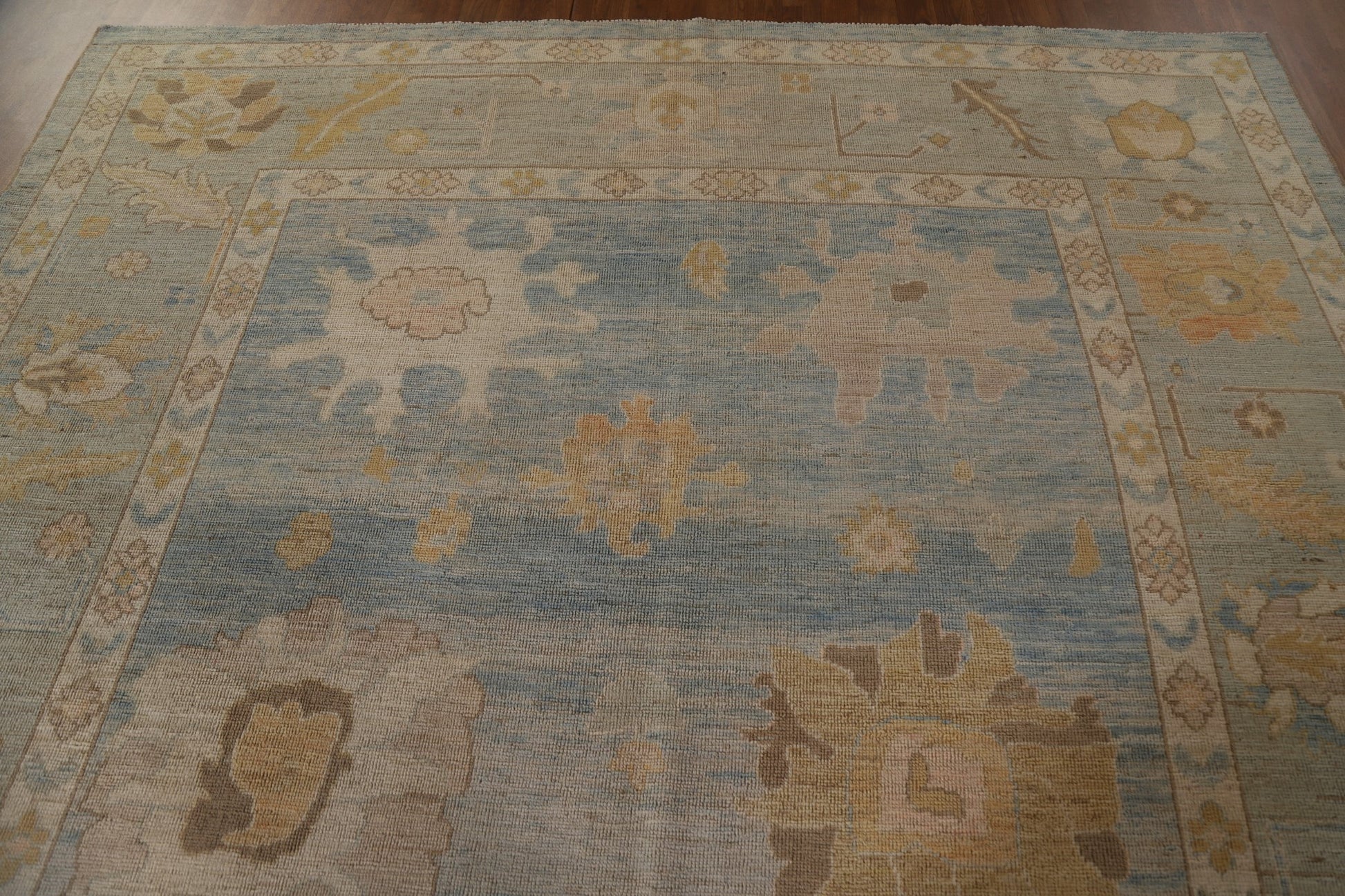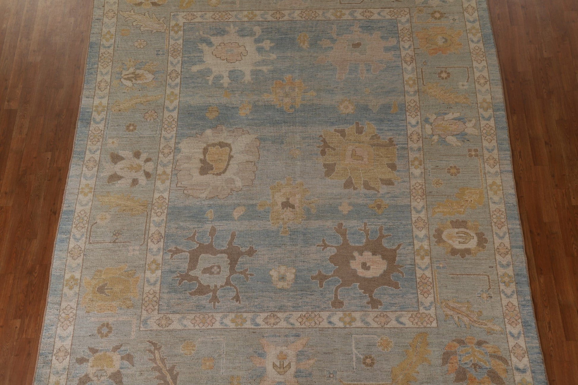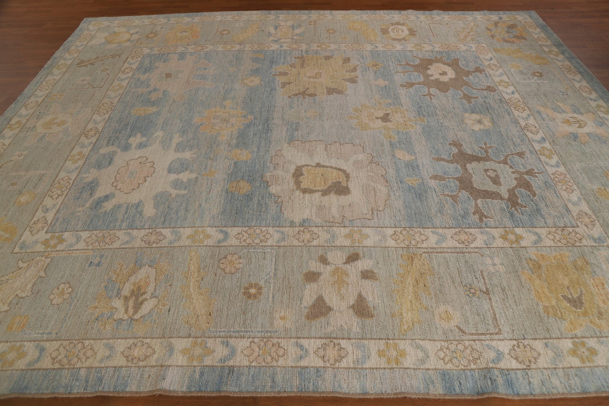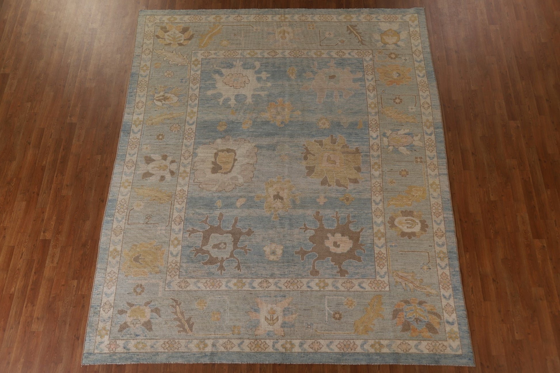 A Beautiful Genuine Turkey Oushak (100% Vegetable Dye) rug is Hand Knotted by skillful weavers in Turkey with 100% Wool Material. This rug is in Excellent condition. dimensions are 10' 0'' X 8' 5'' in foot and 305 X 257 in centimeter. the primary color is Navy Blue & Blues.