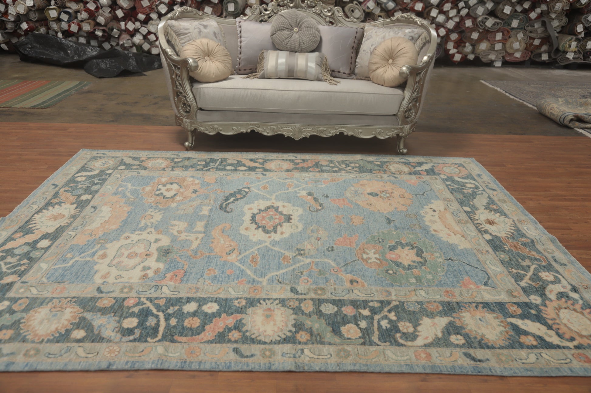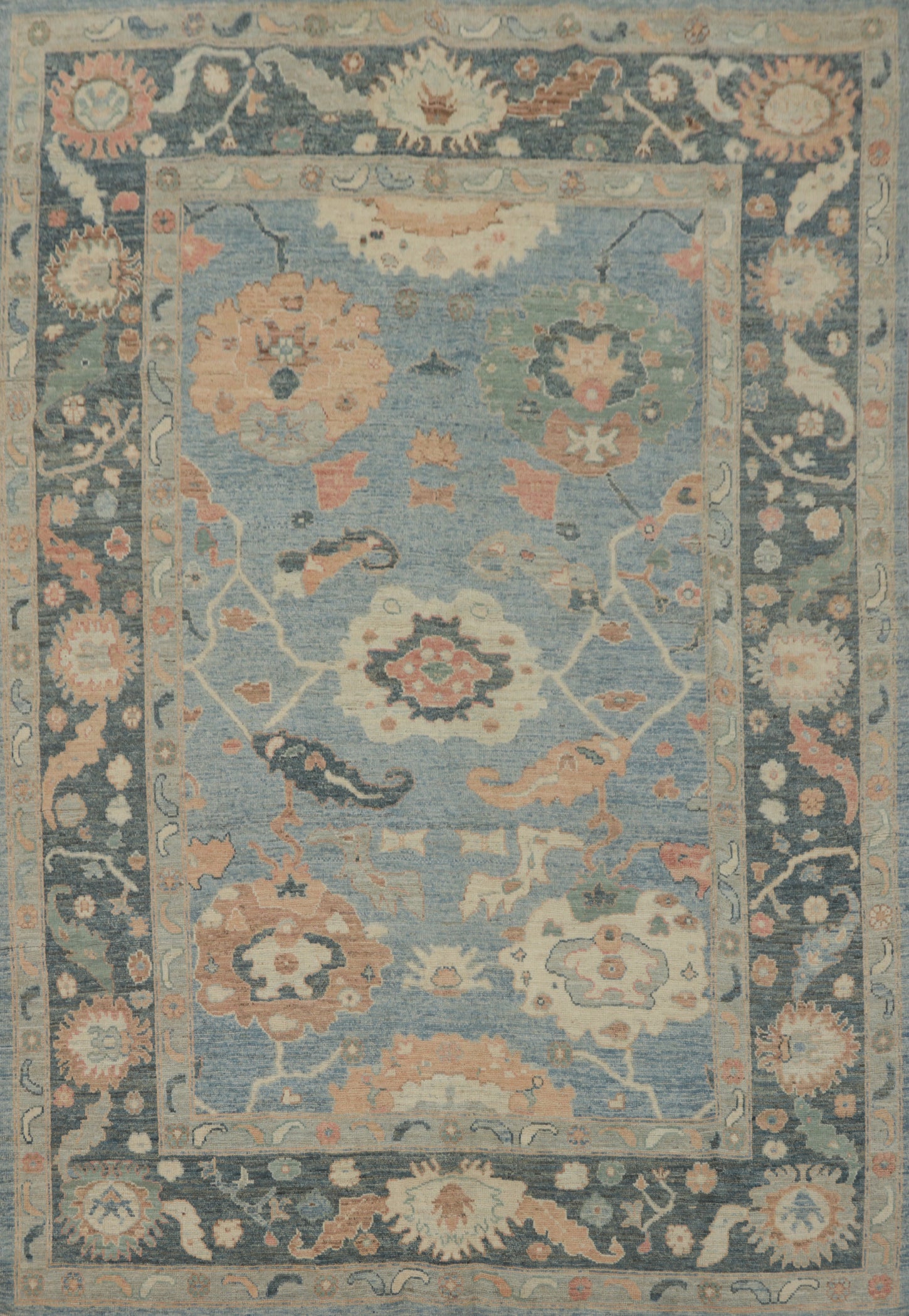 Vegetable Dye Blue Oushak Turkish Area Rug 8x10