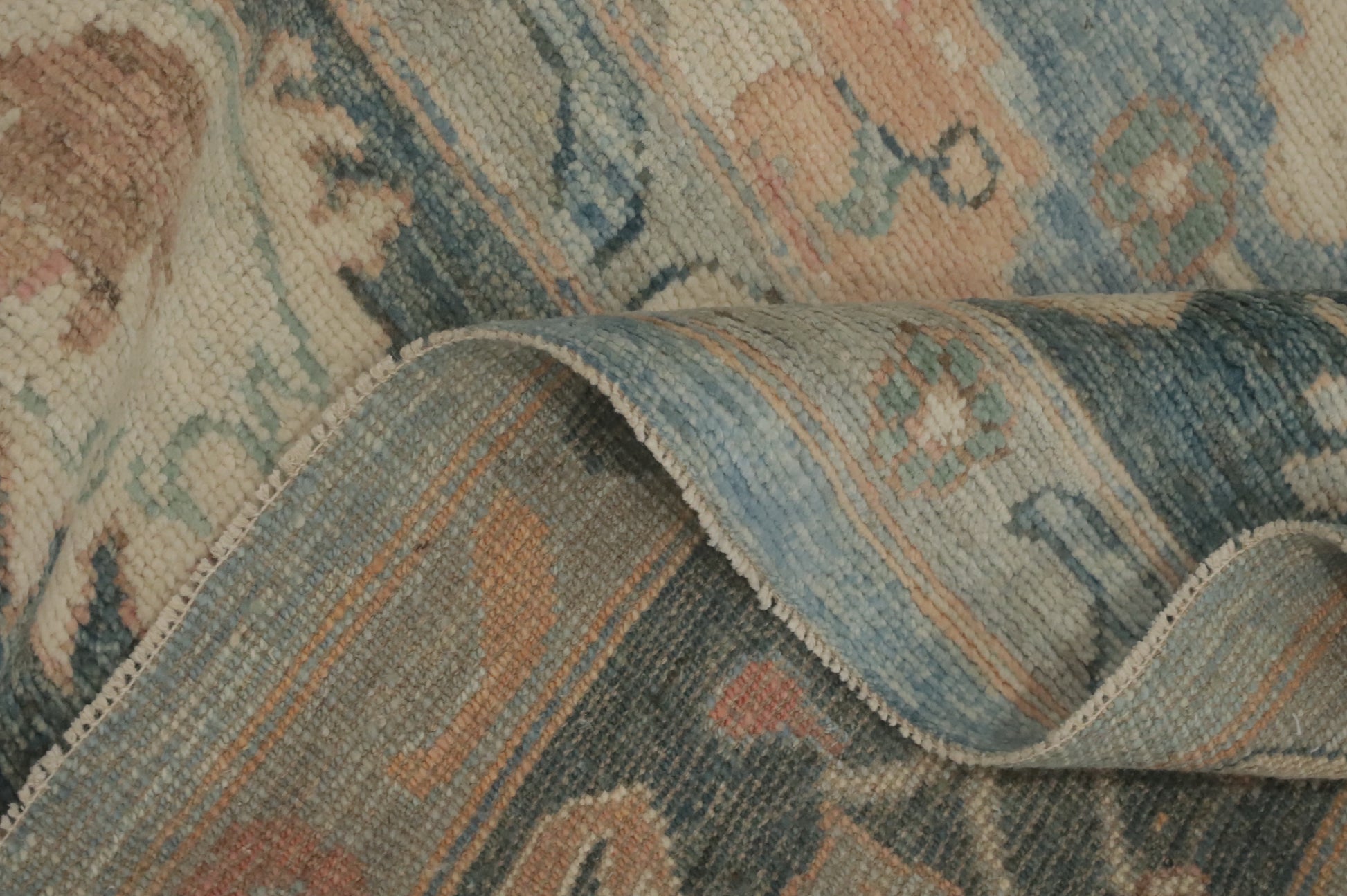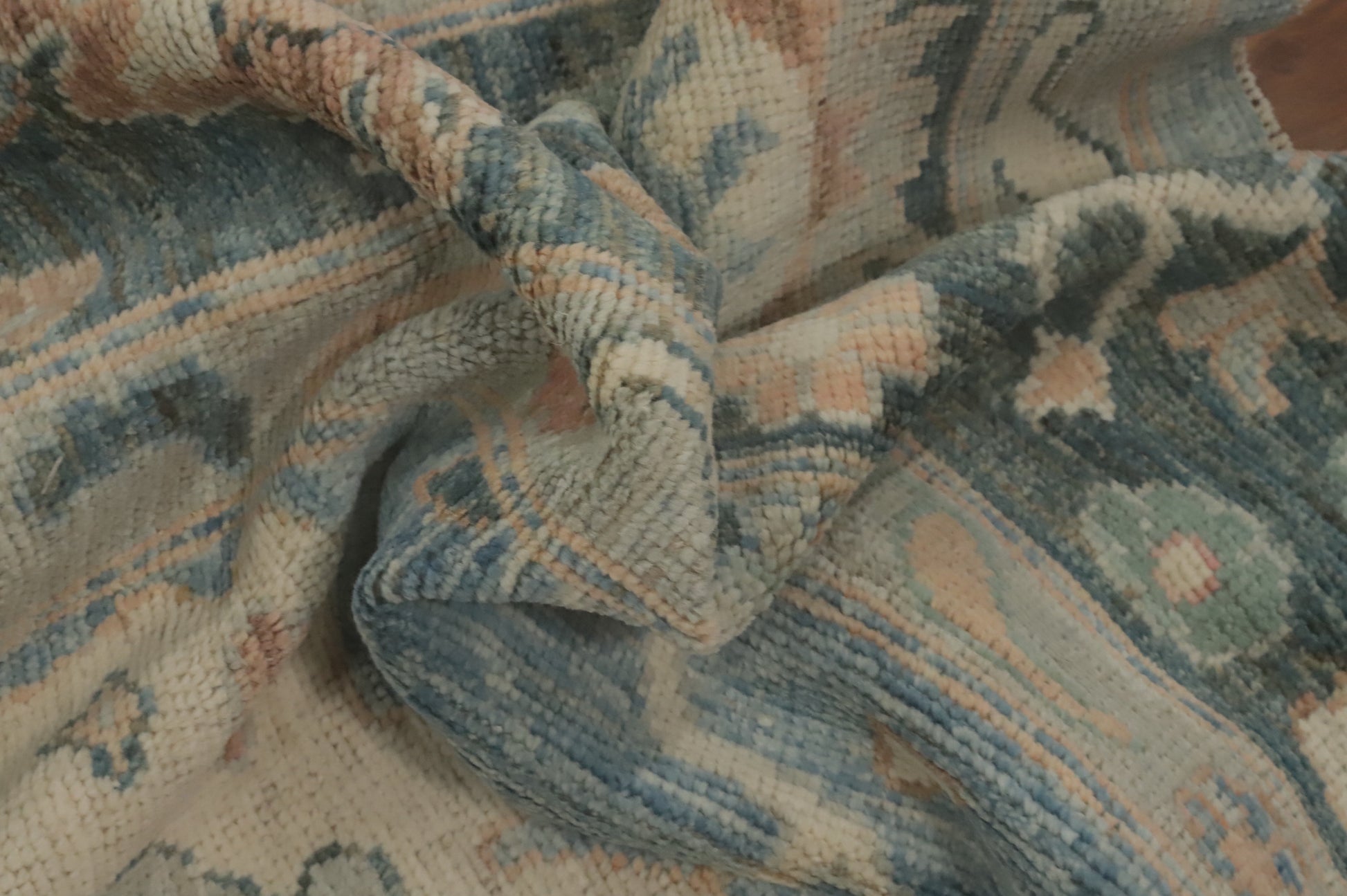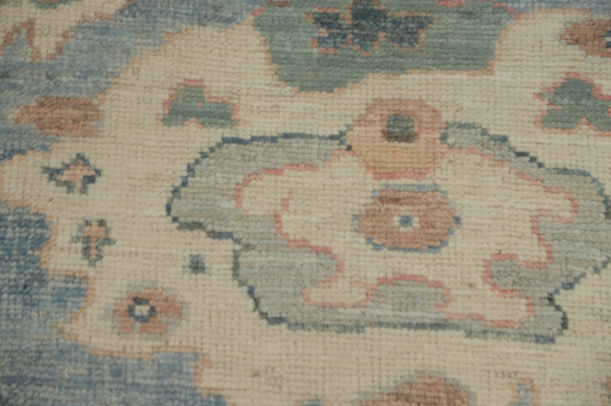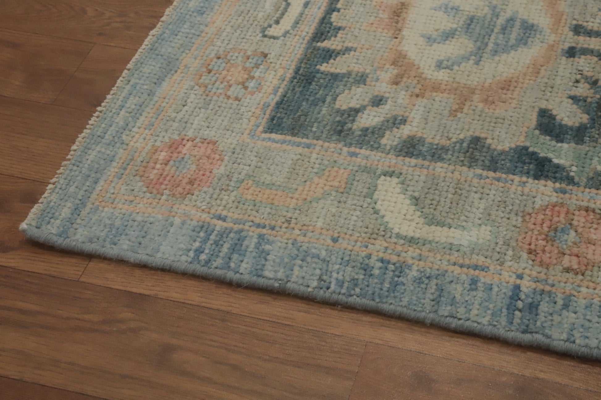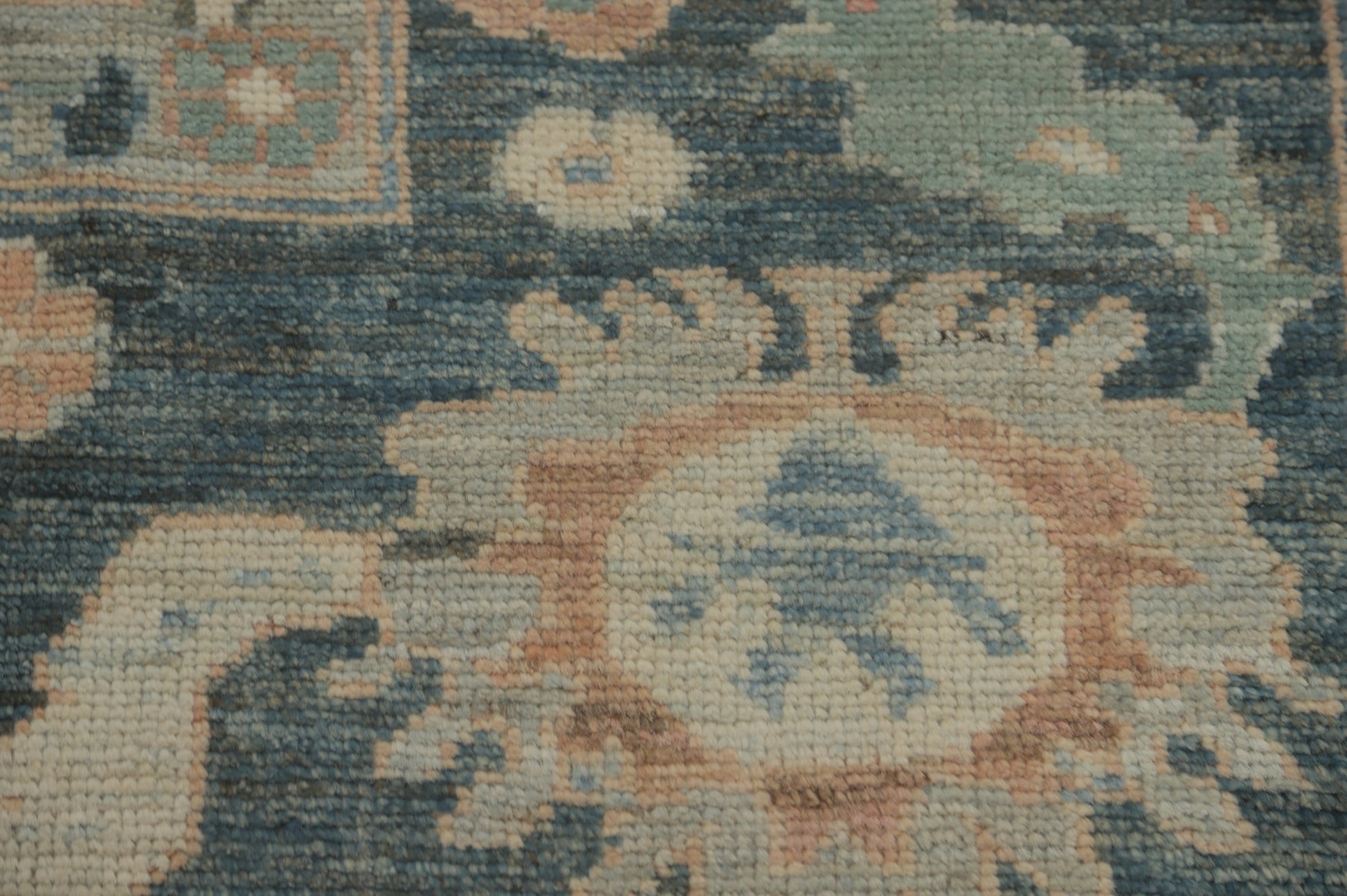 A Beautiful Genuine Turkey Oushak rug is Hand Knotted by skillful weavers in Turkey with 100% Wool Material. This rug is in New, First Quality condition. dimensions are 9' 8'' X 8' 1'' in foot and 295 X 246 in centimeter. the primary color is Navy Blue & Blues.