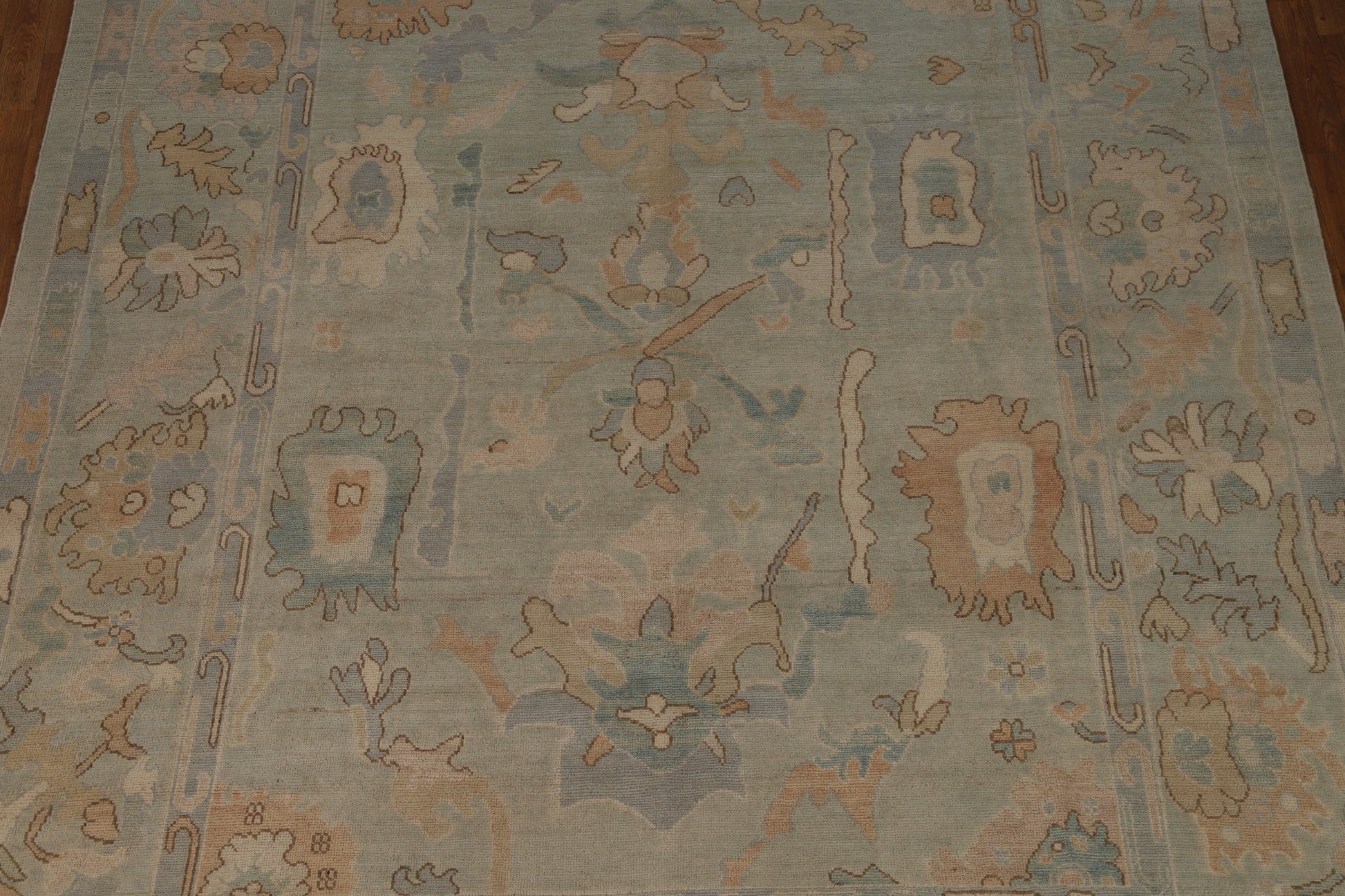 A Beautiful Genuine Turkey Oushak rug is Hand Knotted by skillful weavers in Turkey with 100% Wool Material. This rug is in New, First Quality condition. dimensions are 9' 11'' X 7' 10'' in foot and 302 X 239 in centimeter. the primary color is Navy Blue & Blues.