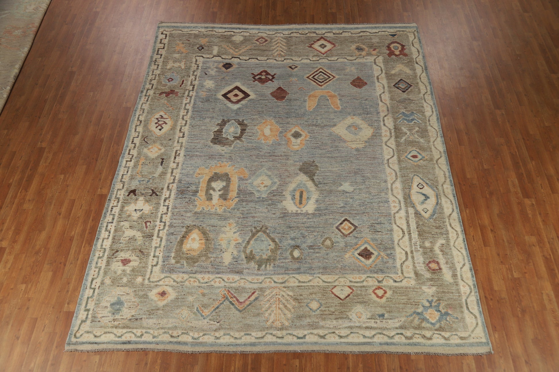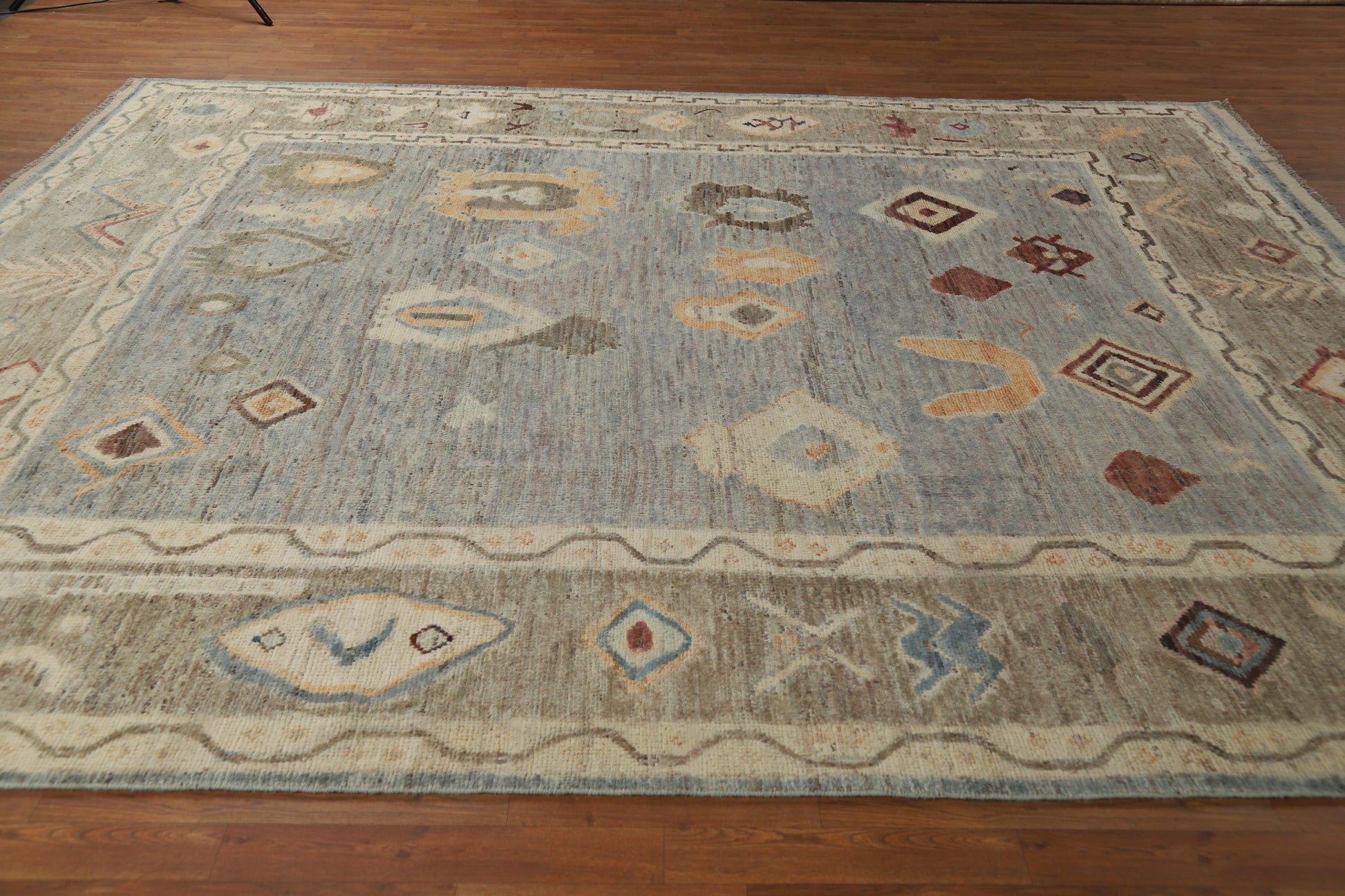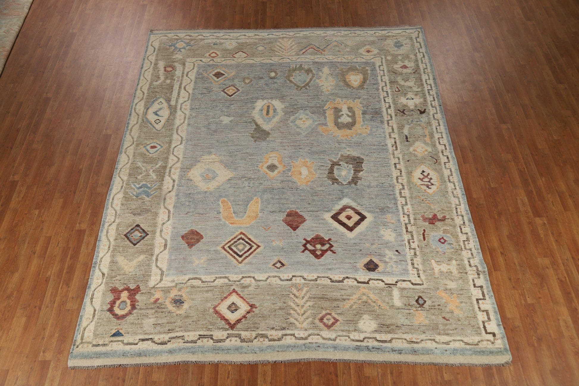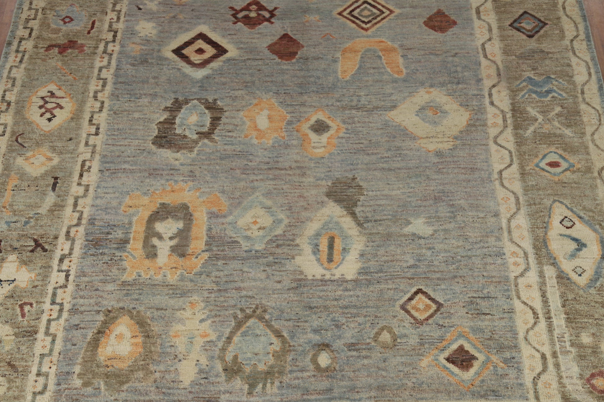 Vegetable Dye Blue Oushak Turkish Area Rug 9x11