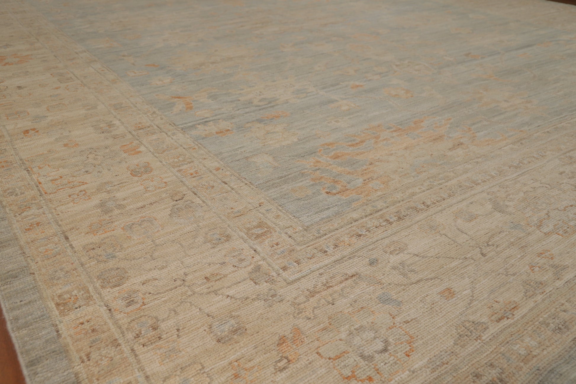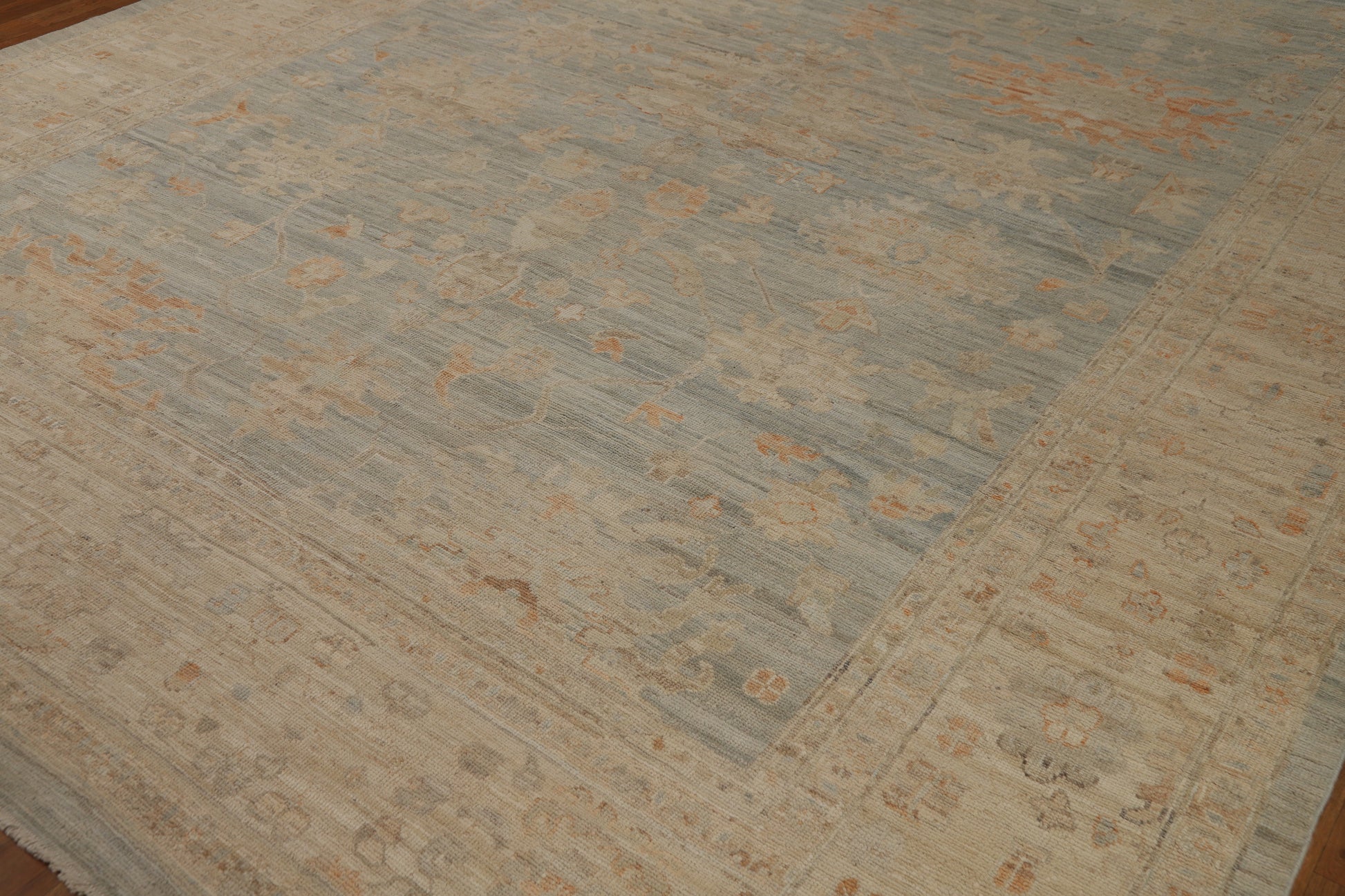 Vegetable Dye Blue Oushak Turkish Area Rug 9x12