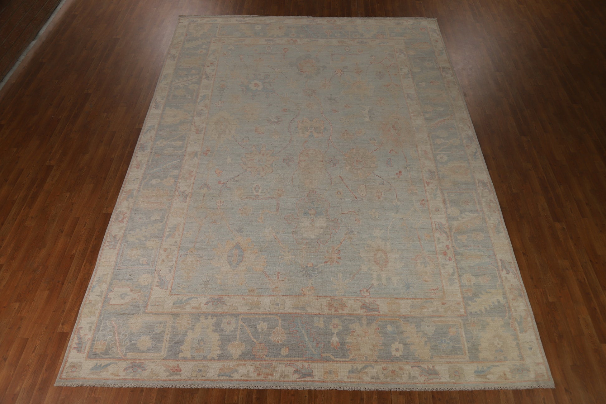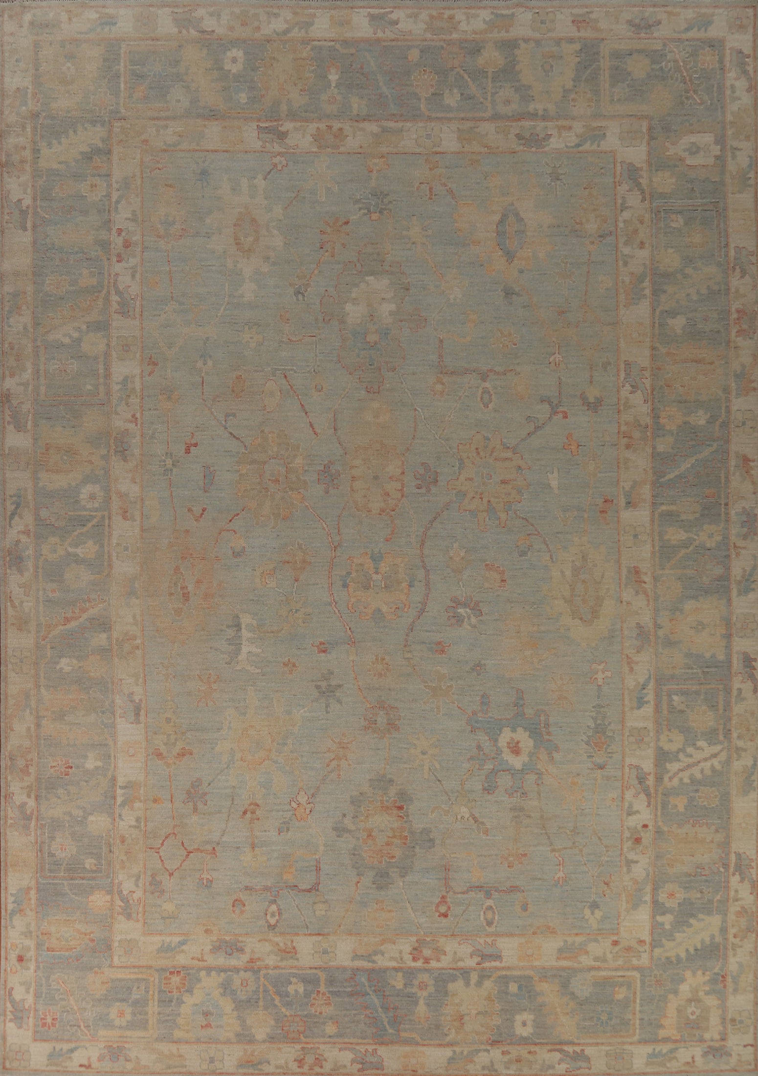 Vegetable Dye Blue Oushak Turkish Large Rug 10x14