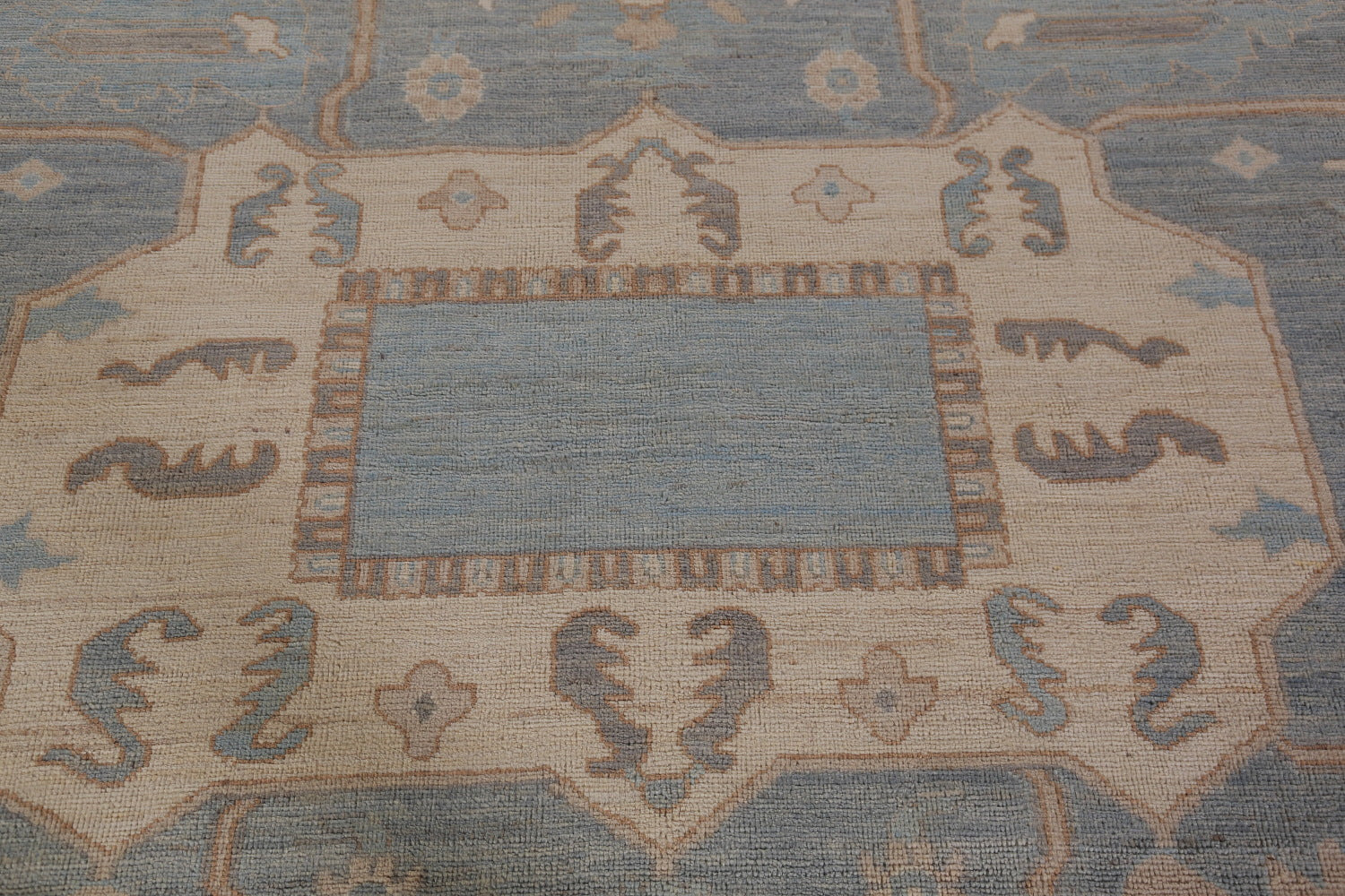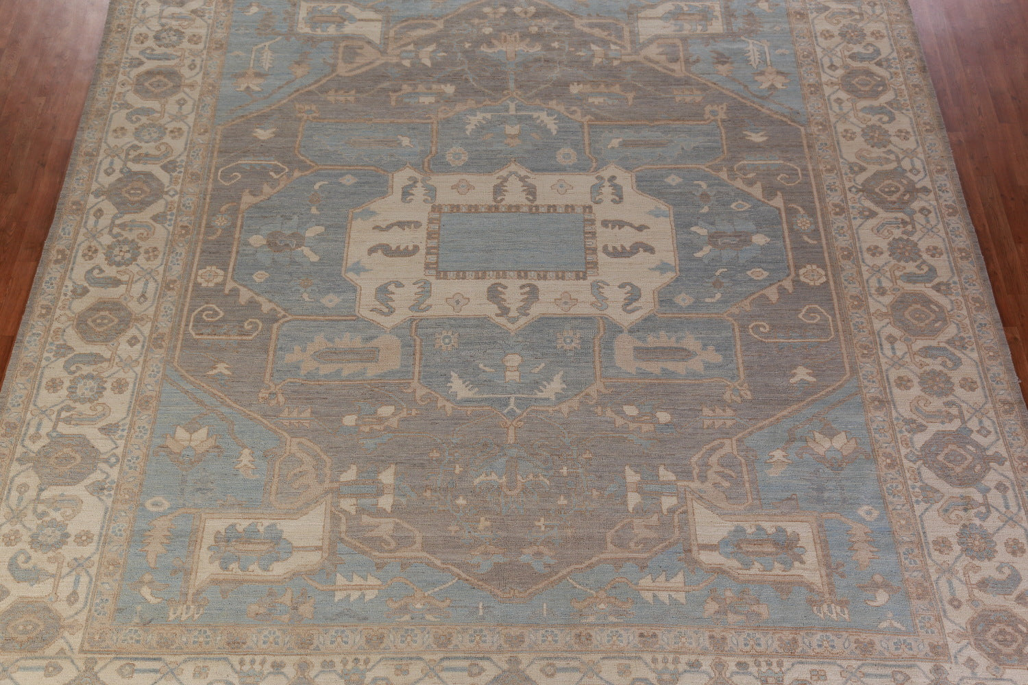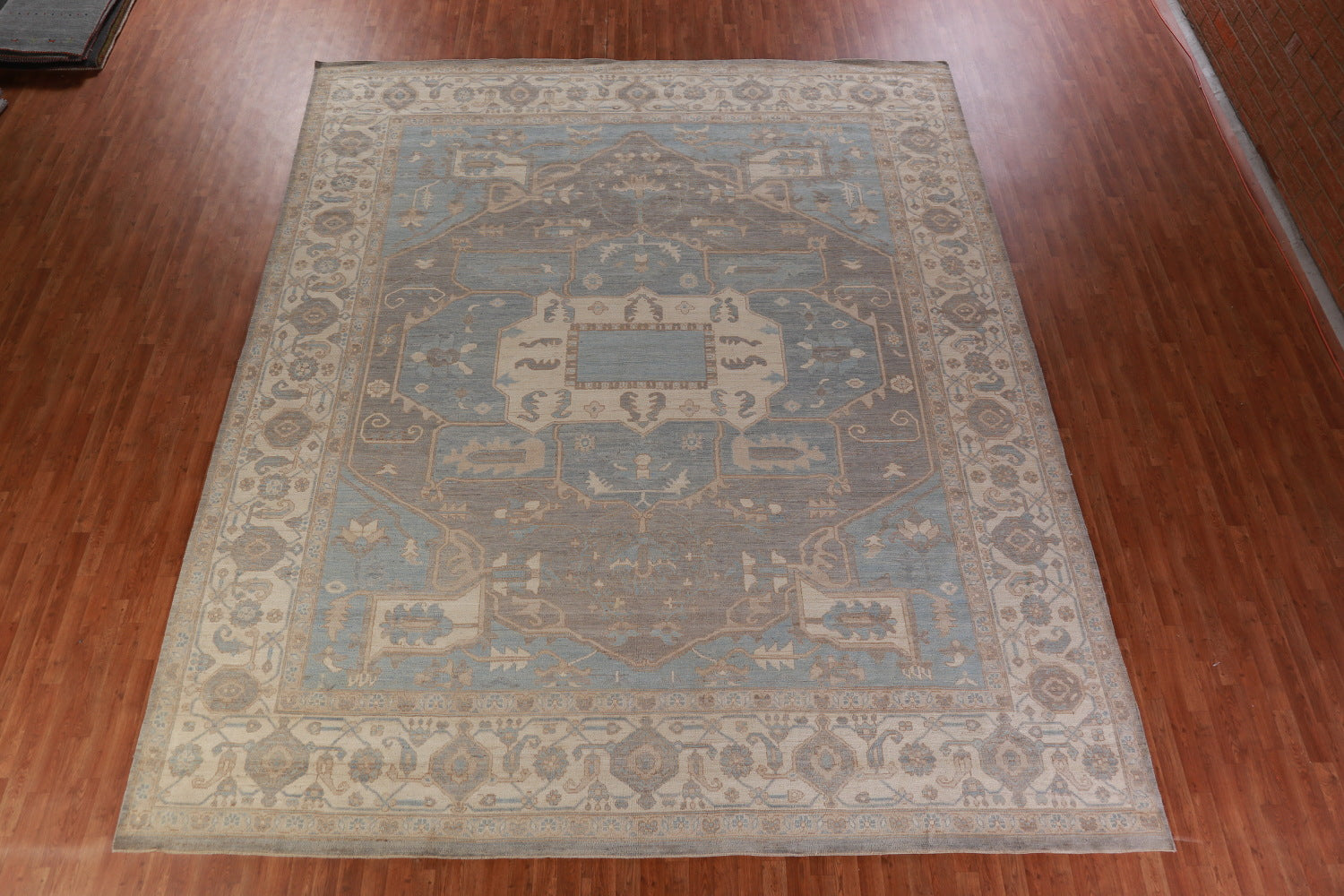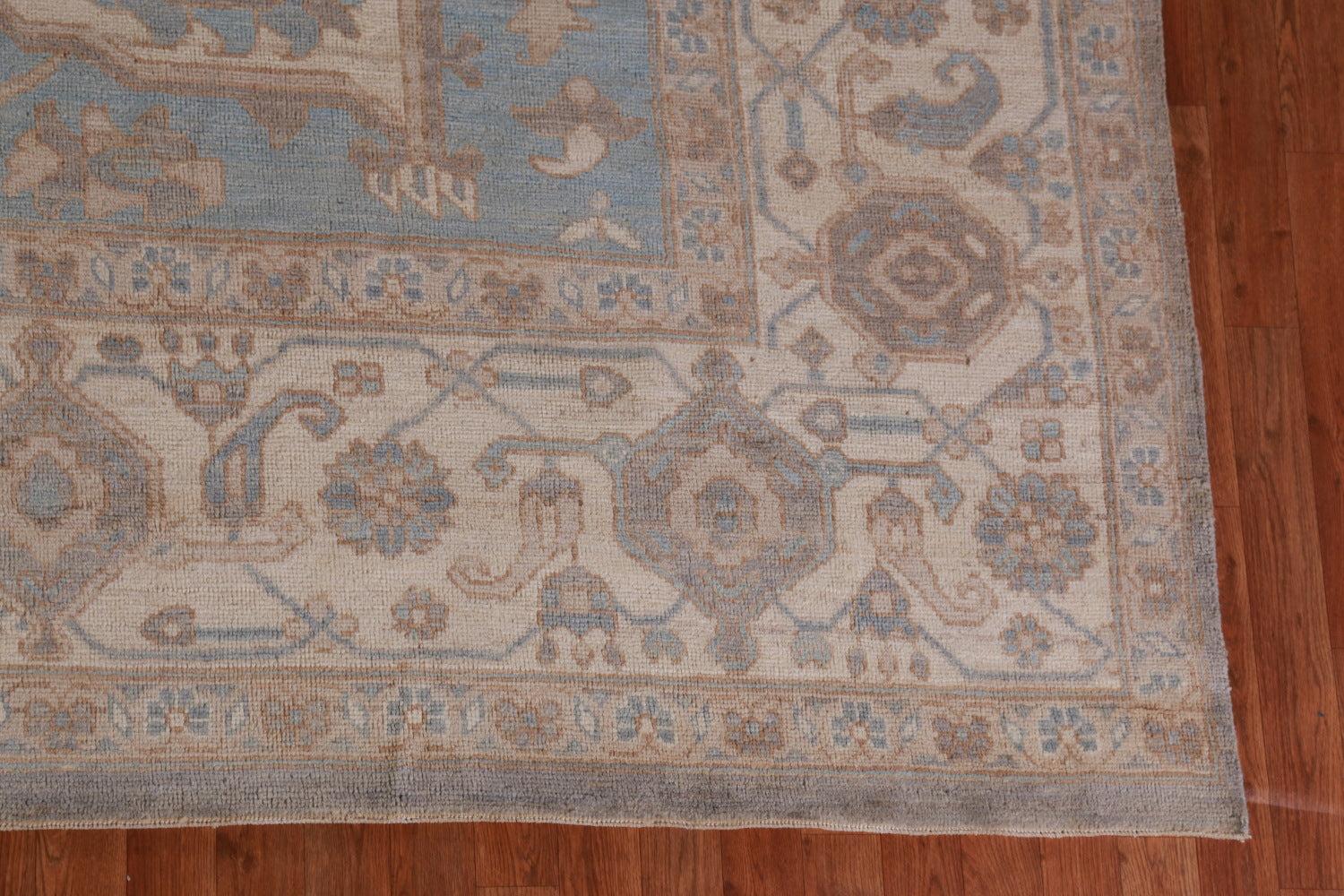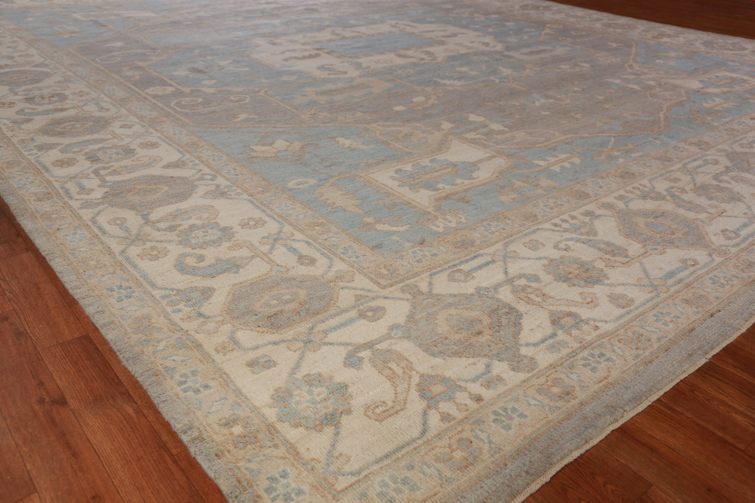 Vegetable Dye Blue Oushak Turkish Large Rug 12x14