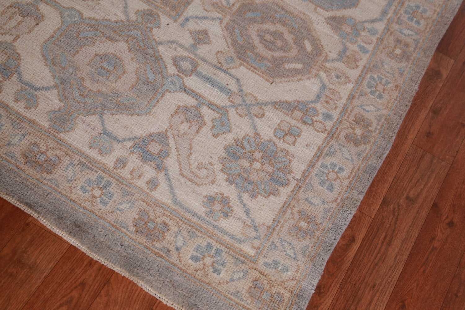 A Beautiful Genuine Turkey Oushak rug is Hand Knotted by skillful weavers in Turkey with 100% Wool Material. This rug is in New, First Quality condition. dimensions are 14' 5'' X 12' 3'' in foot and 439 X 373 in centimeter. the primary color is Navy Blue & Blues.