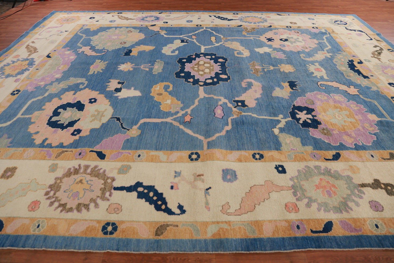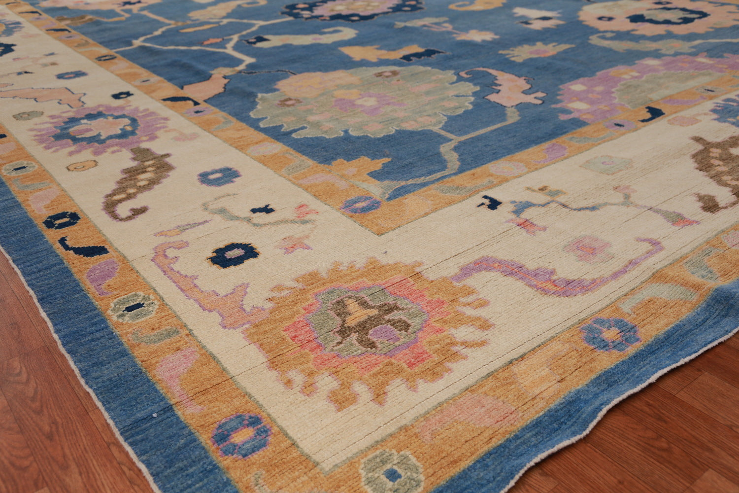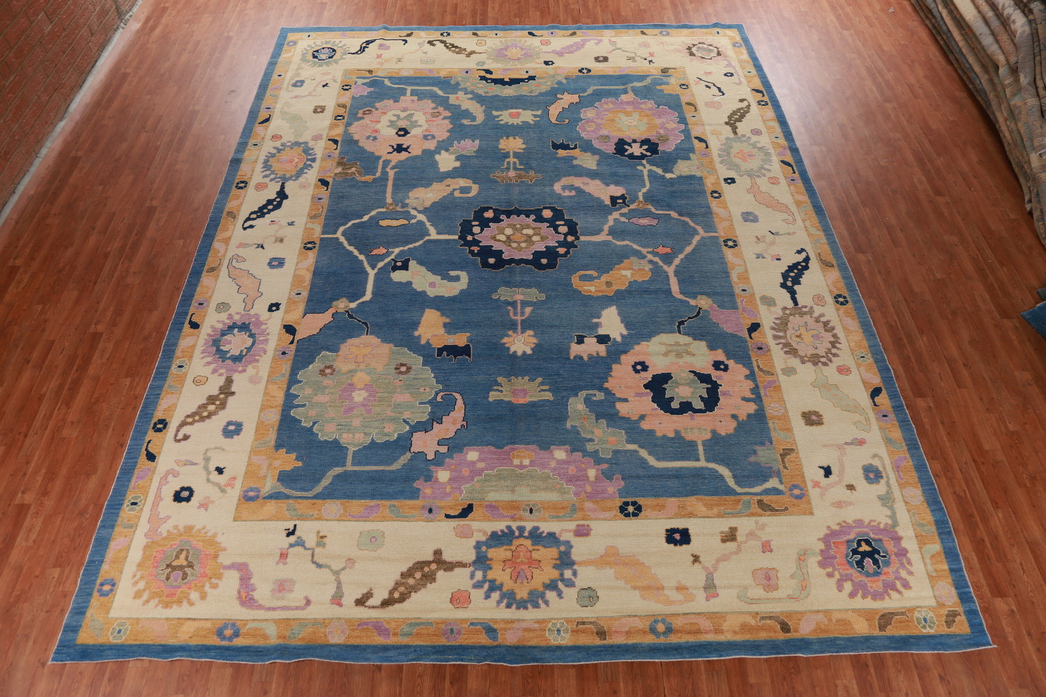 Vegetable Dye Blue Oushak Turkish Large Rug 12x16