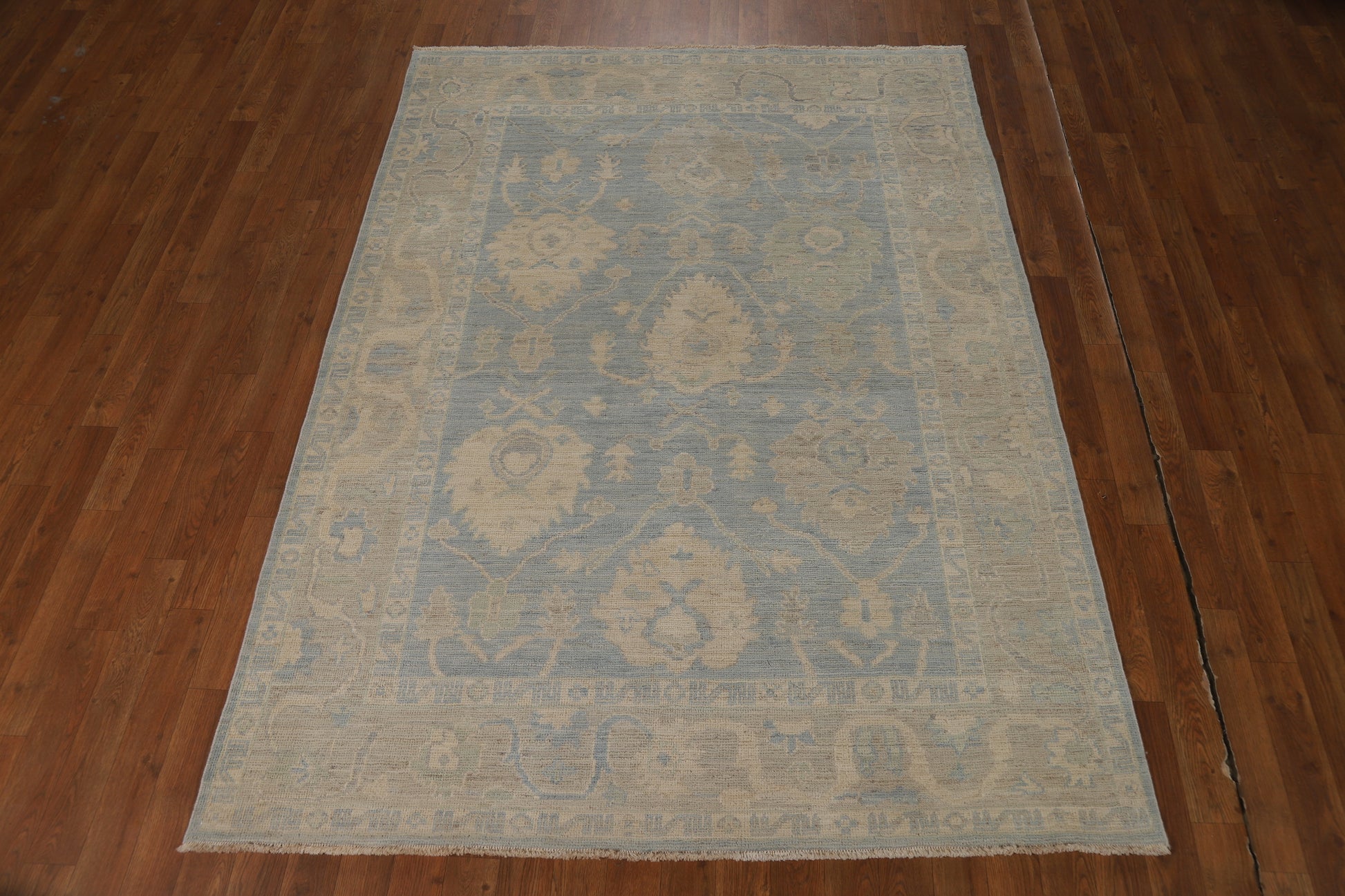 Vegetable Dye Blue Oushak Turkish Rug 5x7