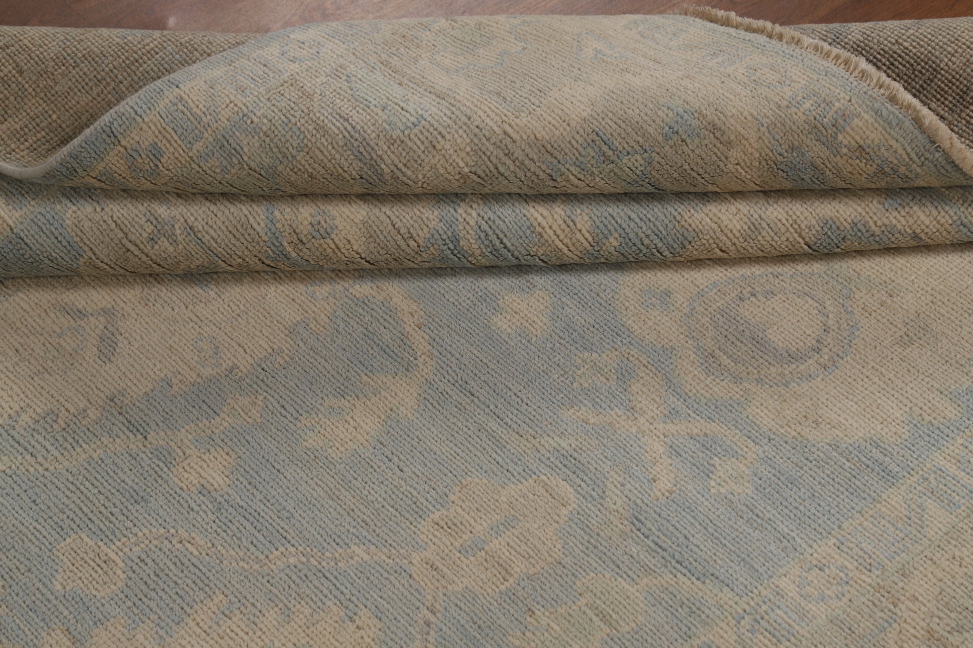A Beautiful Genuine Turkey Oushak rug is Hand Knotted by skillful weavers in Turkey with 100% Wool Material. This rug is in New, First Quality condition. dimensions are 7' 0'' X 5' 0'' in foot and 213 X 152 in centimeter. the primary color is Navy Blue & Blues.